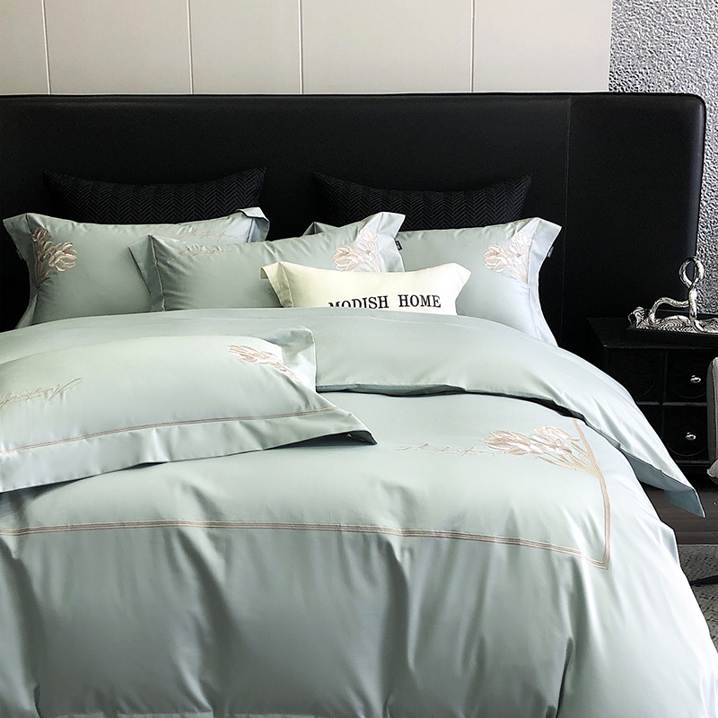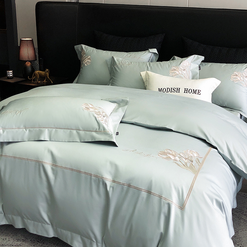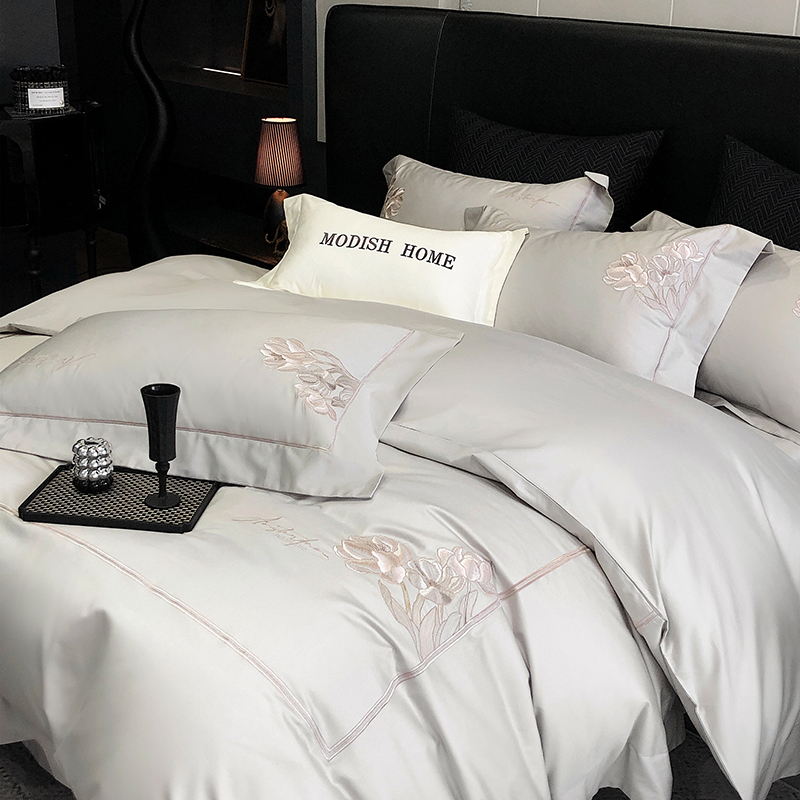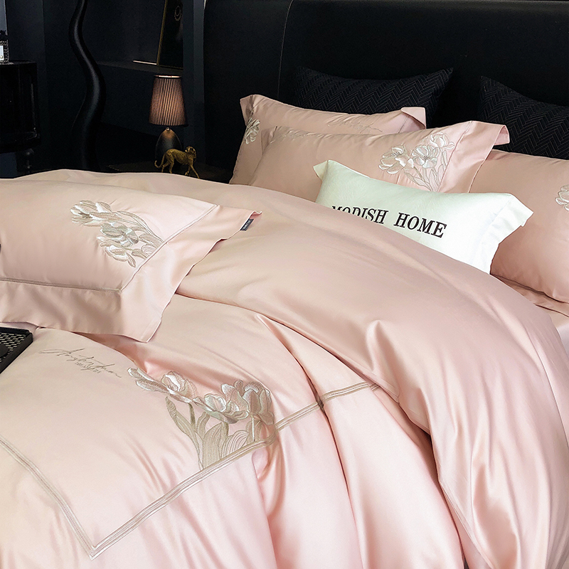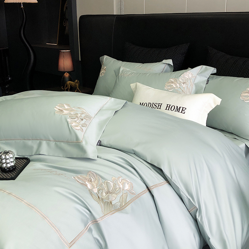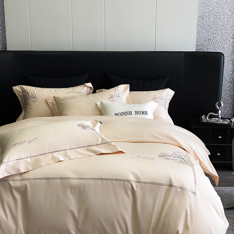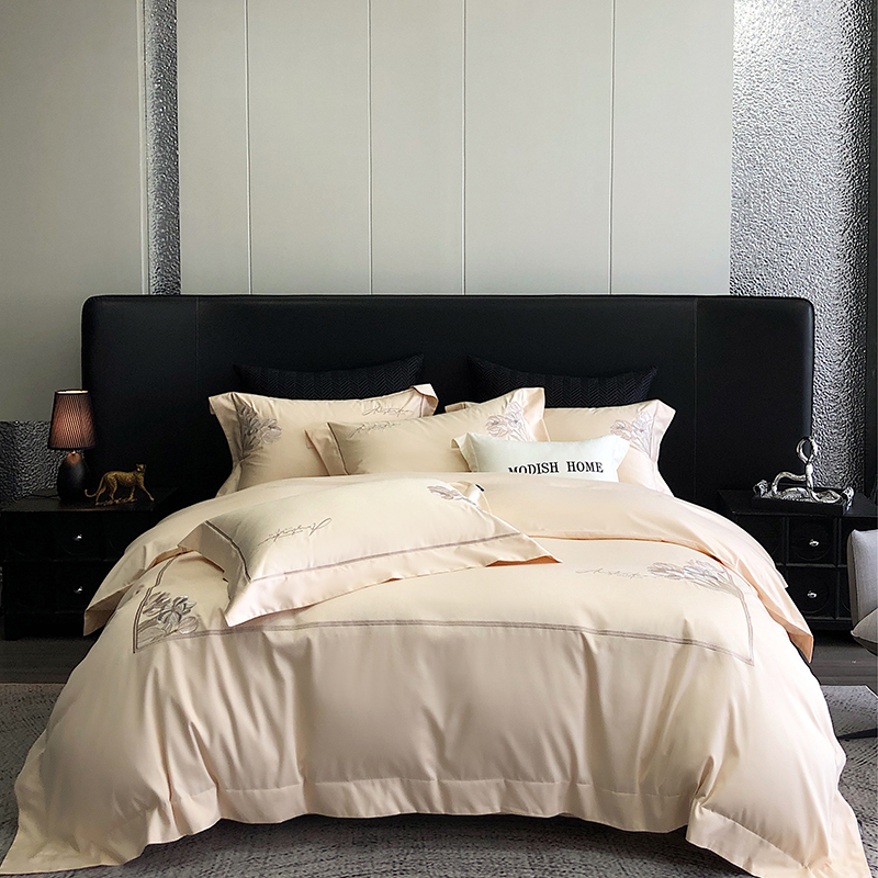(总)玖玖爱家纺 2023新款120支贡缎长绒棉刺绣梦柔系列四件套,梦柔-香槟金,梦柔-香橙桔,梦柔-高级灰,梦柔-水蓝,梦柔-芙蓉玉