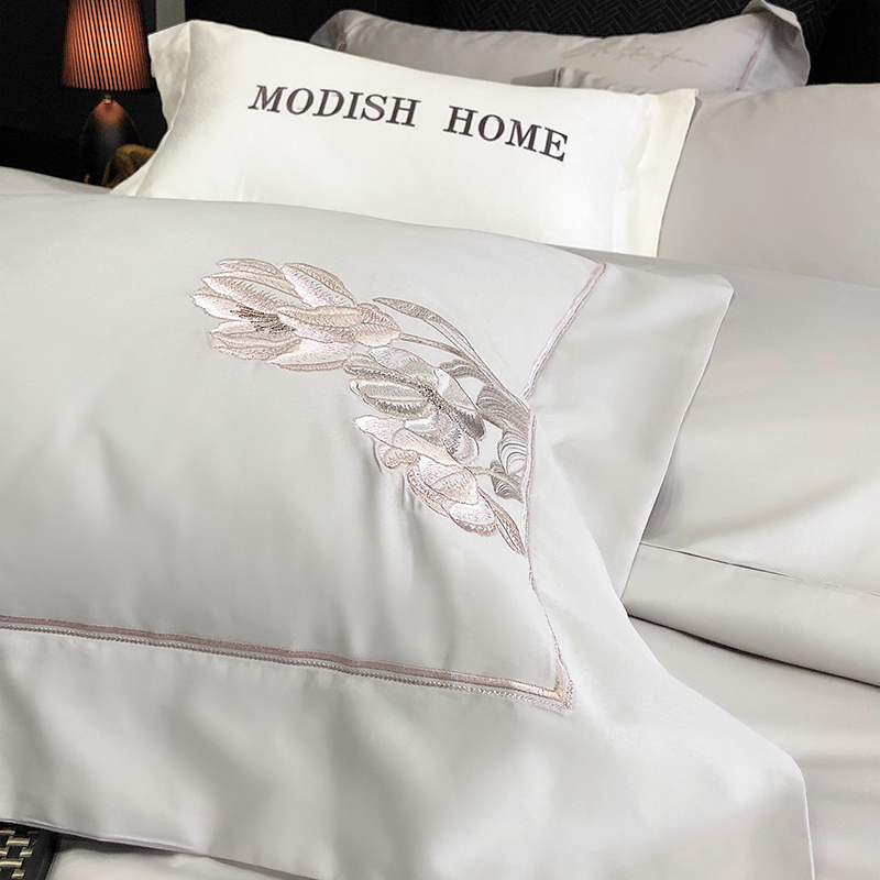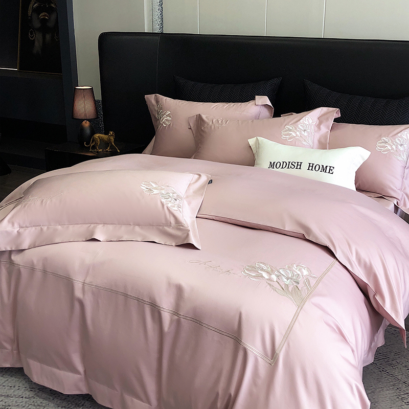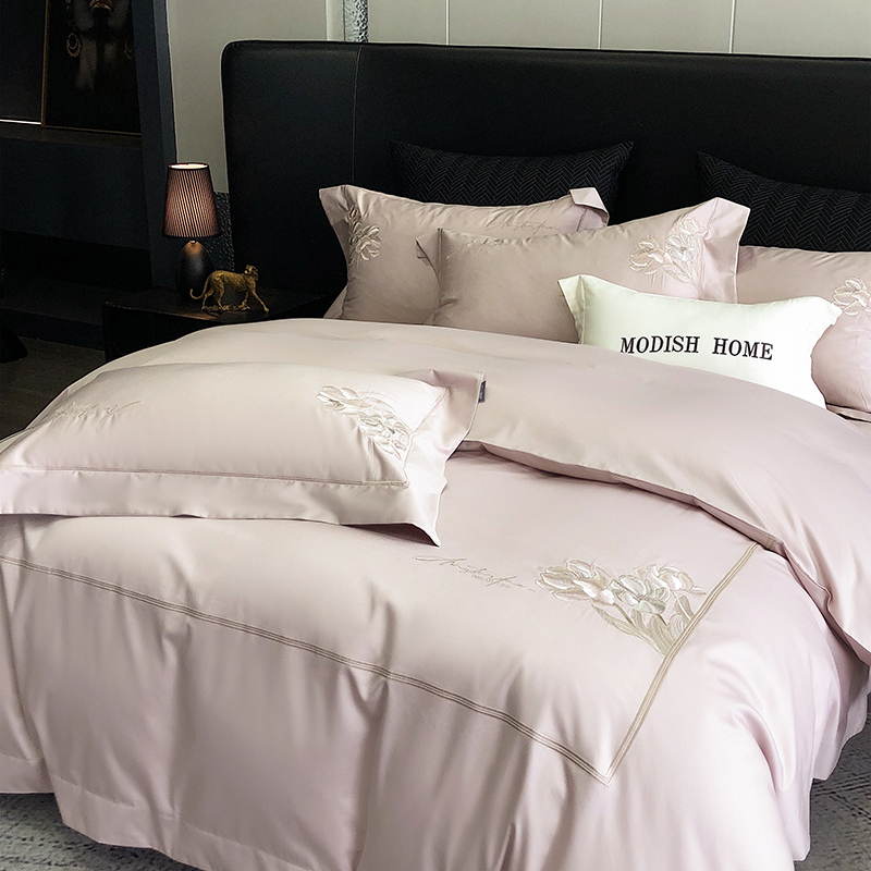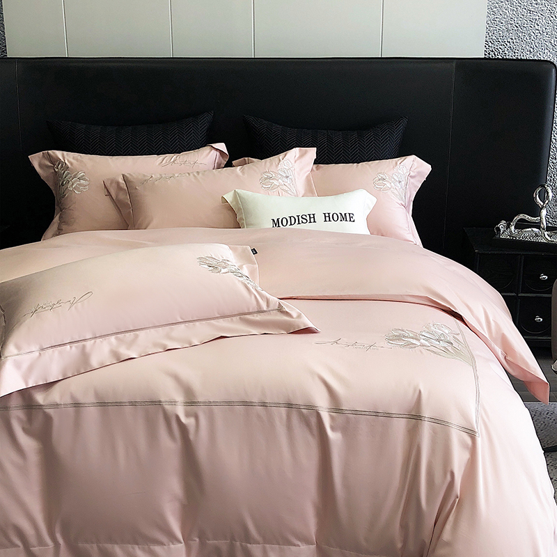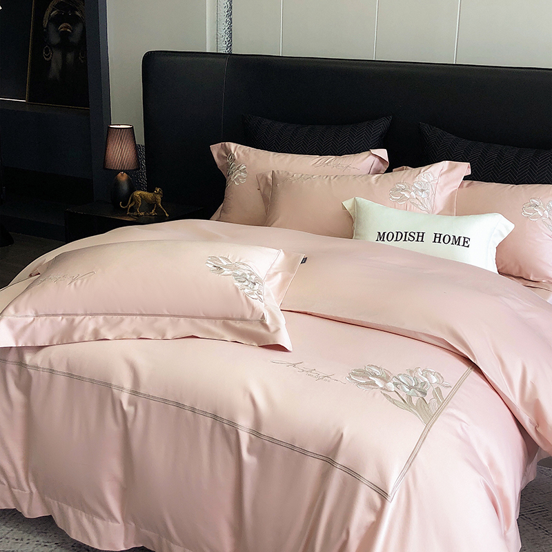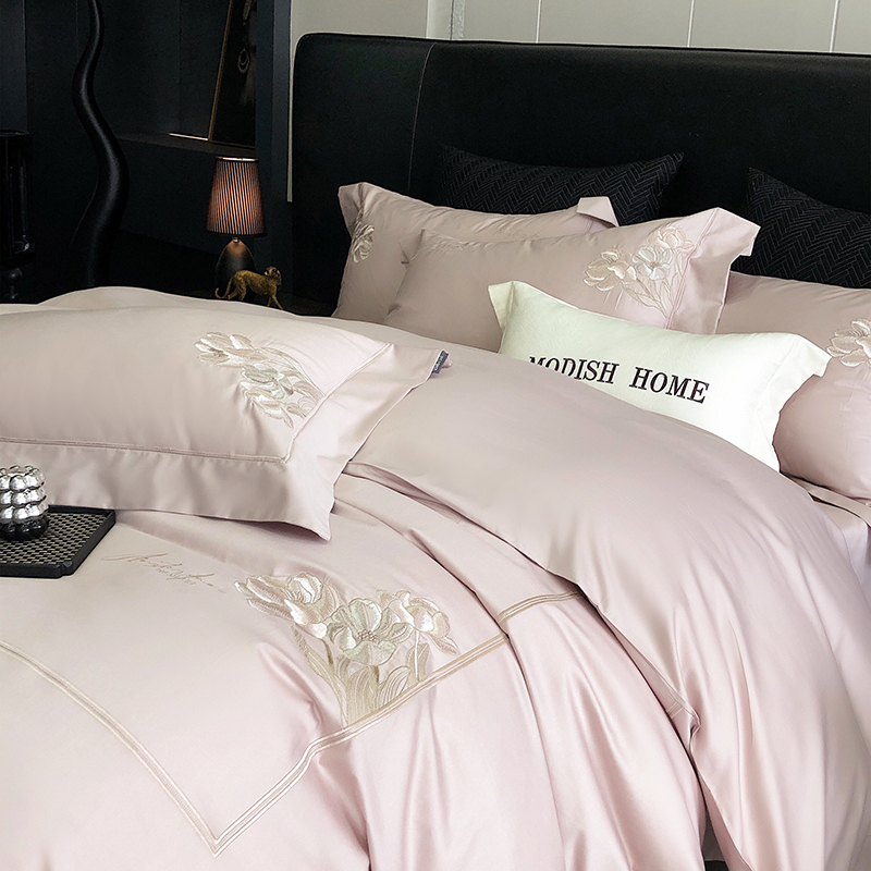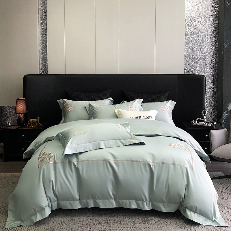 (总)玖玖爱家纺 2023新款120支贡缎长绒棉刺绣梦柔系列四件套,梦柔-香槟金,梦柔-香橙桔,梦柔-高级灰,梦柔-水蓝,梦柔-芙蓉玉