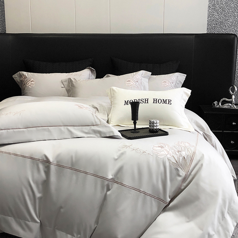 总玖玖爱家纺 纯棉100支贡缎长绒棉刺绣被套三件套四件套加大四件套,白色,高级灰,卡其,蓝灰,绿色,浅桔,深蓝,紫豆沙