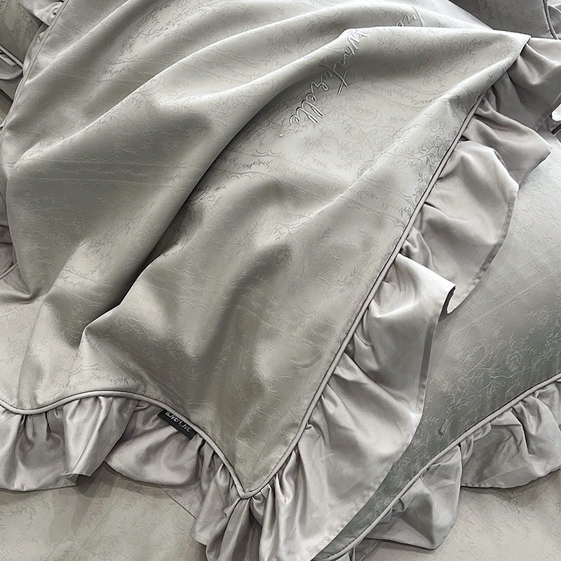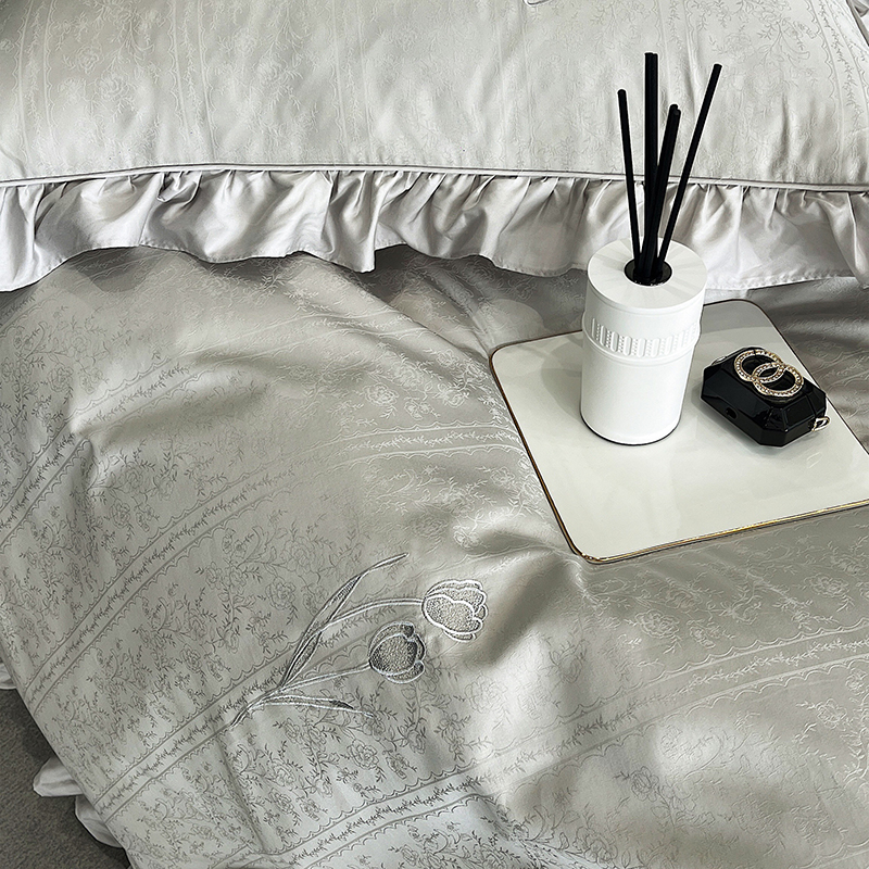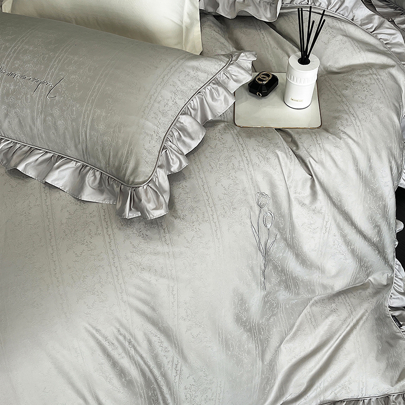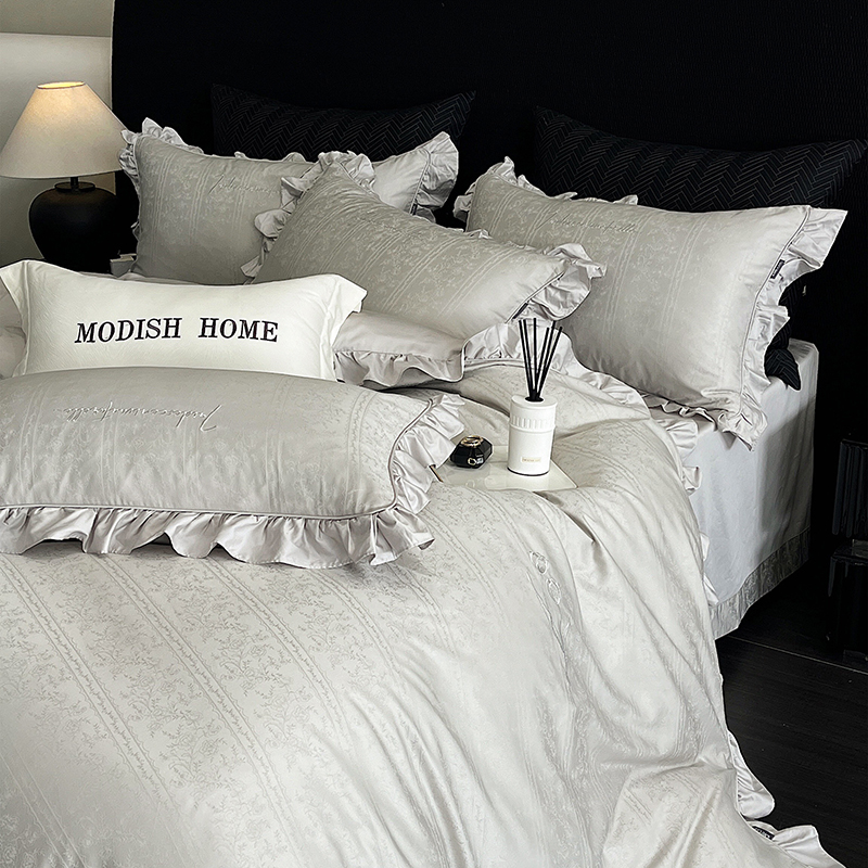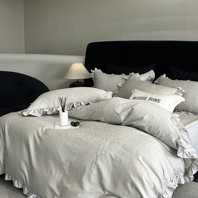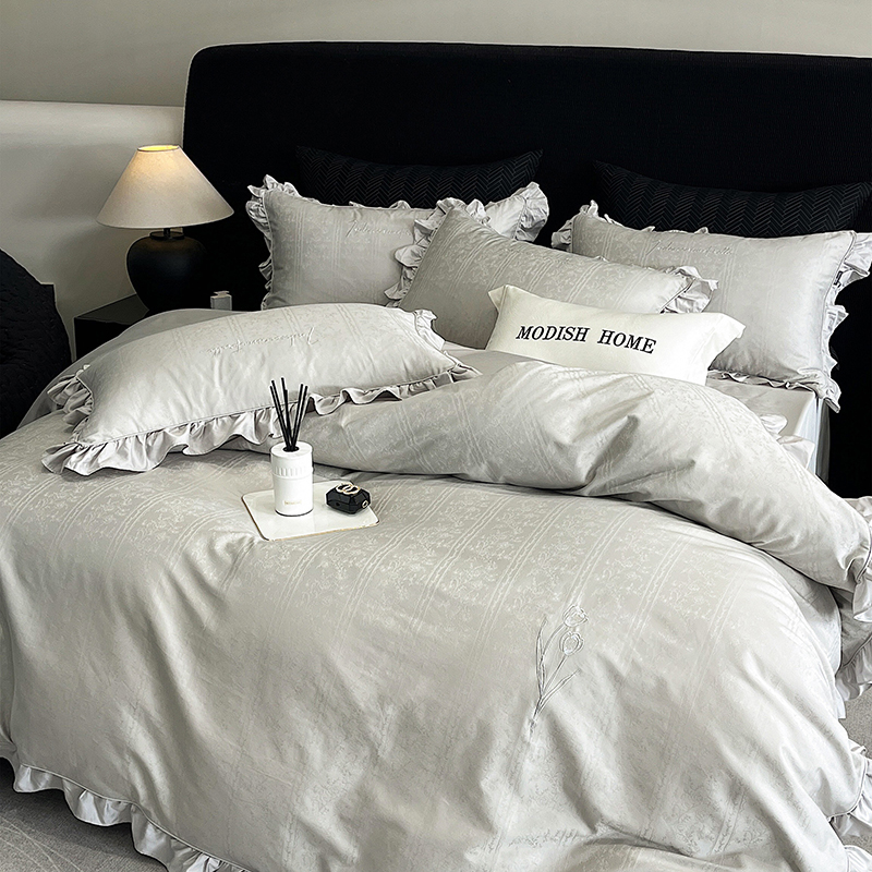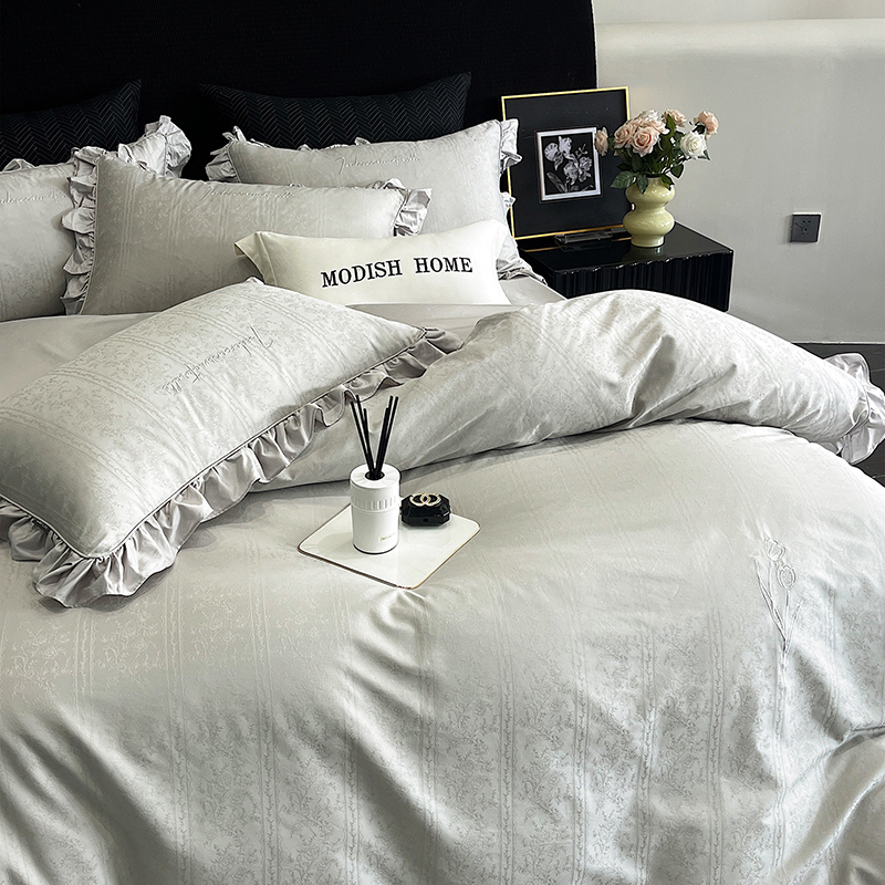 商品名称:玖玖爱家纺 2024新款长绒棉贡缎全棉法式提花四件套-摩纳哥 摩纳哥-灰