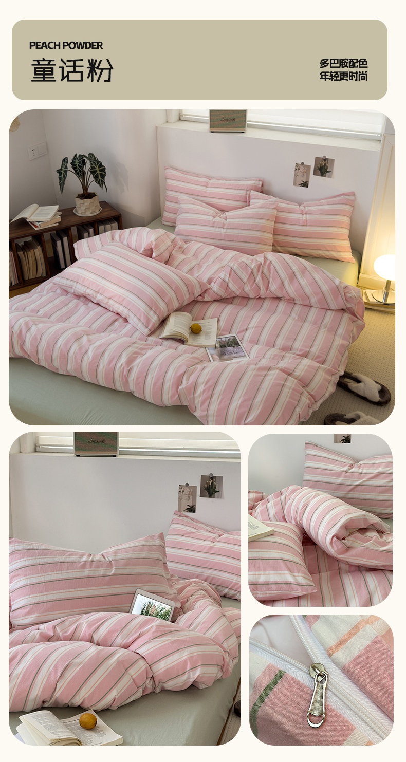 当前位置: 91家纺网 > 商品网购 > 床品套件 > 四件套 > 水洗棉四件套 > 久典家居 2024新款水洗棉条纹系列四件套 童话粉