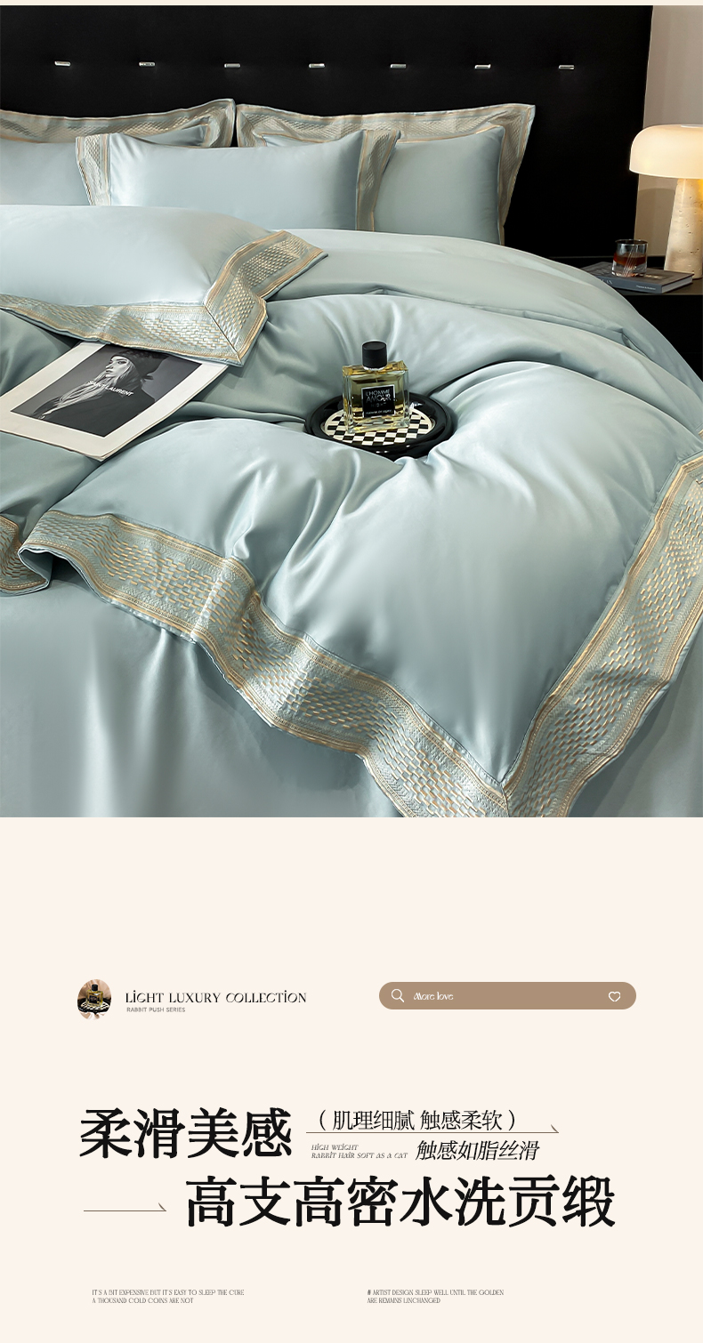 (总)欧乐蒂 2025新款高支高密水洗贡缎全棉四件套-简爱,简爱宾利兰,简爱典雅白,简爱豆沙,简爱梵星兰,简爱高级灰,简爱香槟金