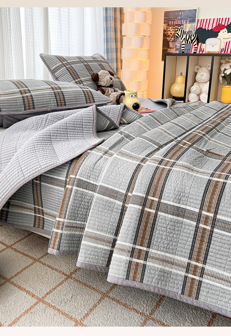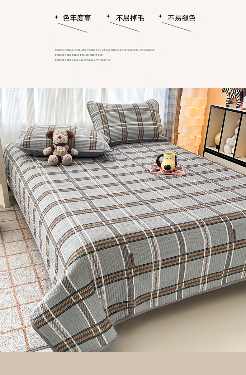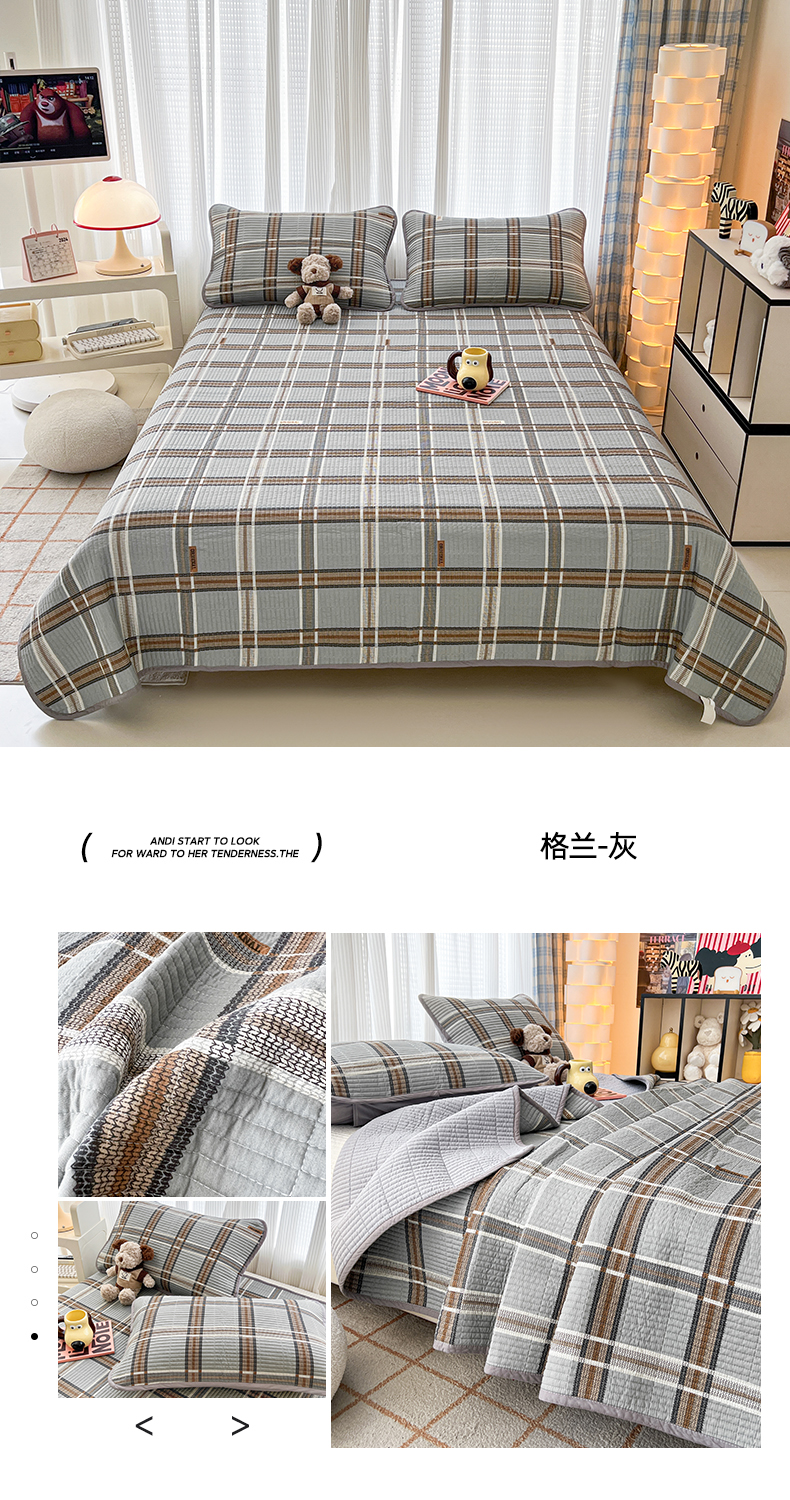 茉夕家纺 2024新款跑量款纯棉单面棉高温水洗床盖 格兰灰