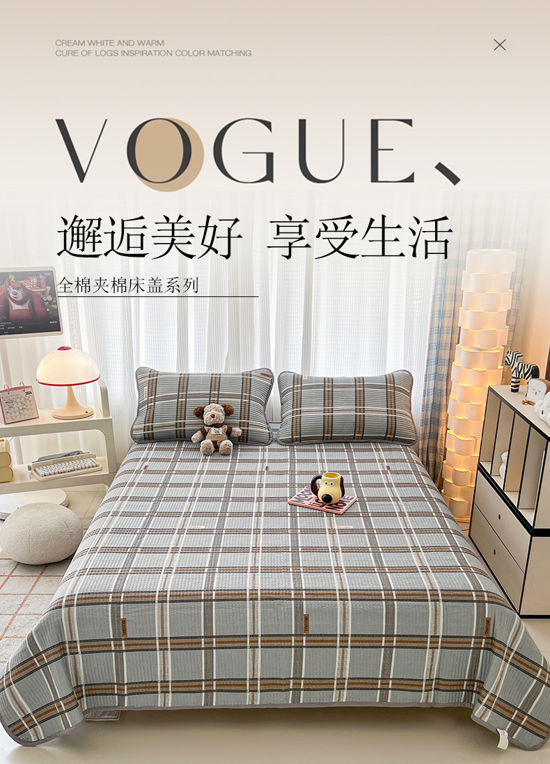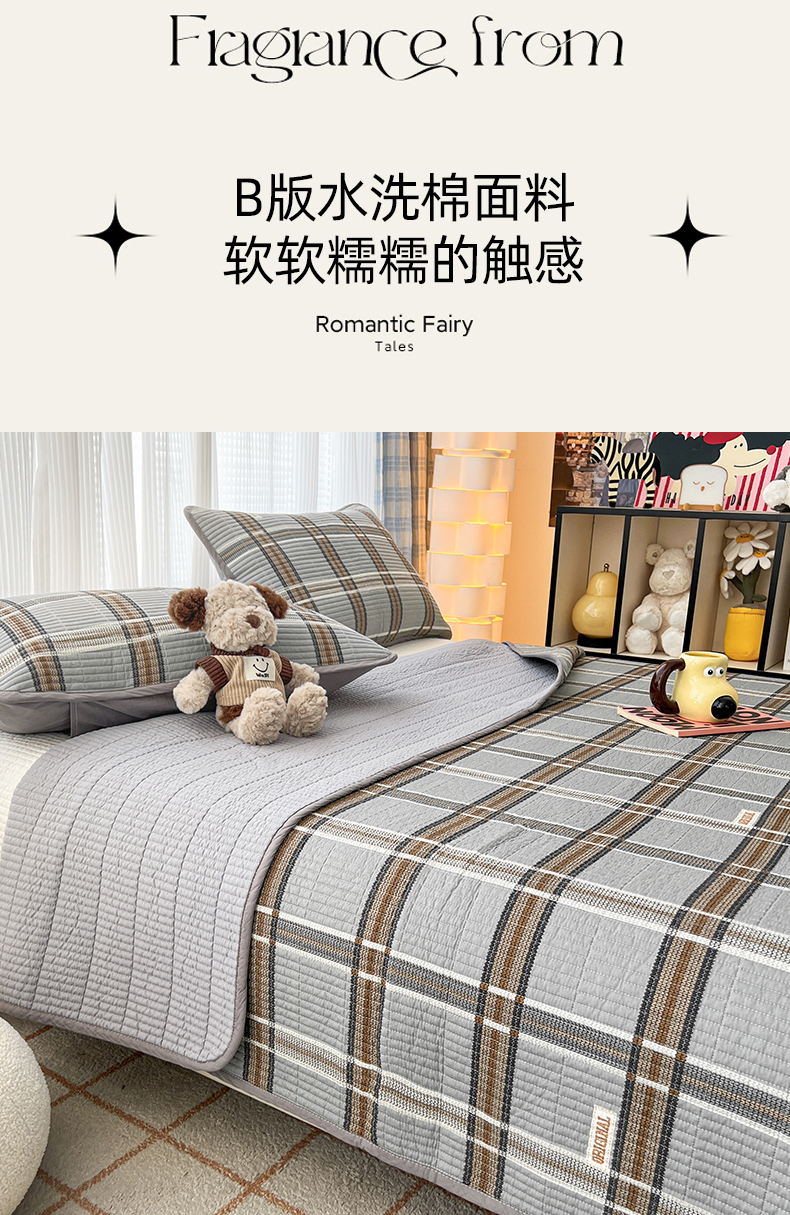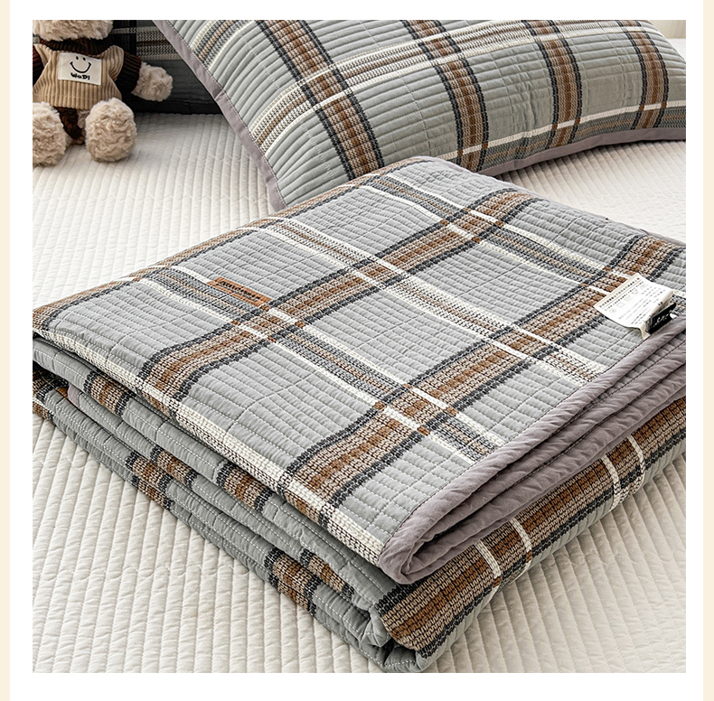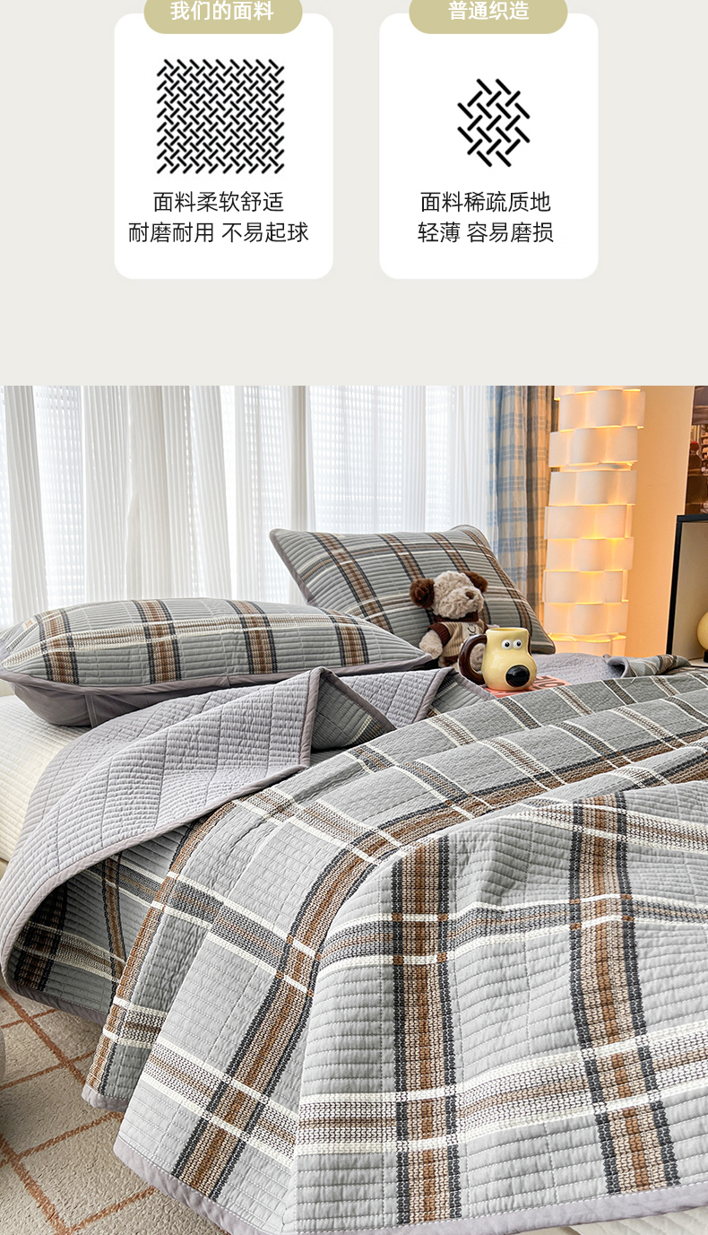茉夕家纺 2024新款跑量款纯棉单面棉高温水洗床盖 格兰灰