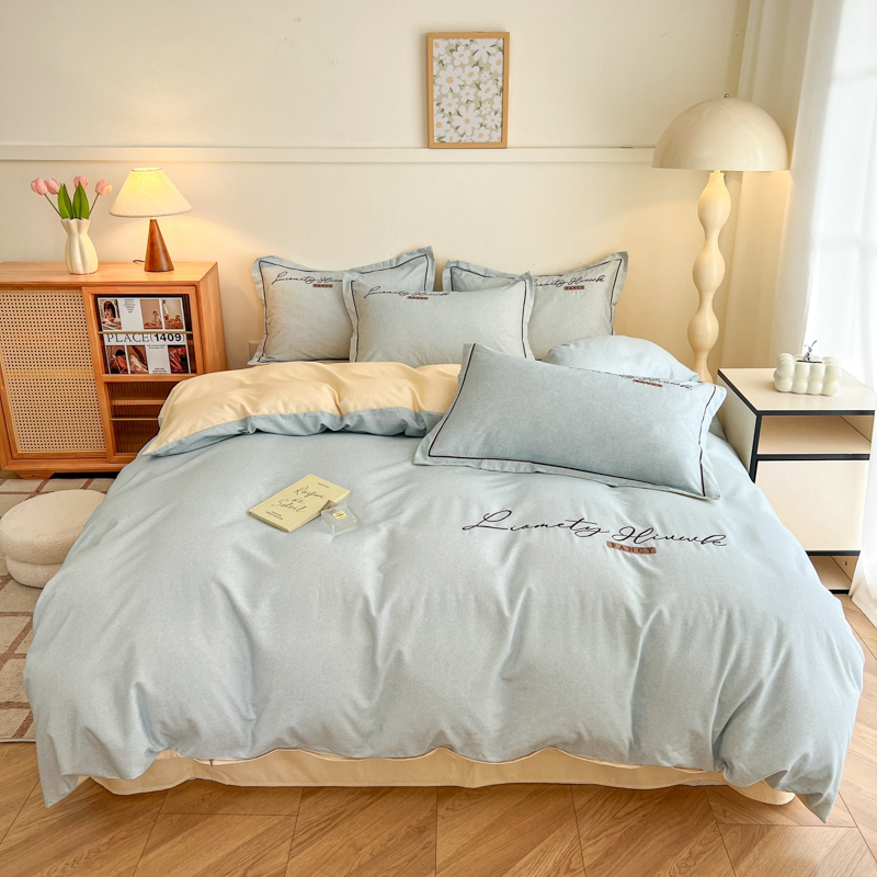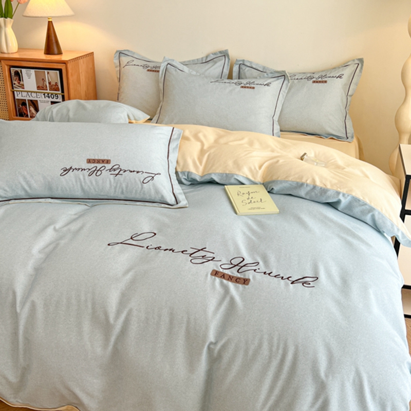当前位置: 91家纺网 > 商品网购 > 床品套件 > 四件套 > 全棉普通四件套 > 菲梵家纺 2025新款纯色双拼全棉加厚磨毛刺绣款四件套(自然光场景) 天空蓝+奶昔白