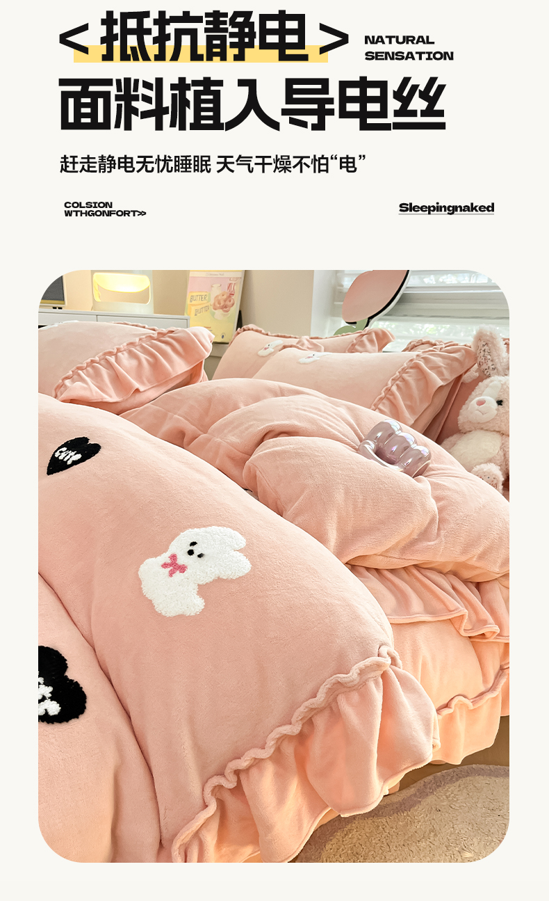 商品名称:(总)亨通家纺 2024新款直播爆款高克重法式牛奶绒四件套系列-可爱风