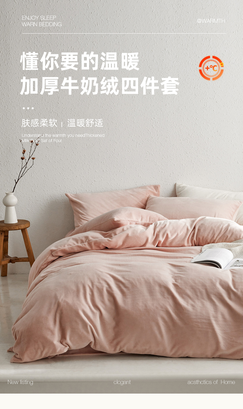 商品名称:千朵森 2024新款高克重纯色牛奶绒四件套 藕荷粉