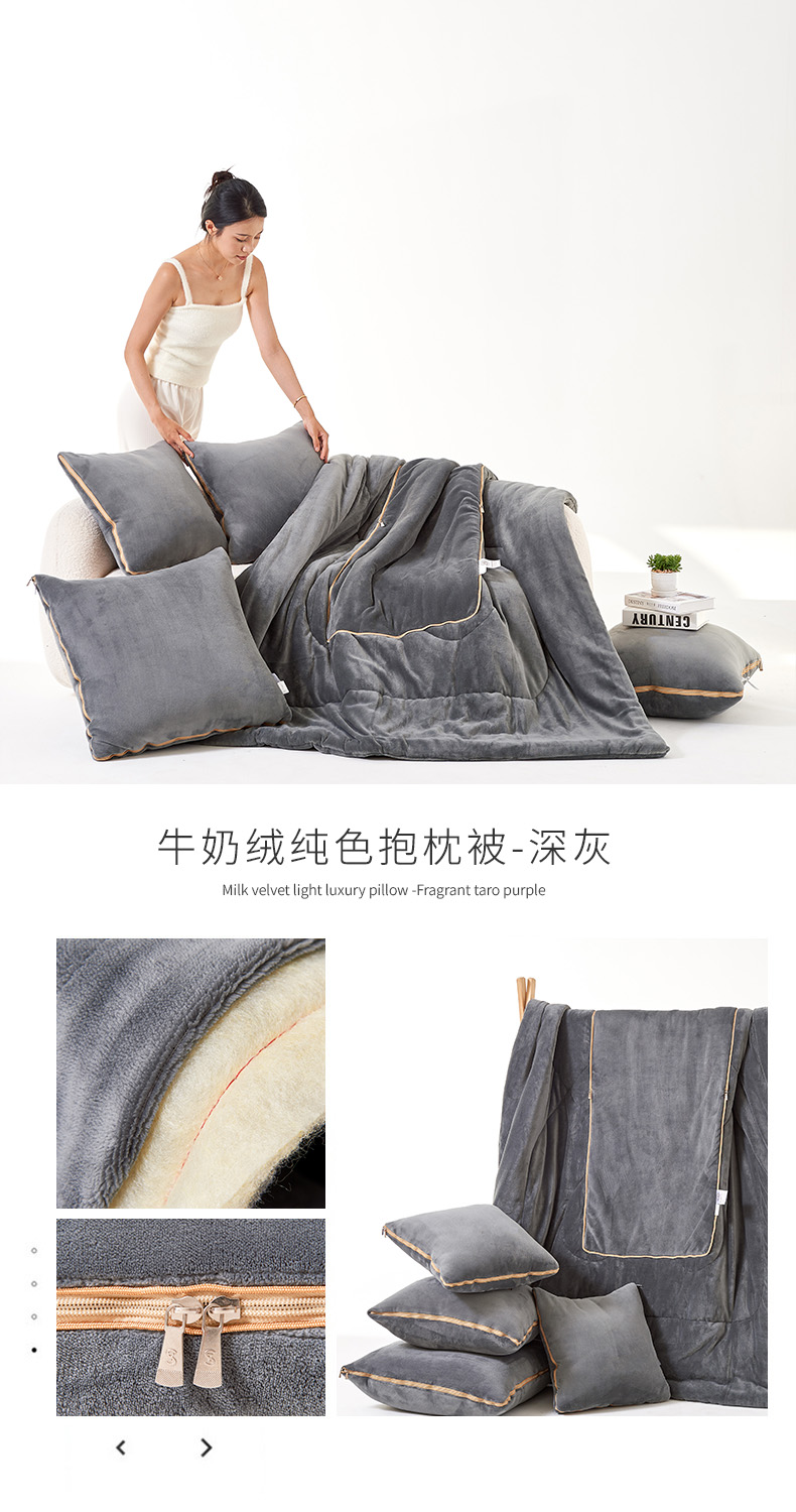 商品名称:照世家纺 2024新款牛奶绒纯色抱枕被(控价68/89/129/169/219) 深灰