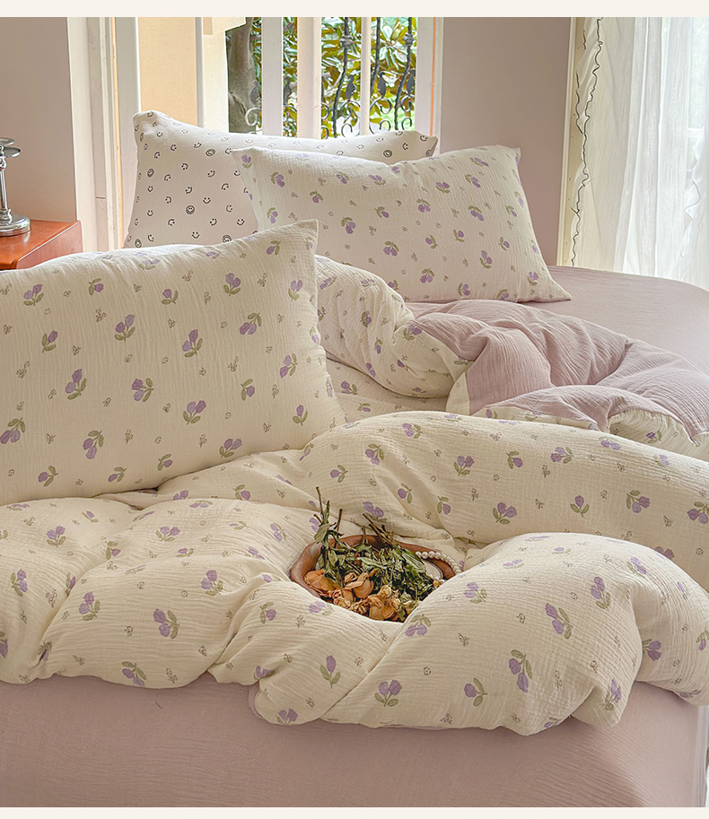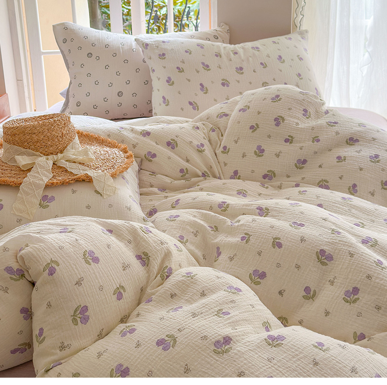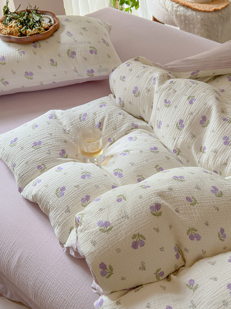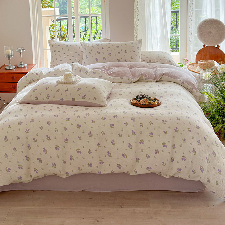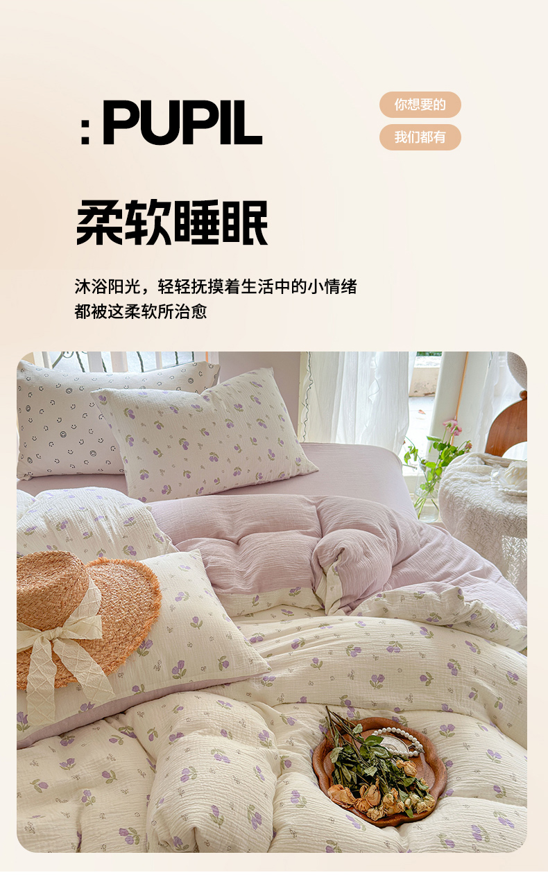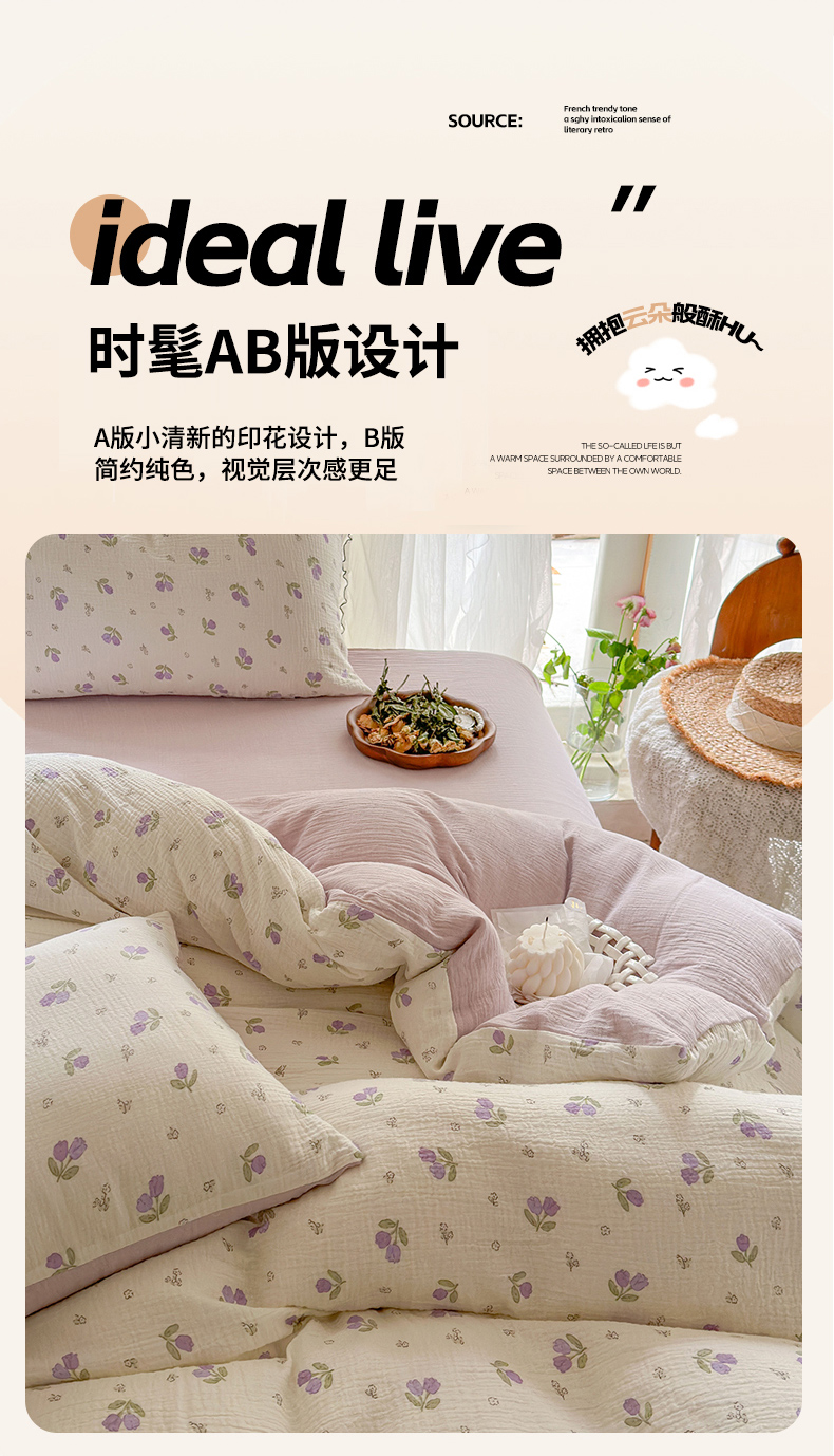 商品名称:木楌 2025新款全棉A类皱皱纱印花四件套 丁香-紫