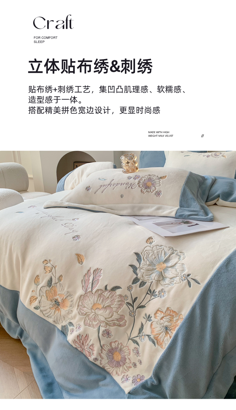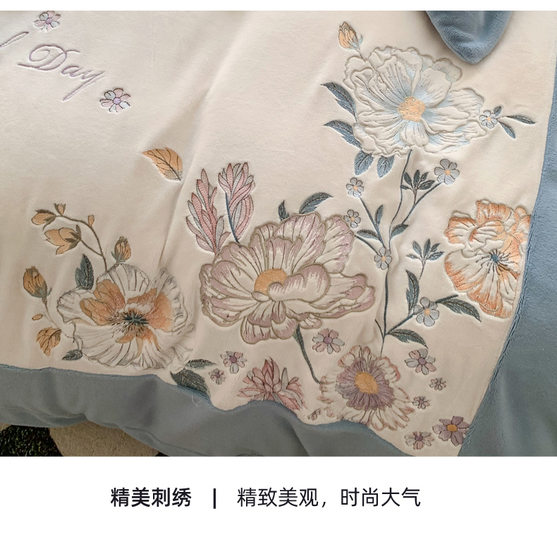 (总)艾唯希家纺 2025新款韩式牛奶雕花绒工艺全消光立体刺绣公主风四件套-忆江南,忆江南-粉,忆江南-蓝,忆江南-紫