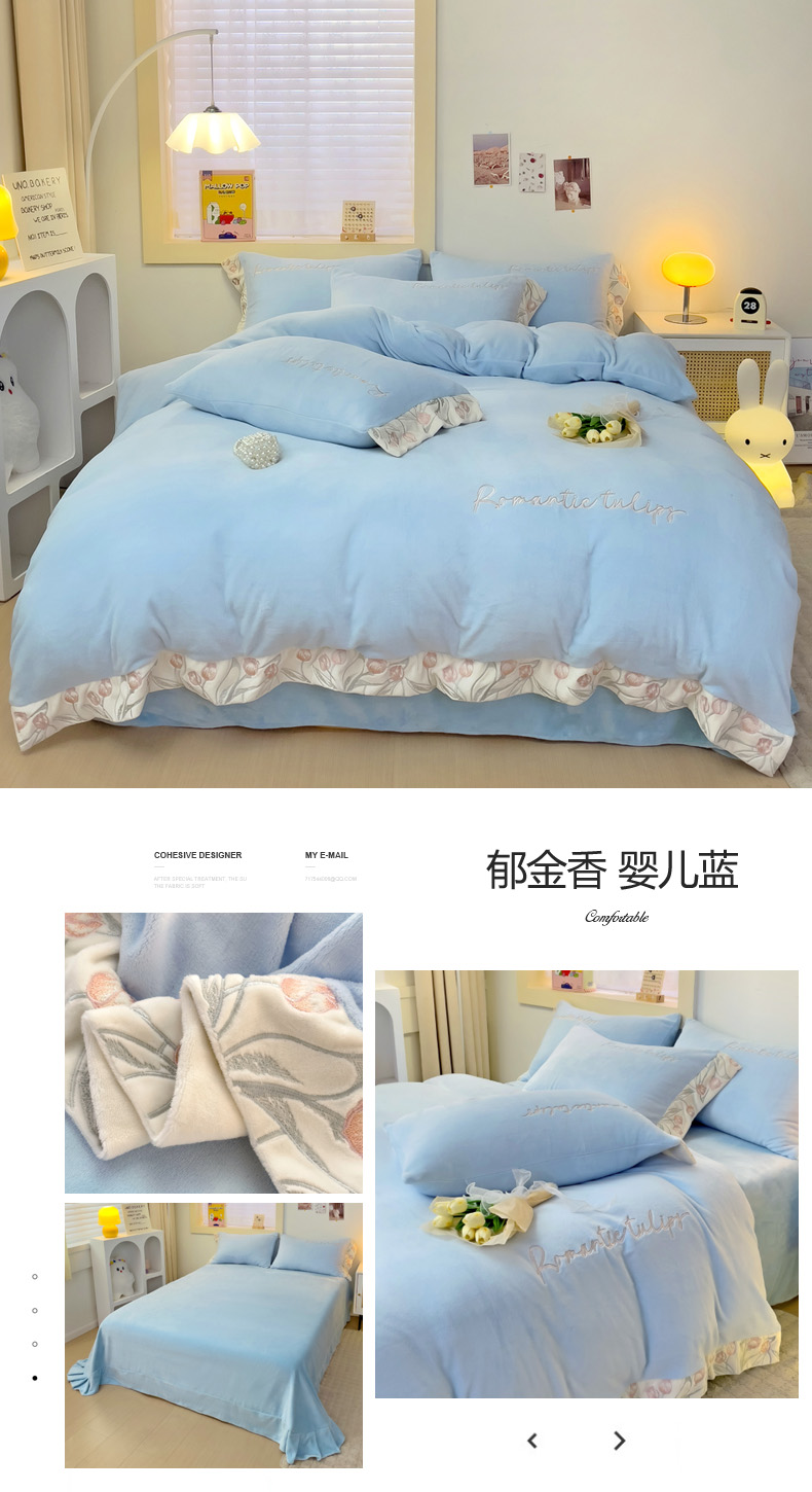 (总)星尚家纺 2024新款全消光A类230g牛奶绒刺绣保暖绒四件套-郁金香,淡雅粉,梵星绿,高级灰,蔷薇紫,婴儿蓝,樱花粉