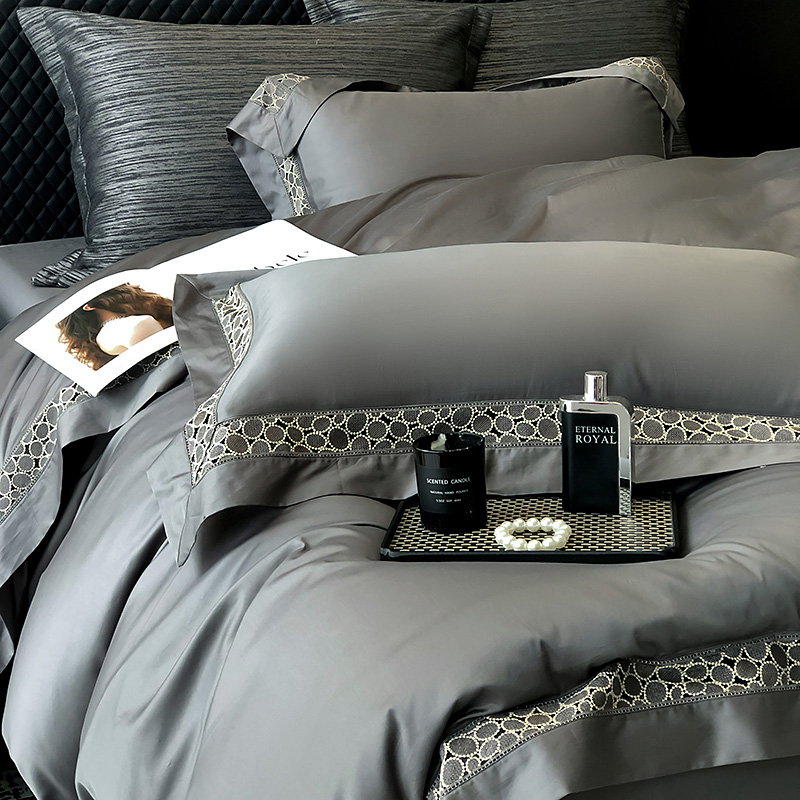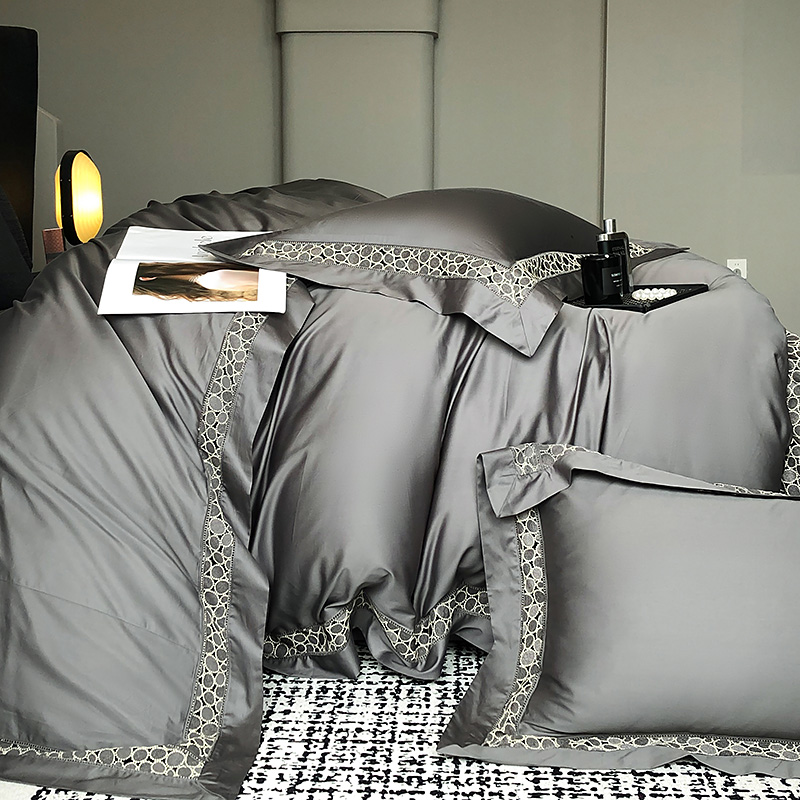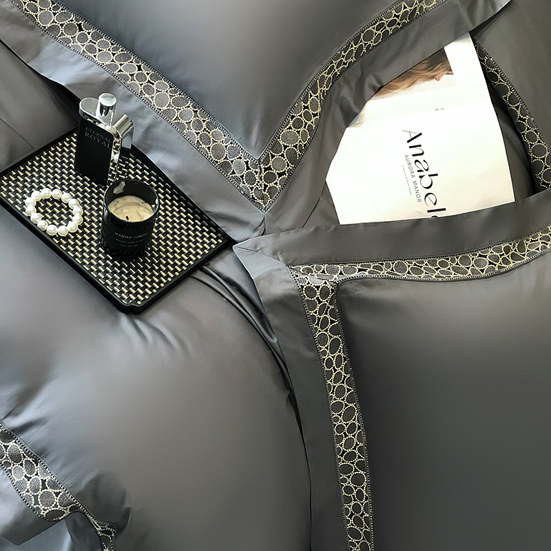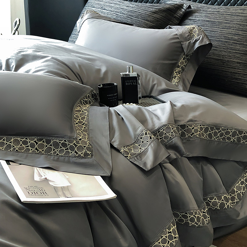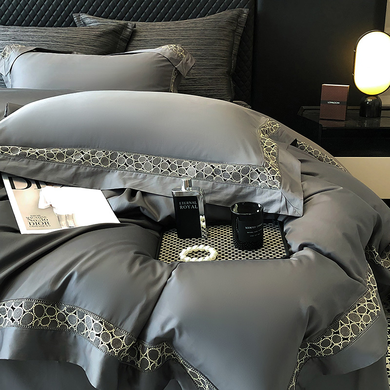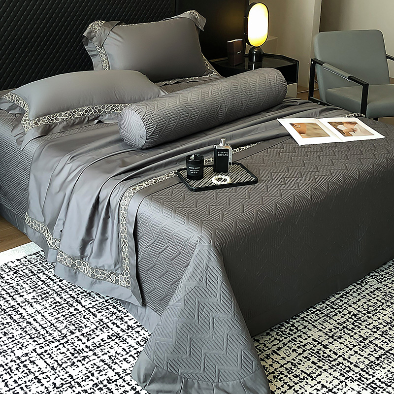 商品名称:若未家居 LOVEWE HOUSE 2025新款高工艺贡缎长绒棉全棉镂空床盖款四件套-奥黛尔 奥黛尔-玄灰