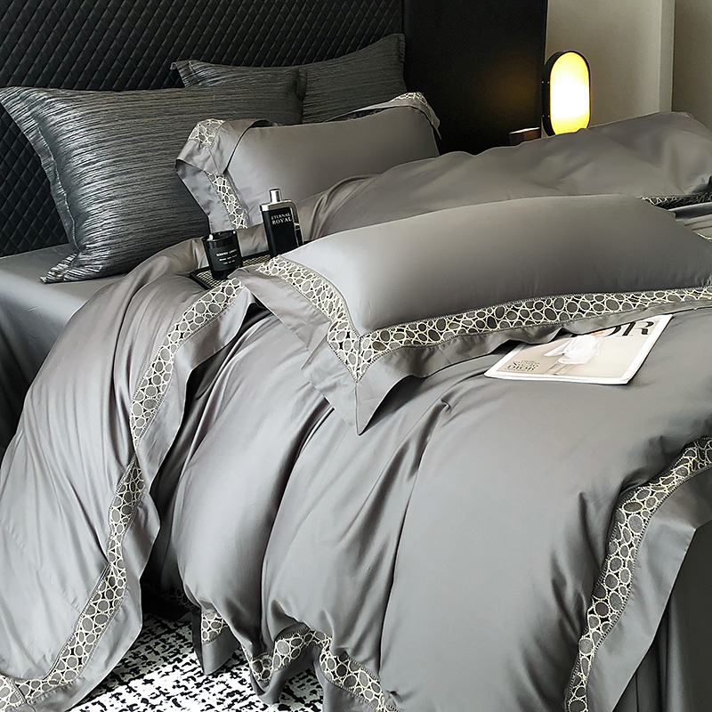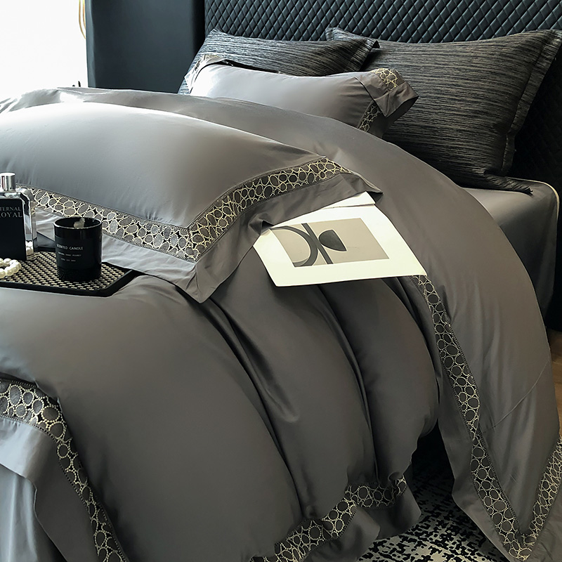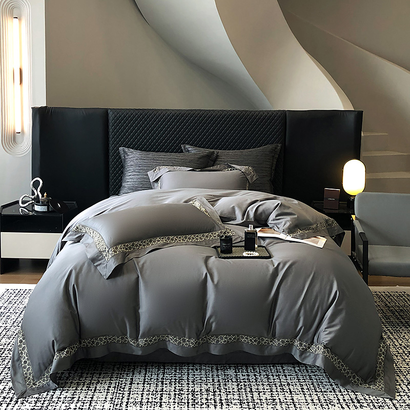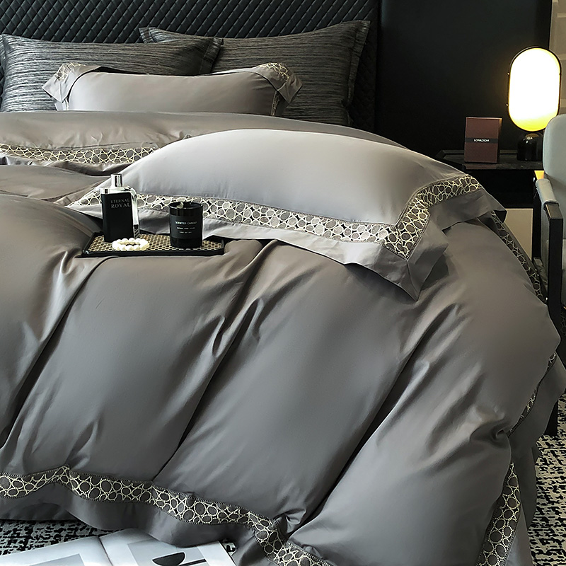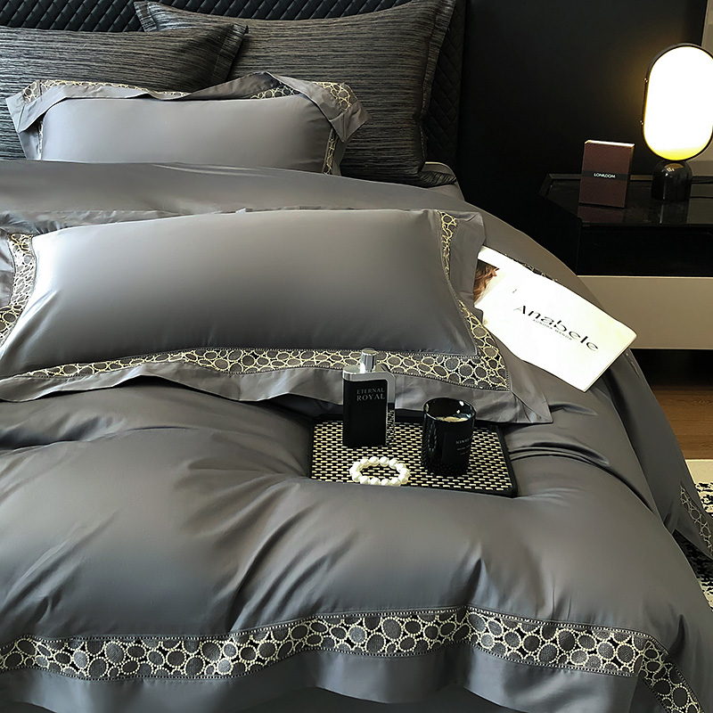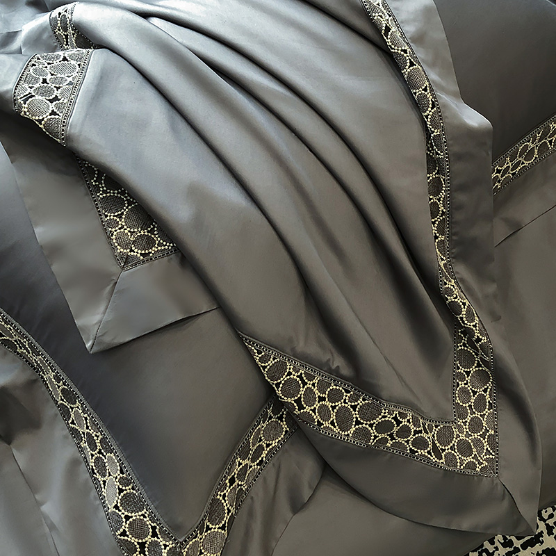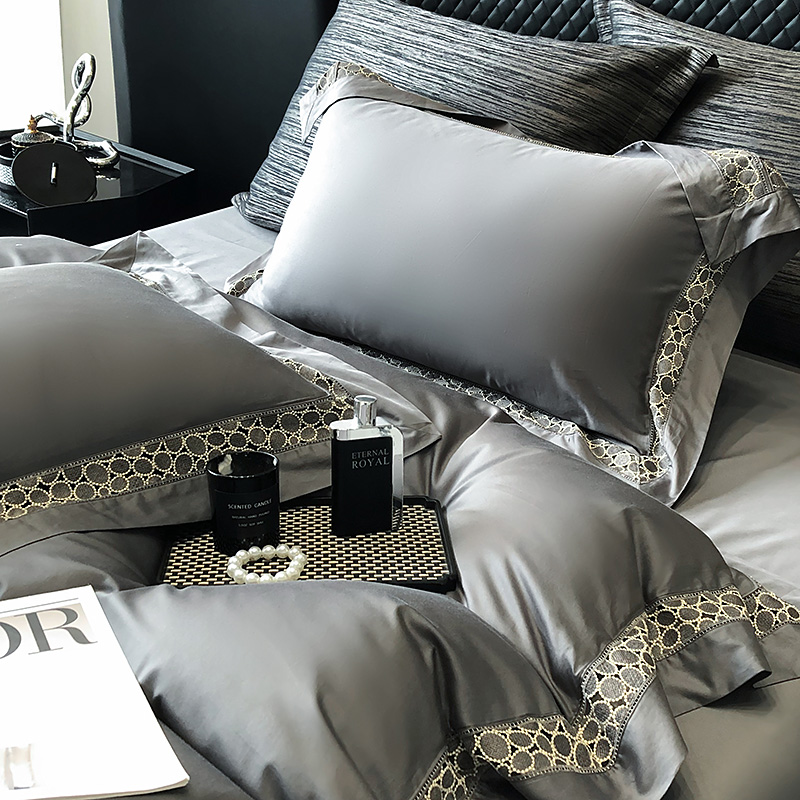 商品名称:若未家居 LOVEWE HOUSE 2025新款高工艺贡缎长绒棉全棉镂空床盖款四件套-奥黛尔 奥黛尔-玄灰