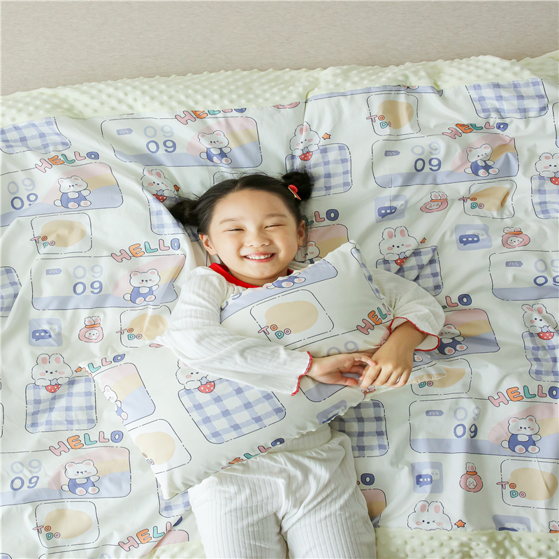 • 91家纺网 家纺一手货源 找家纺 艾佳宝贝 2024秋冬全棉豆豆绒儿童多功能可拆卸盖毯被套被子被芯 早安萌宠