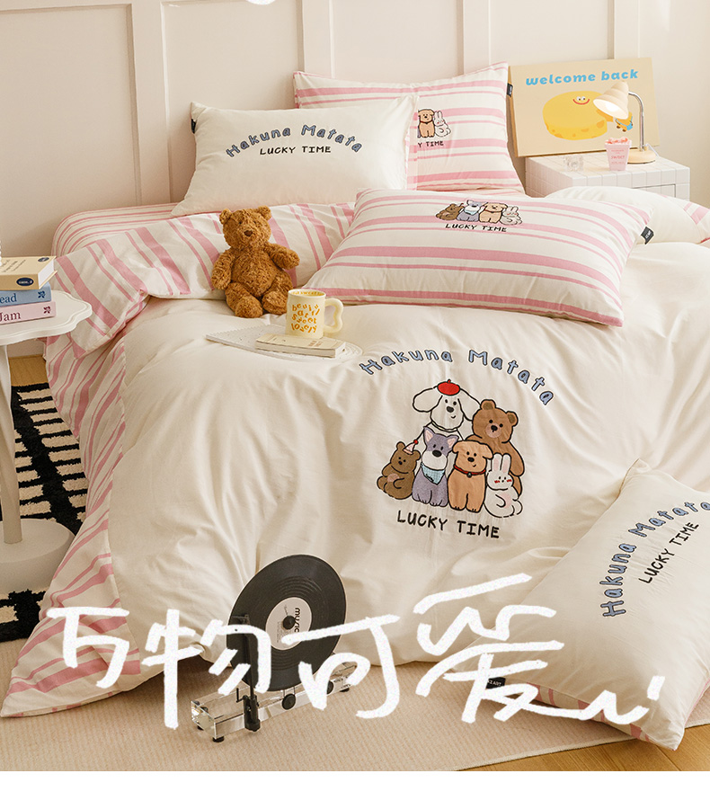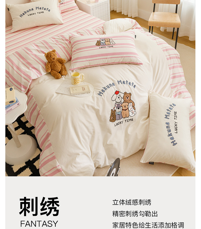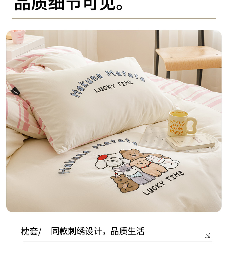 商品名称:卡姿家纺 2024秋冬呆萌小刺绣第二季 森林总动员-粉