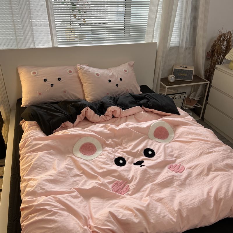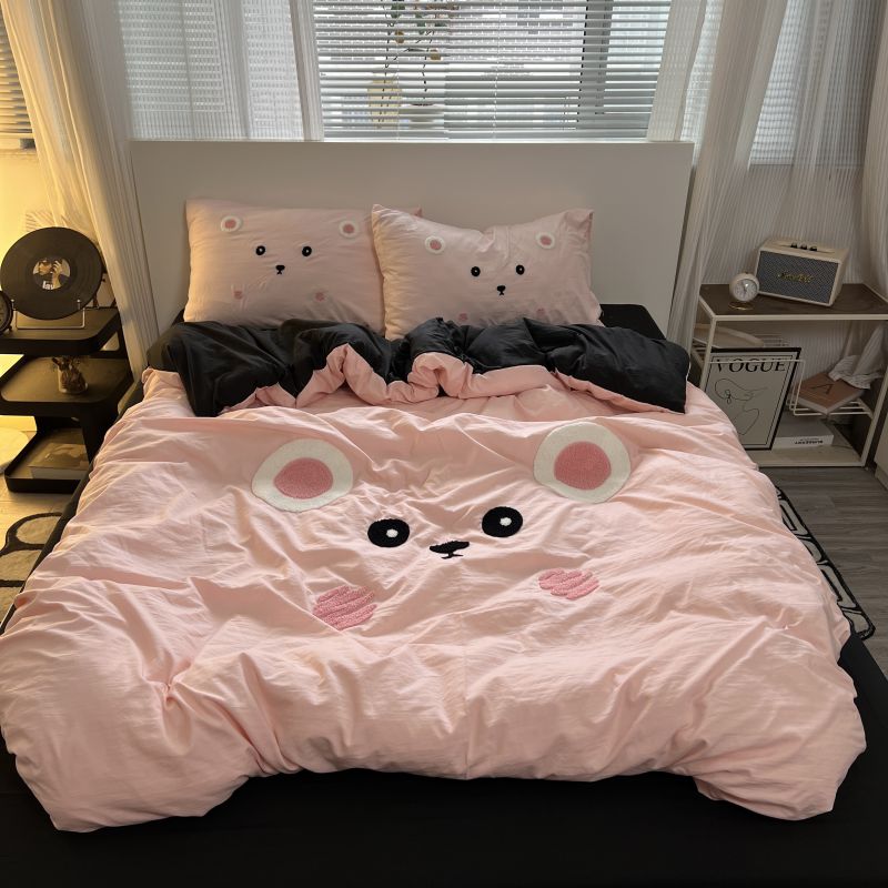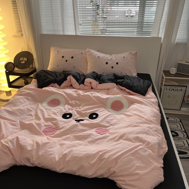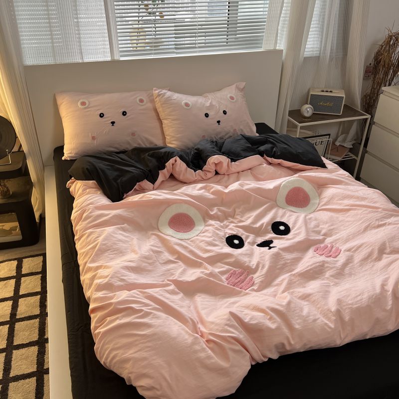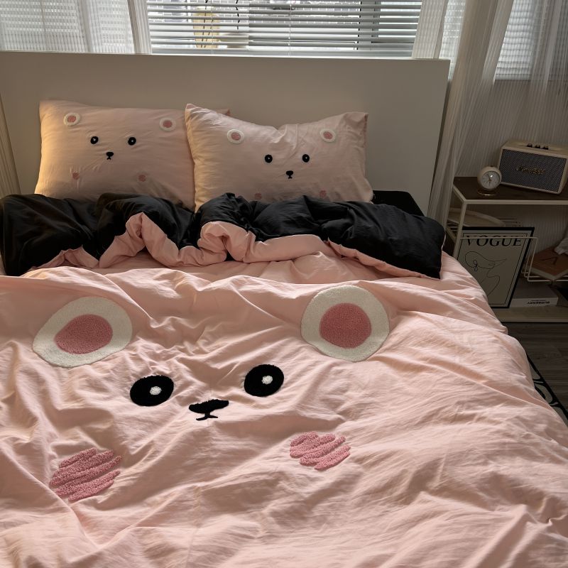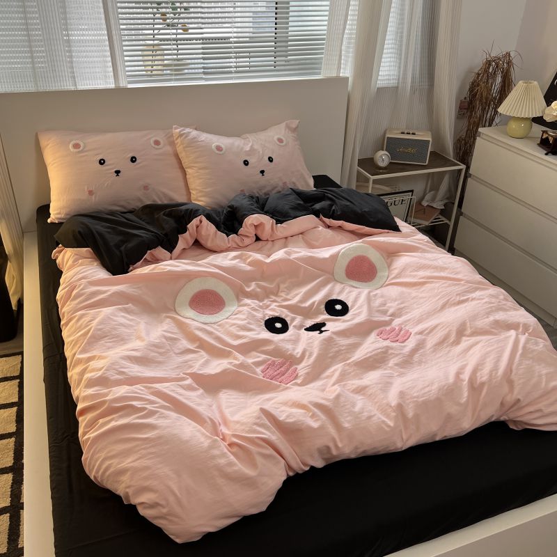 当前位置: 91家纺网 > 商品网购 > 床品套件 > 四件套 > 水洗棉四件套 > 奈颜 2024新款爆款超柔水洗棉大板毛巾绣四件套学生宿舍三件套 羞涩小兔-酷黑+浅粉