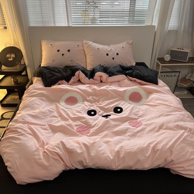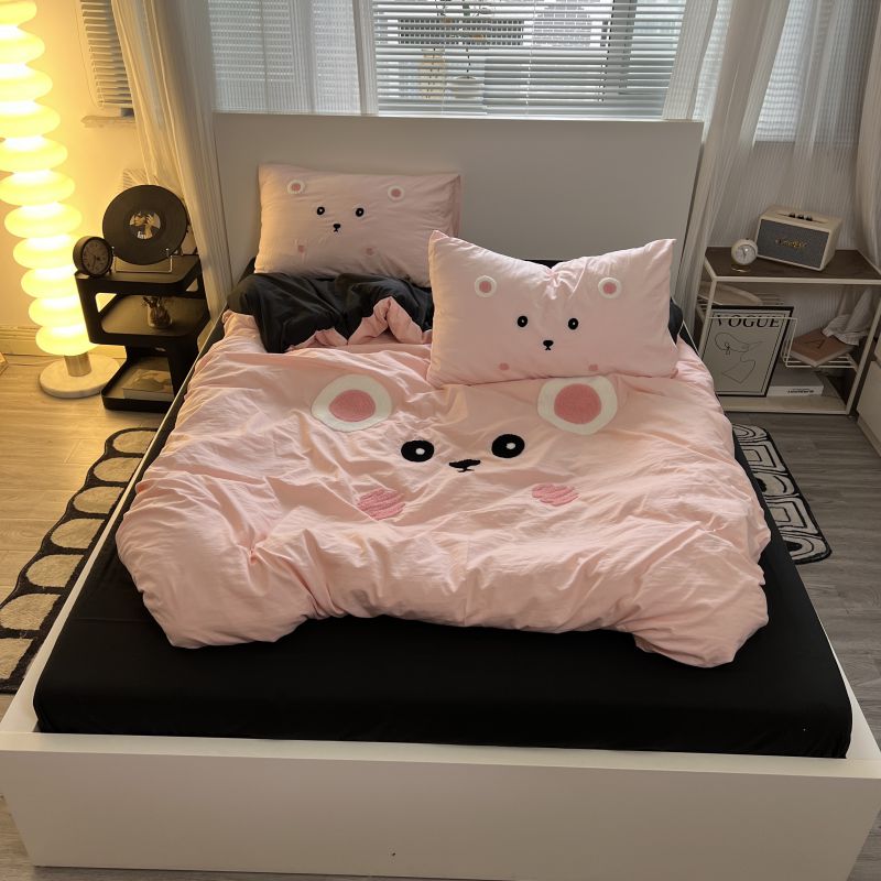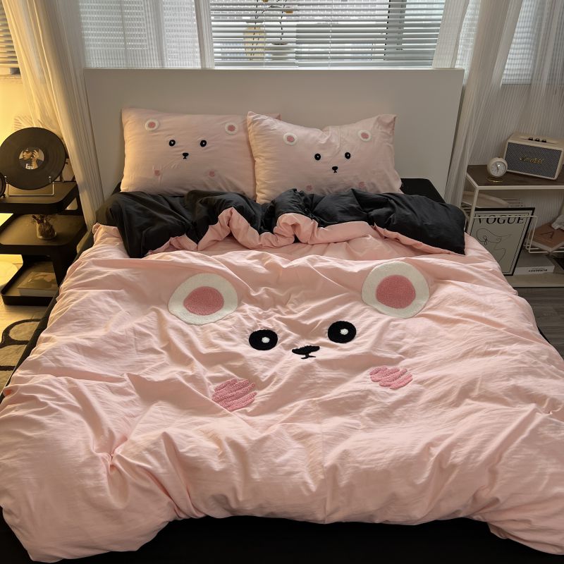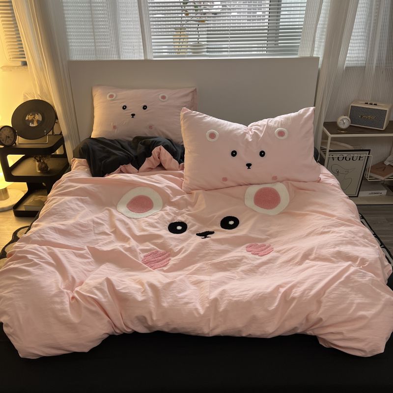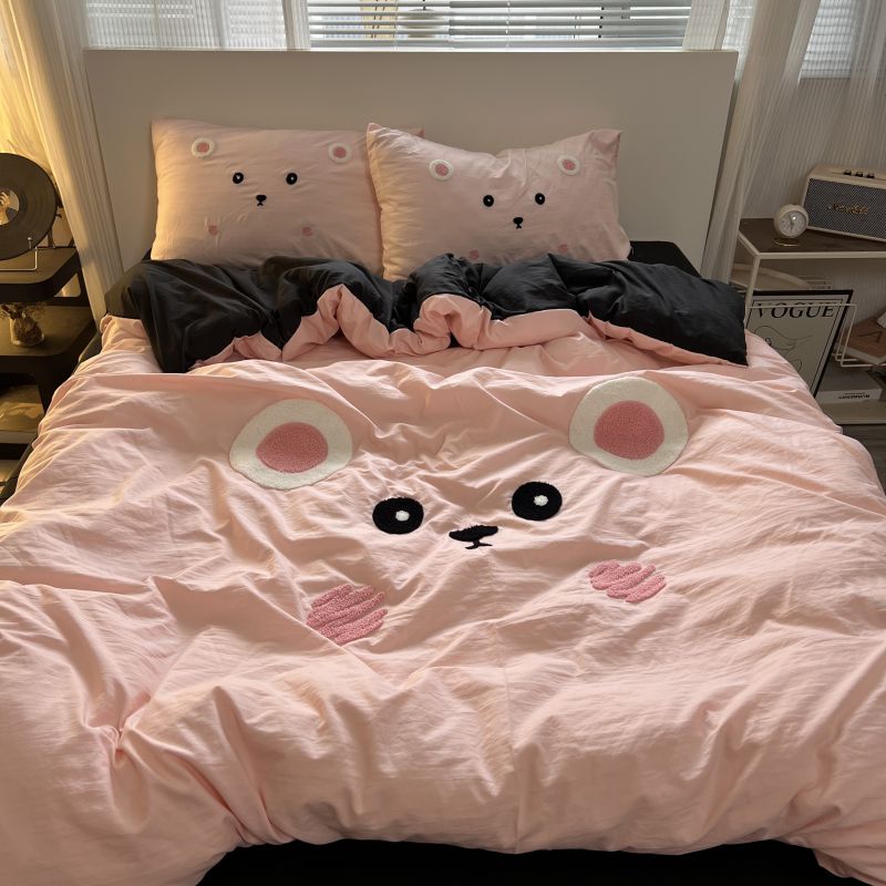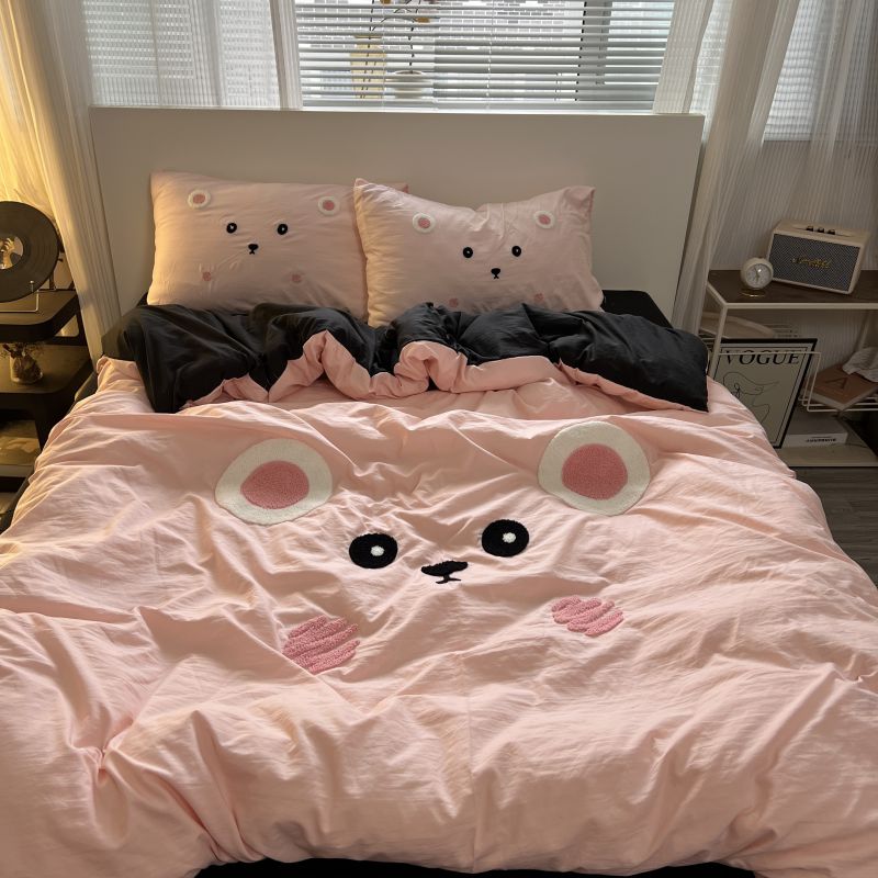 当前位置: 91家纺网 > 商品网购 > 床品套件 > 四件套 > 水洗棉四件套 > 奈颜 2024新款爆款超柔水洗棉大板毛巾绣四件套学生宿舍三件套 羞涩小兔-酷黑+浅粉