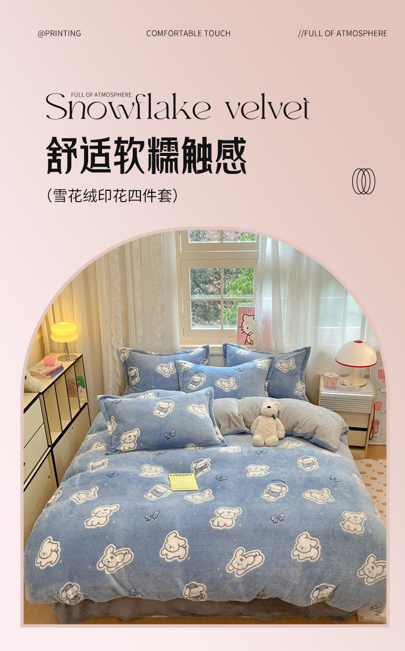 (总)川悦生活 2025新款立体雪花绒印花大床四件套系列一场景一,爱米兔,冰激凌小熊,波波熊,彩虹爱心粉,彩虹爱心蓝,彩虹爱语粉,彩虹爱语蓝,藏蓝星语,哒哒鸭丫,嘎嘎小熊,花田米兔,花园蝴蝶,橘兔,可爱熊,快乐鸭鸭,蜜语奶兔,奶芙小花,奶咖小熊,奶味云朵,妮娜兔,泡芙小兔,巧克力熊,秋语-红豆,少女小兔,塔丽小熊猫,桃心爱语,甜蜜日常粉,甜系粉熊,甜系龙龙,甜心花田,小狗物语,小熊花园,小雪狗,小郁金,幸福甜兔,熊小巴,樱桃啵啵,郁金奶兔,云朵奶狗,ins樱桃,lucky熊猫