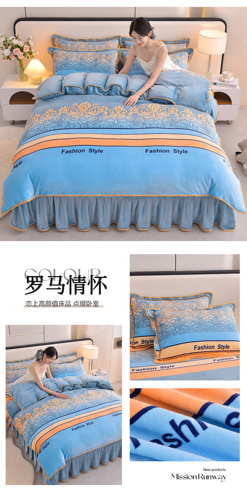 商品名称:富之航 2024新款8-9斤高克重印花牛奶绒四件套保暖绒套件直播爆款罗马情怀