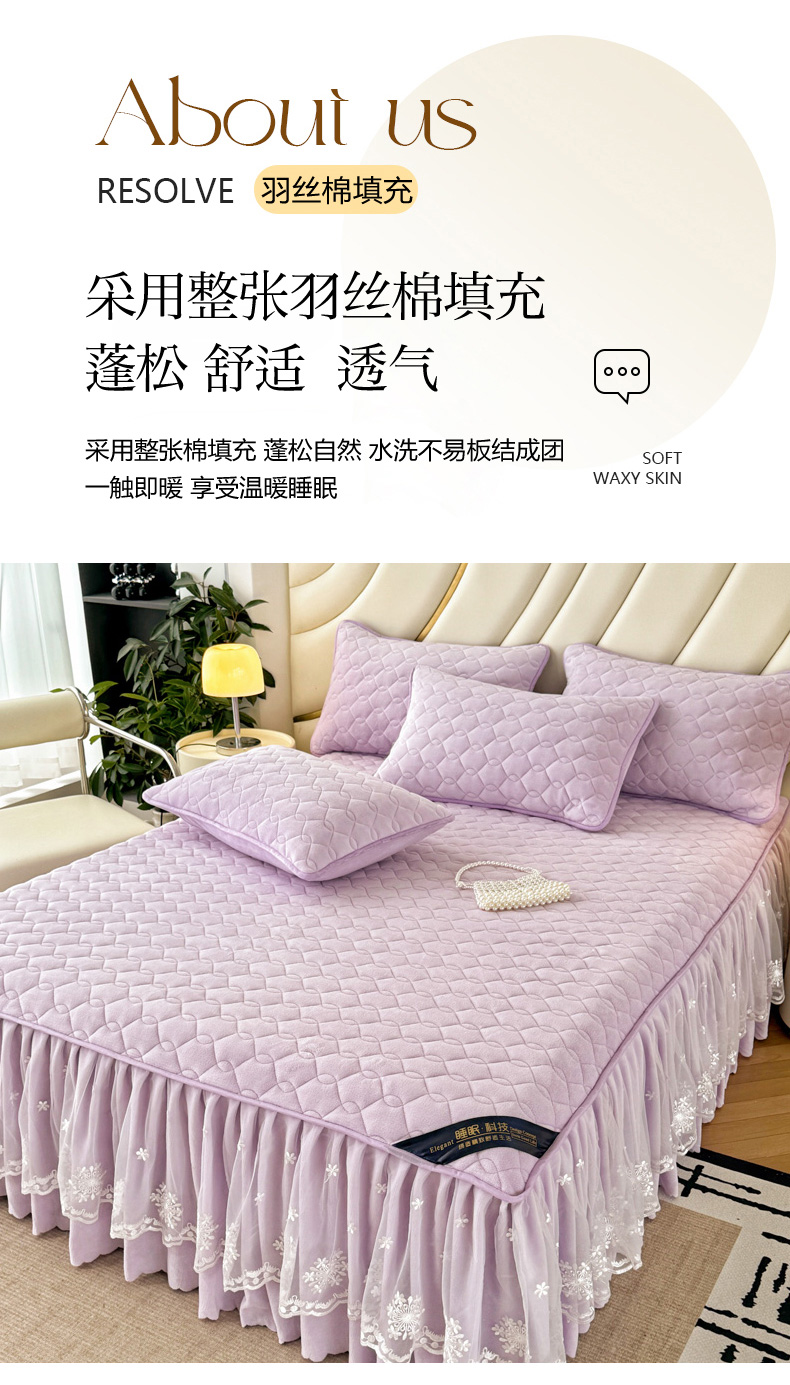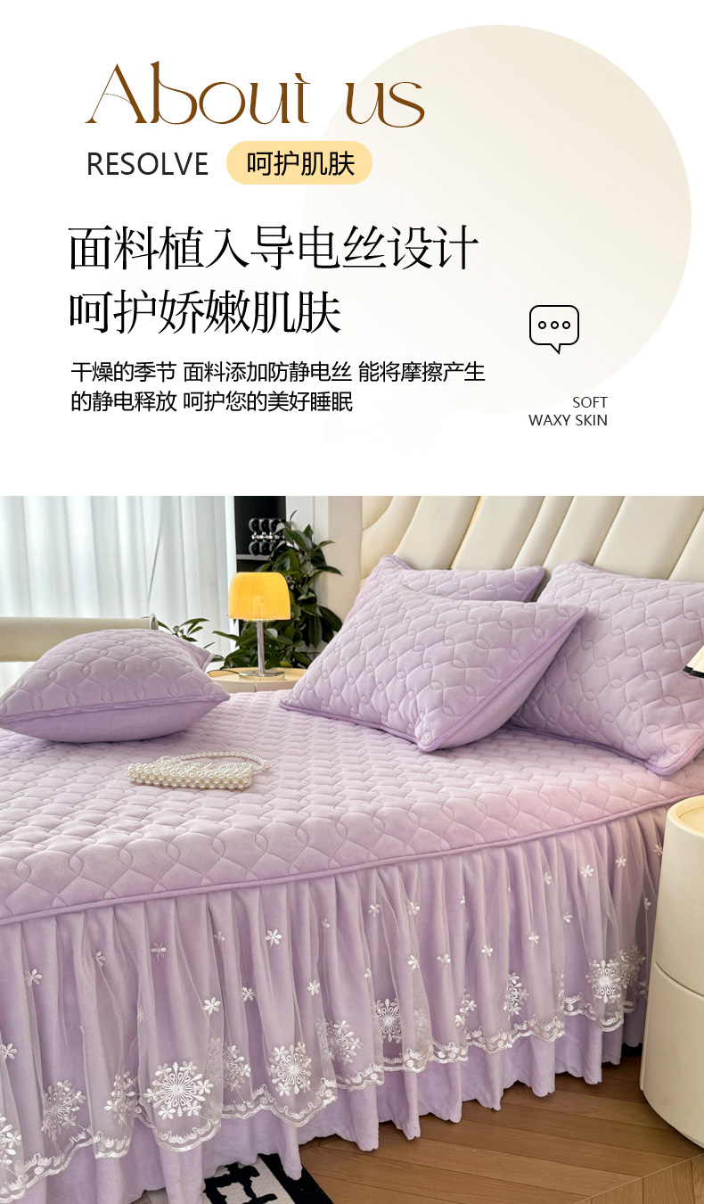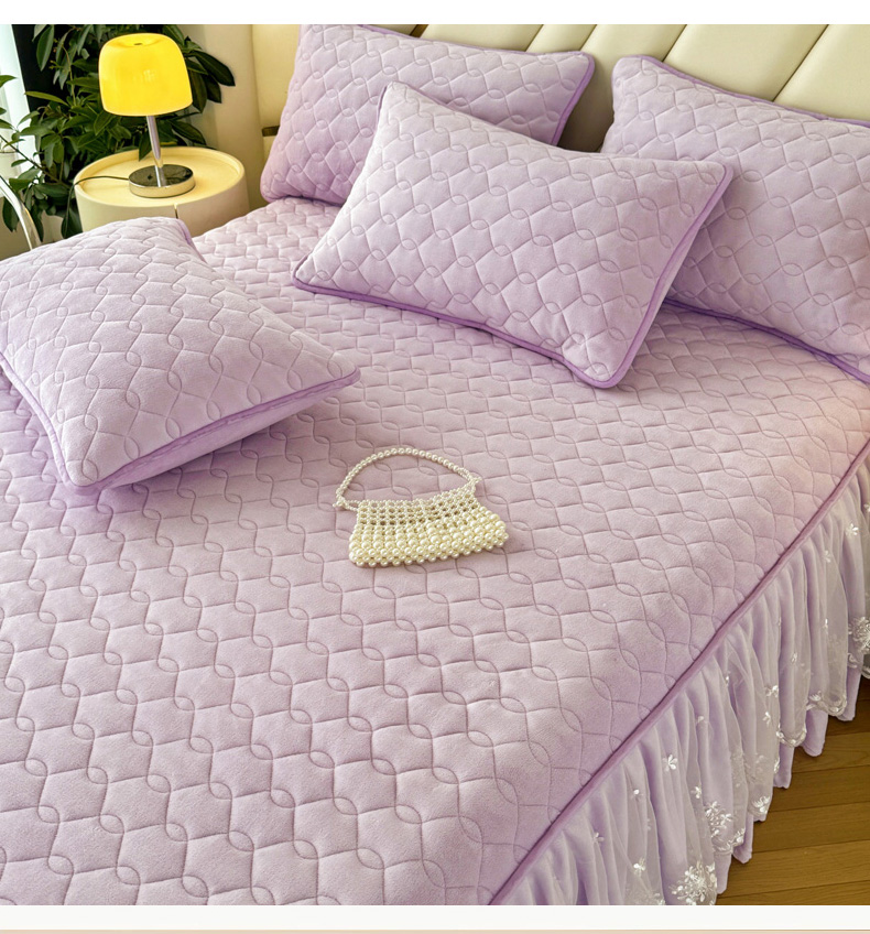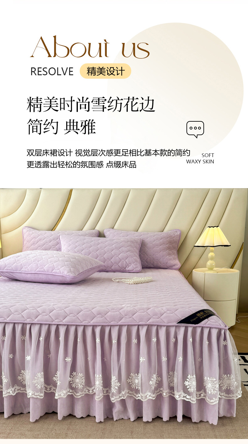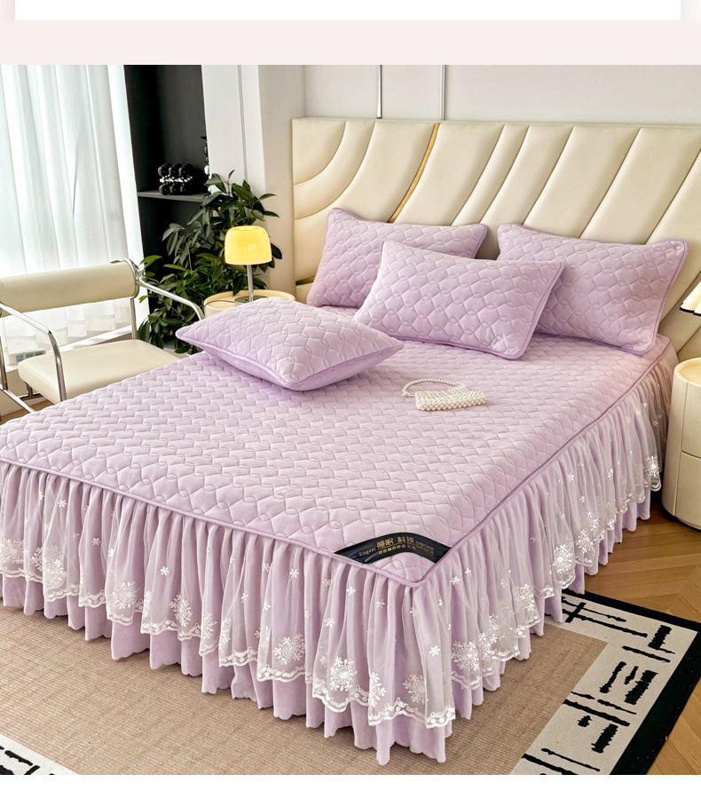 品乐家纺 2024新款简约牛奶绒夹棉保暖床裙 浅紫