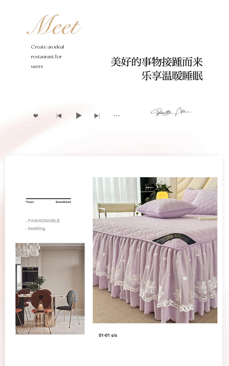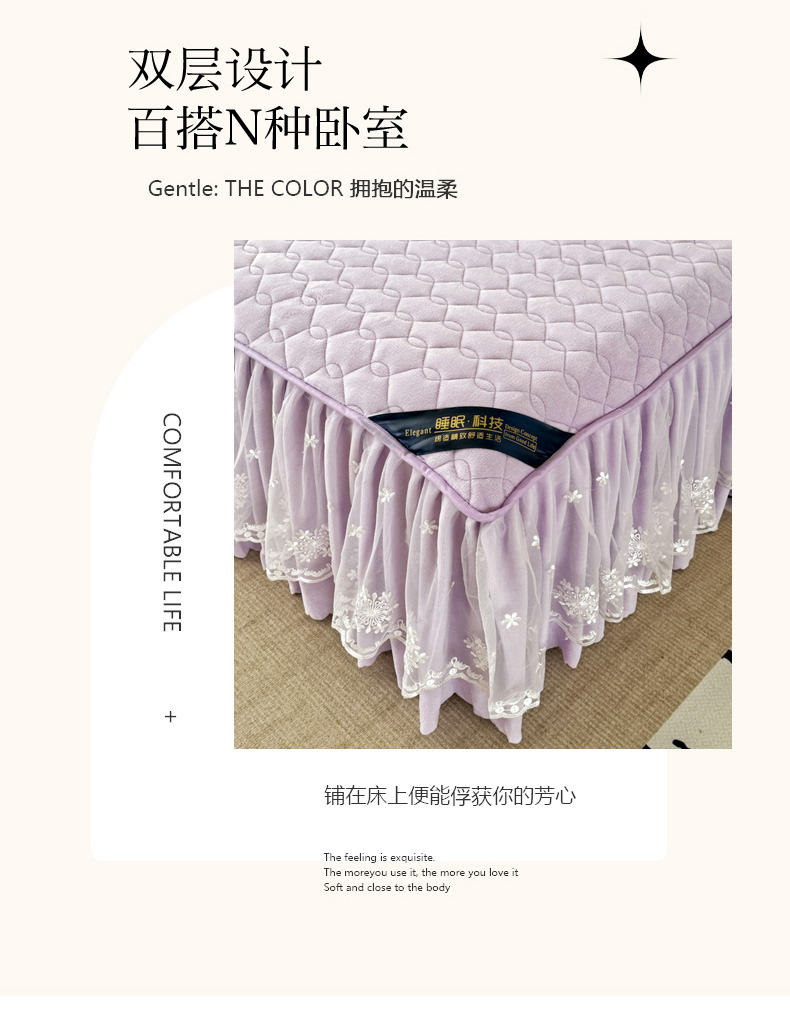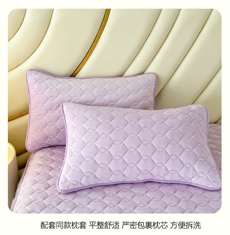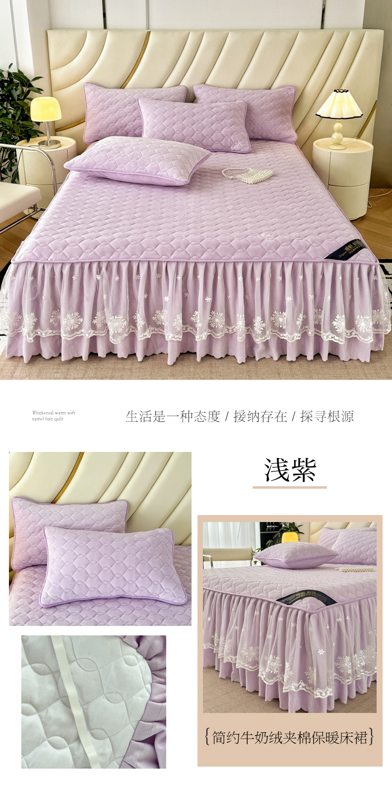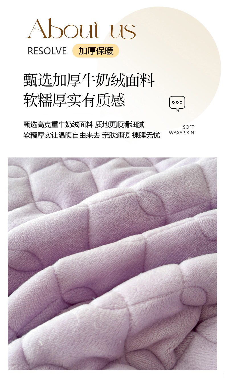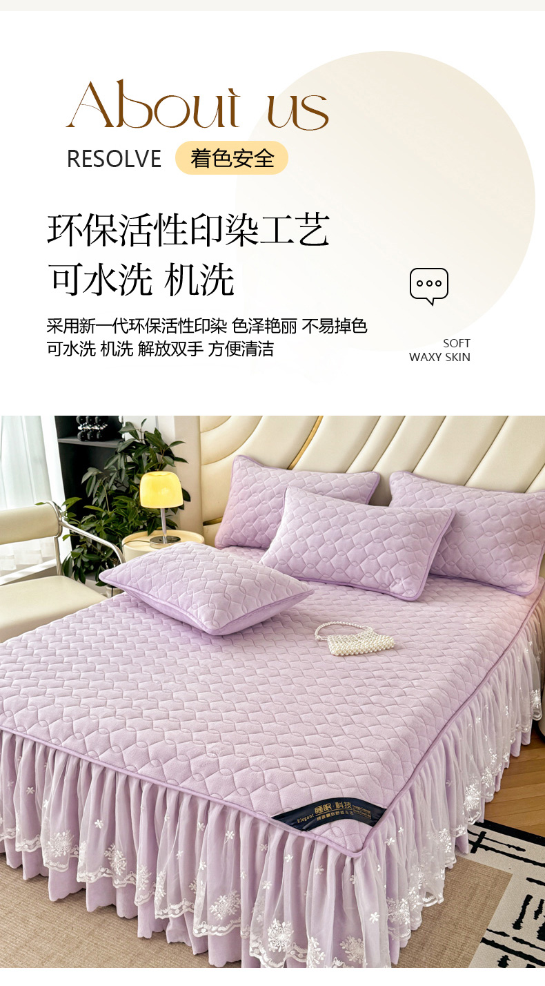 • 91家纺网 家纺一手货源 找家纺 品乐家纺 2024新款简约牛奶绒夹棉保暖床裙 浅紫