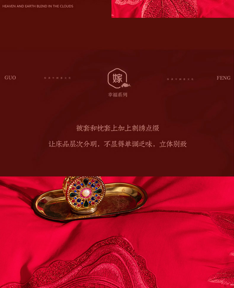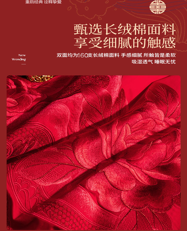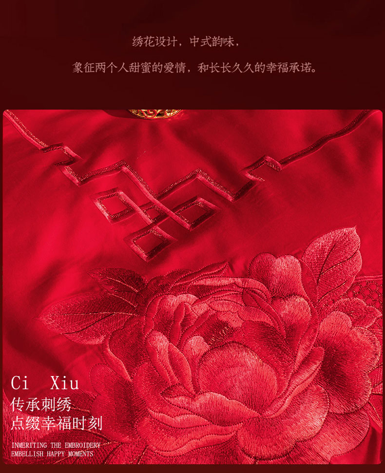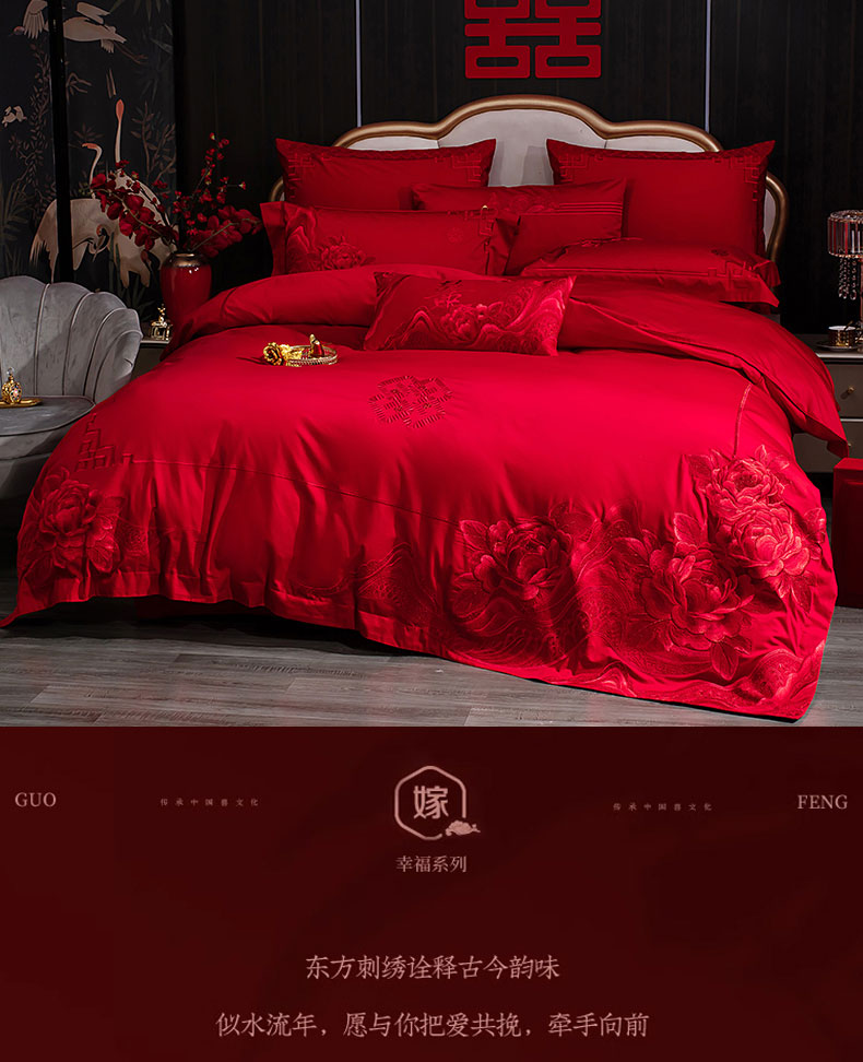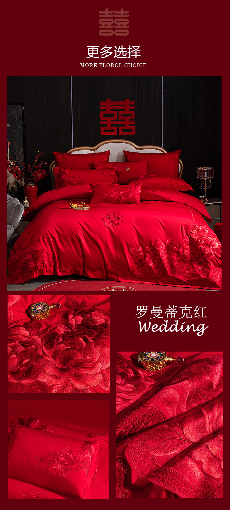 当前位置: 91家纺网 > 商品网购 > 床品套件 > 四件套 > 婚庆四件套 > 蒂爵 全棉纯棉1长绒棉刺绣高端时尚款婚庆四件套多件套 罗曼蒂克红