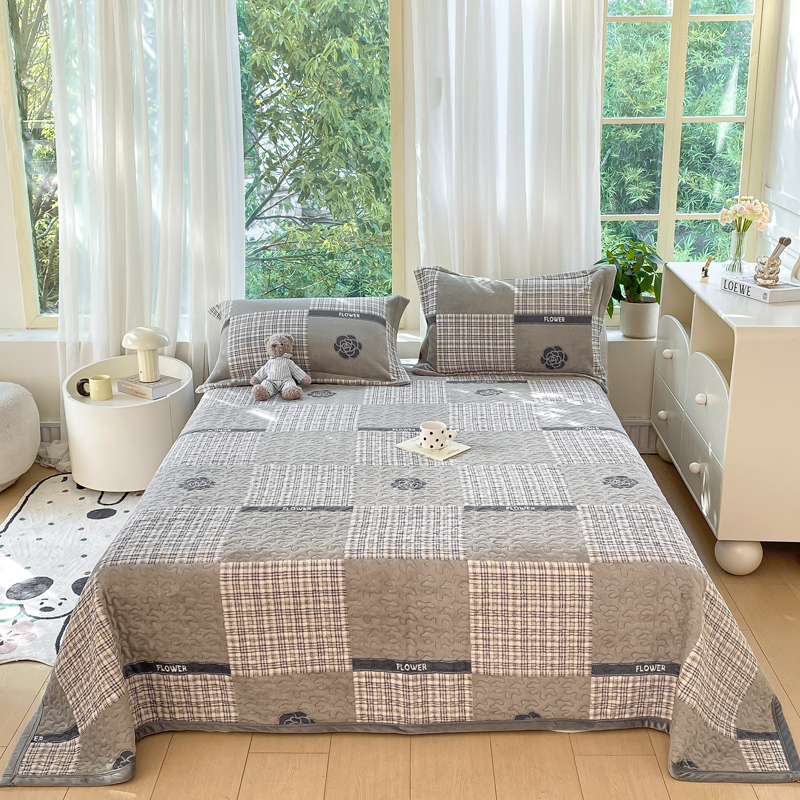 赫梵茜 2024新款高克重牛奶绒夹棉单床盖 山茶花