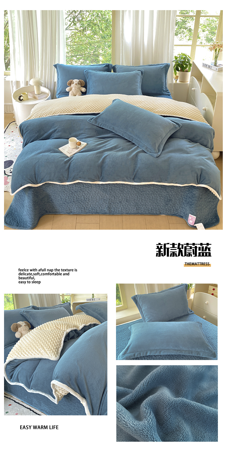 当前位置: 91家纺网 > 商品网购 > 床品套件 > 四件套 > 牛奶绒四件套 > 赫梵茜 2024新款高克重安抚豆豆被套牛奶绒夹棉床盖四件套 新款蔚蓝