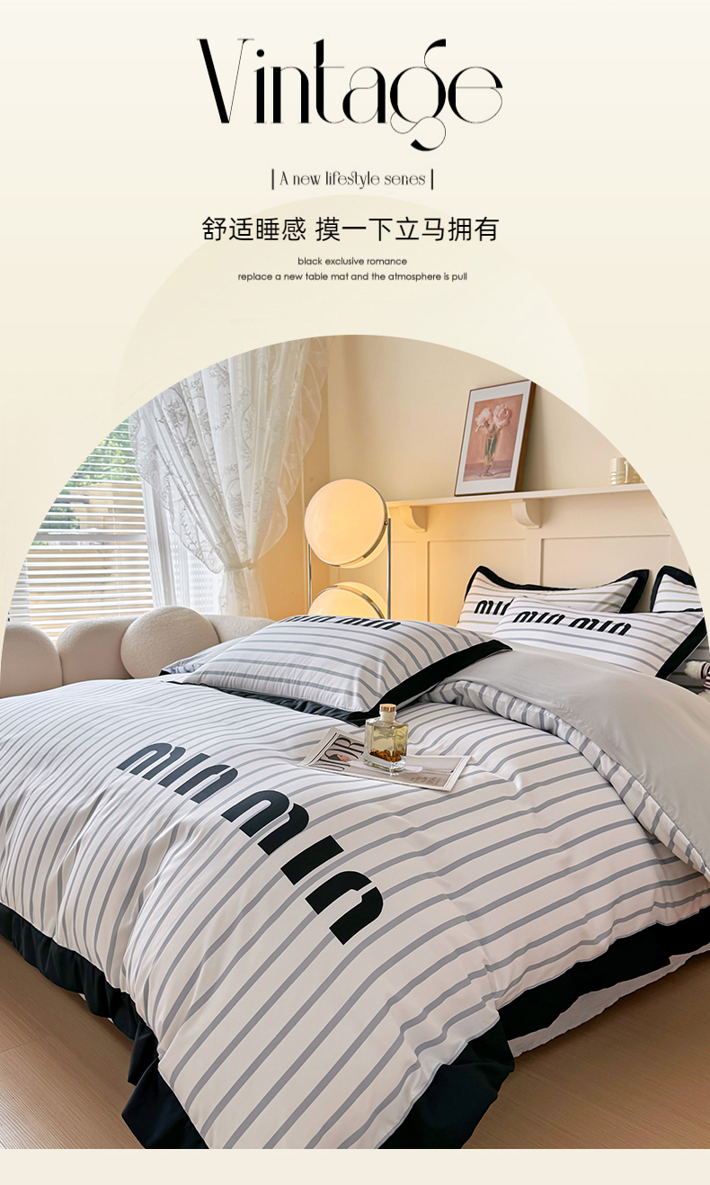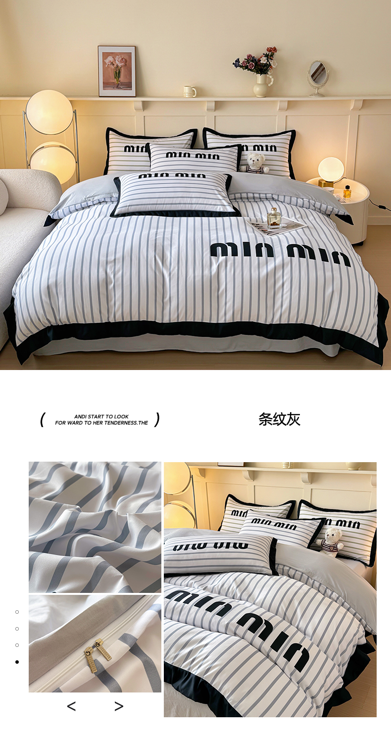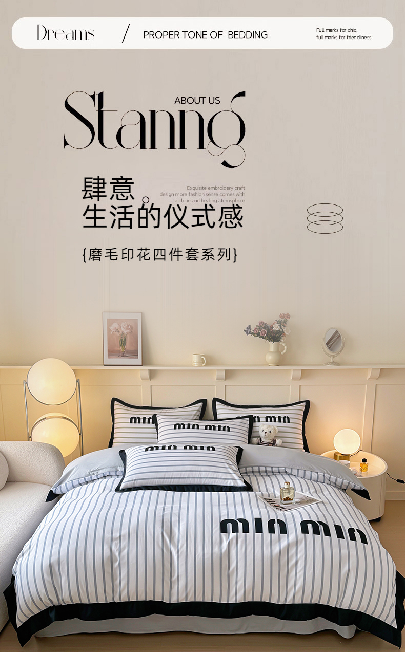 (总)花沐家居 2023新款活性数码印花牛奶绒四件套-场景1,白色字母熊,黑白金范,黑白熊,黑色花朵,渐变熊,条纹,小白熊,小粉熊,小古黑花,小黑熊,小香风字母,字母熊