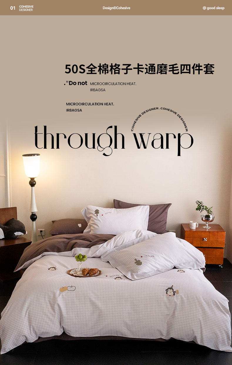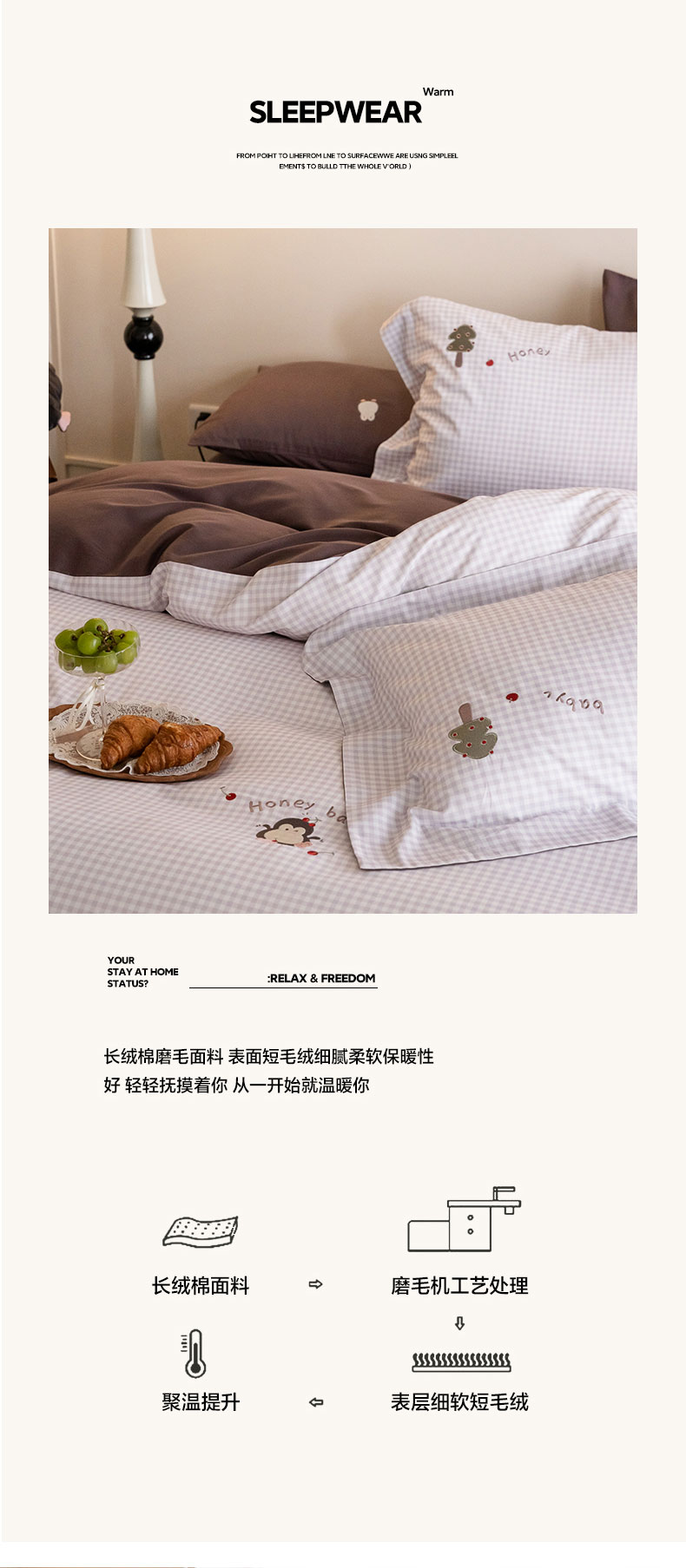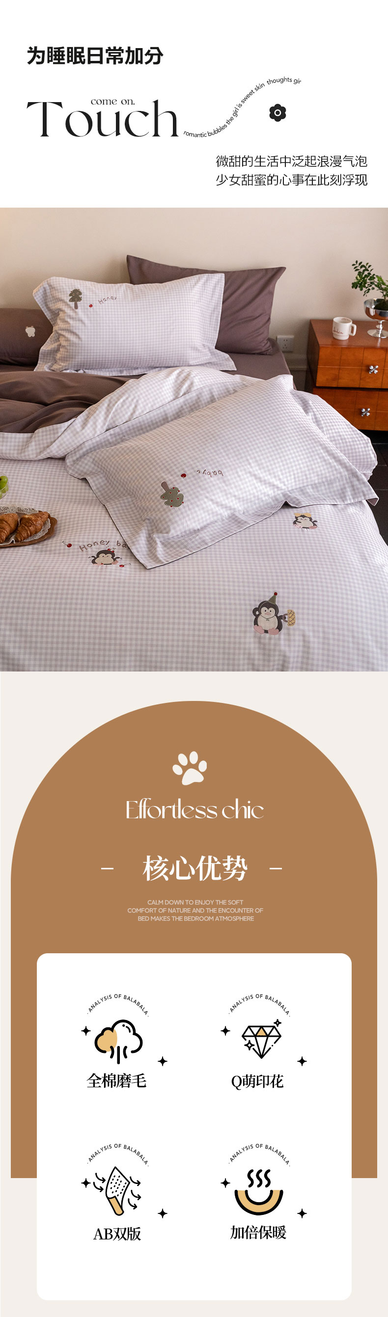 当前位置: 91家纺网 > 商品网购 > 床品套件 > 四件套 > 普通磨毛四件套 > FORTWO家纺原创设计(FOR TWO家纺) 2024新款50S格子磨毛刺绣四件套 小呆