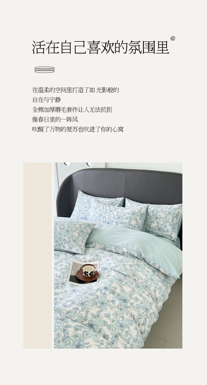 (总)千朵 2025新款全棉磨毛四件套,浪漫人生粉,浪漫人生米,香漫豆沙,茵然豆沙,茵然咖,珍妮咖,珍妮绿