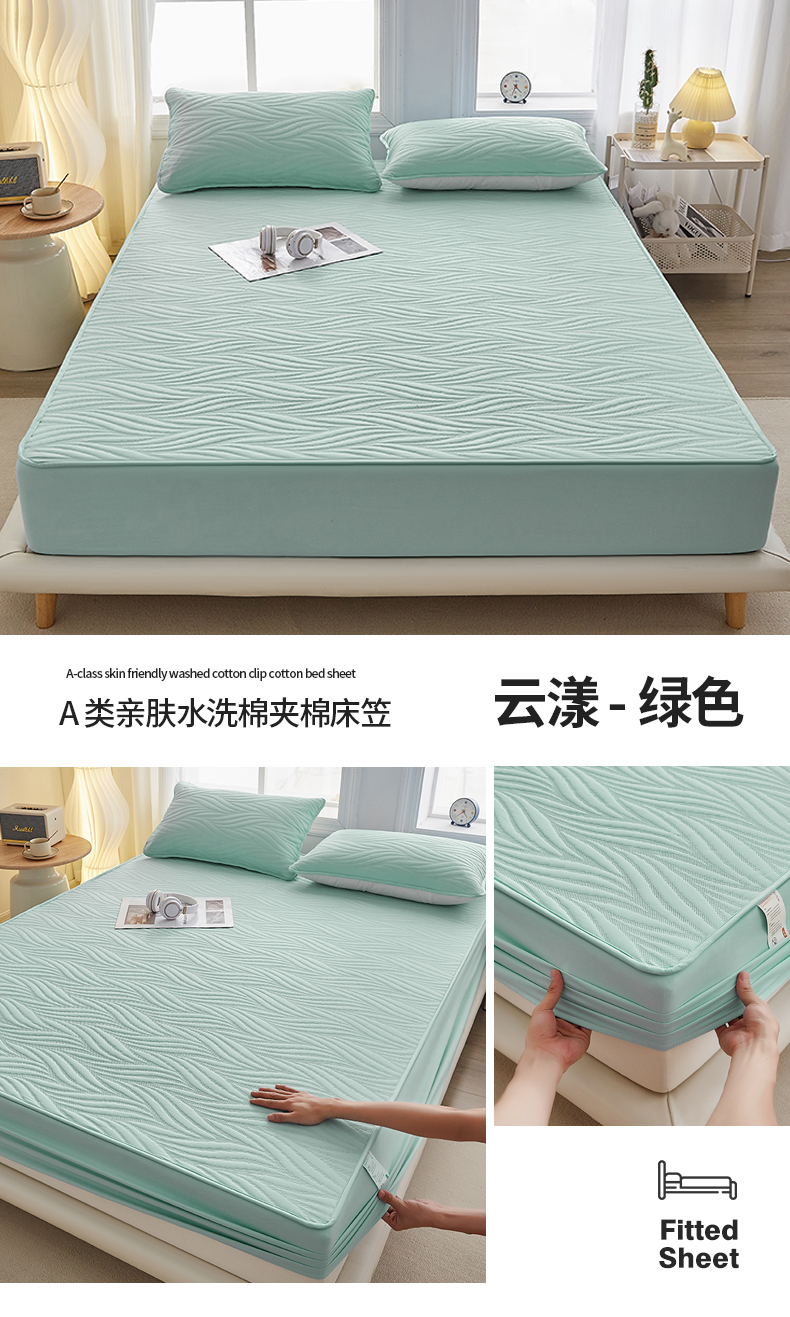 • 91家纺网 家纺一手货源 找家纺 盛眠 2025新款水洗棉夹棉床笠-云漾 云漾-绿