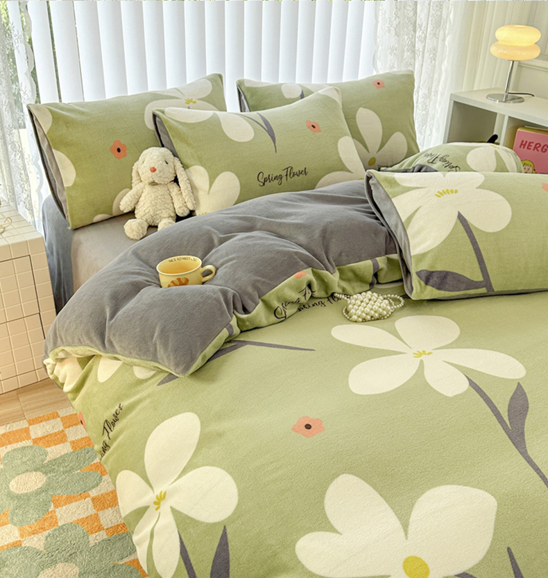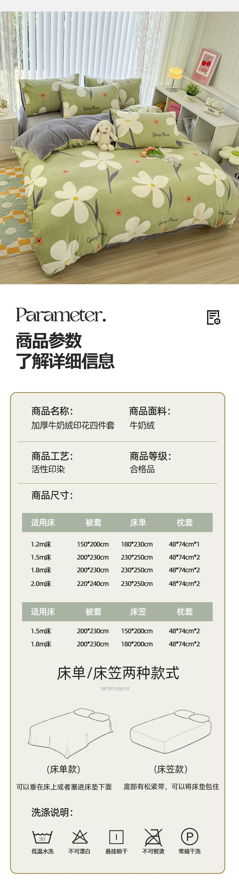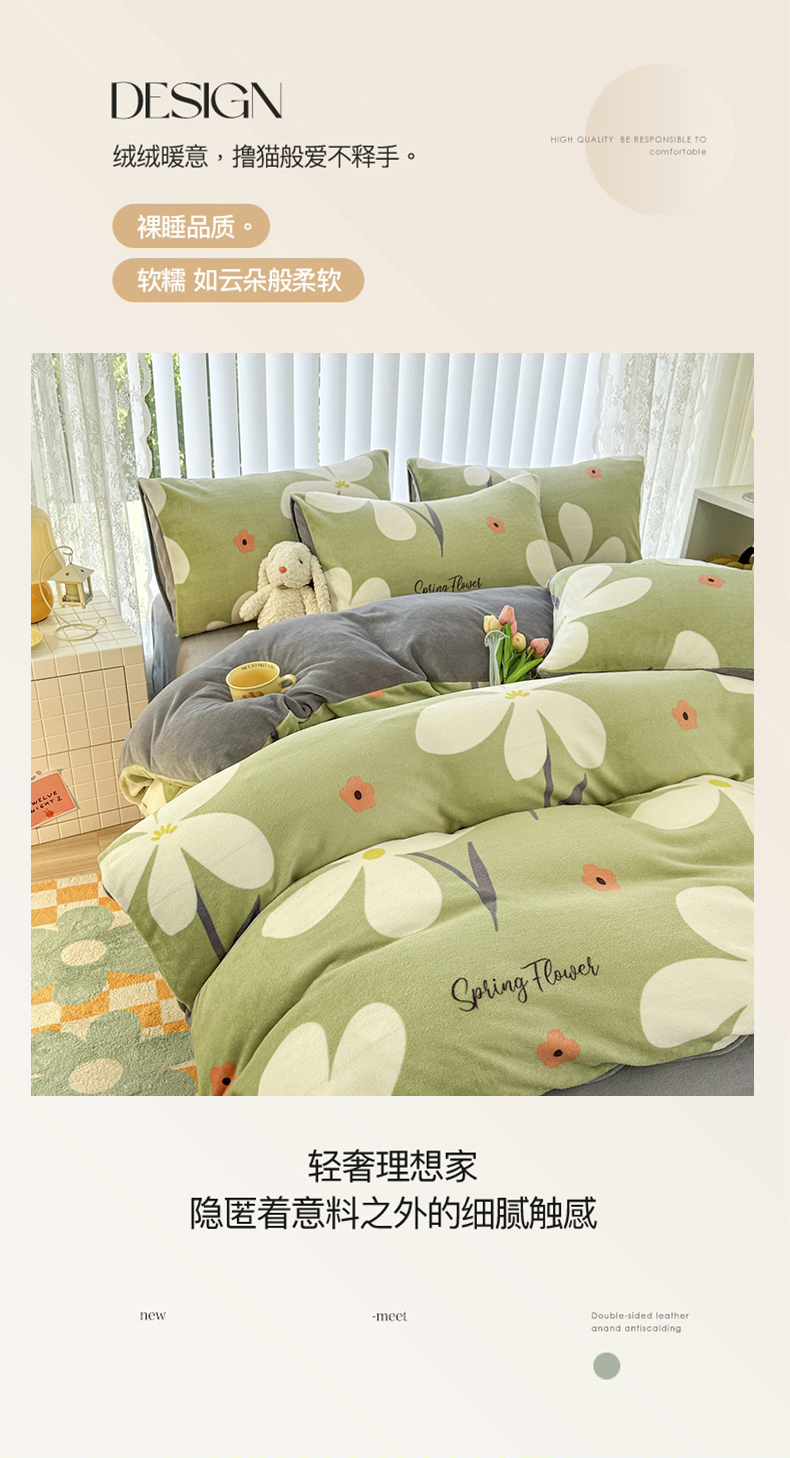 商品名称:觅妮家纺 2025新款全消光200g高克重秋冬加厚印花牛奶绒单被套 花漫