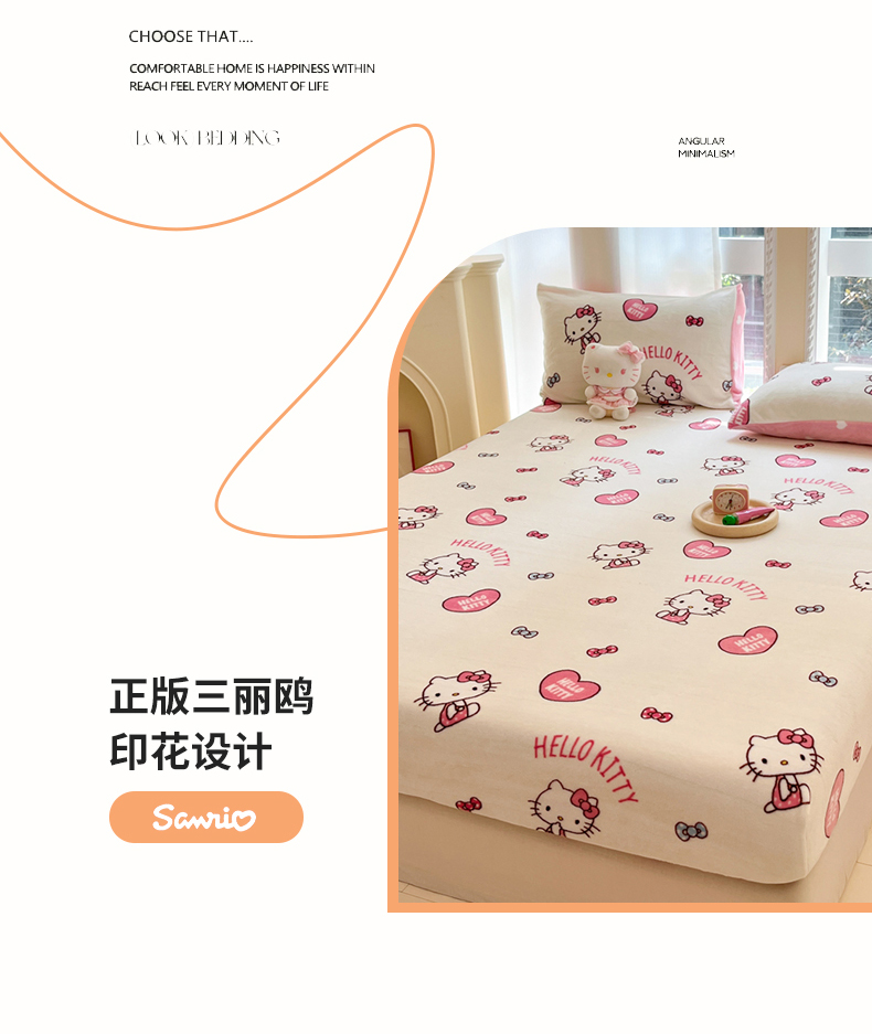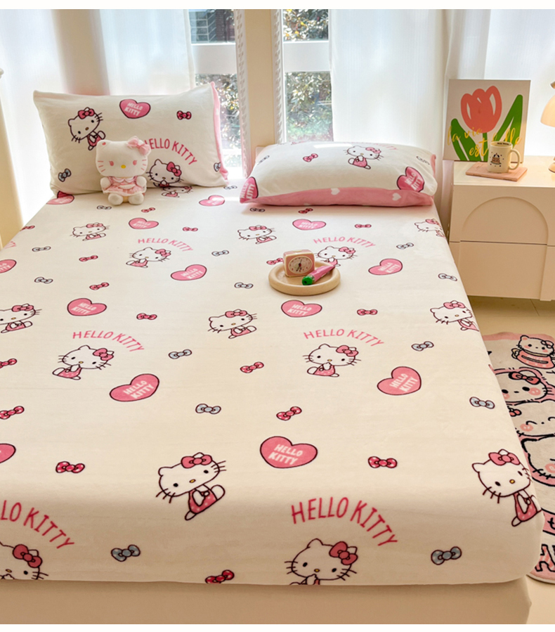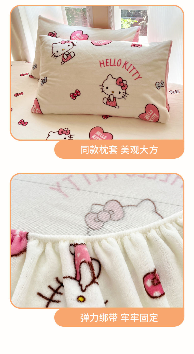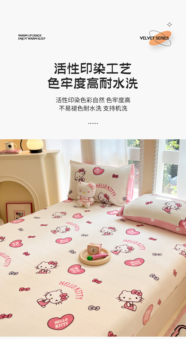 • 91家纺网 家纺一手货源 找家纺 博雅 2024新款三丽鸥牛奶绒小版床笠系列 牛奶绒小版-爱心KT猫