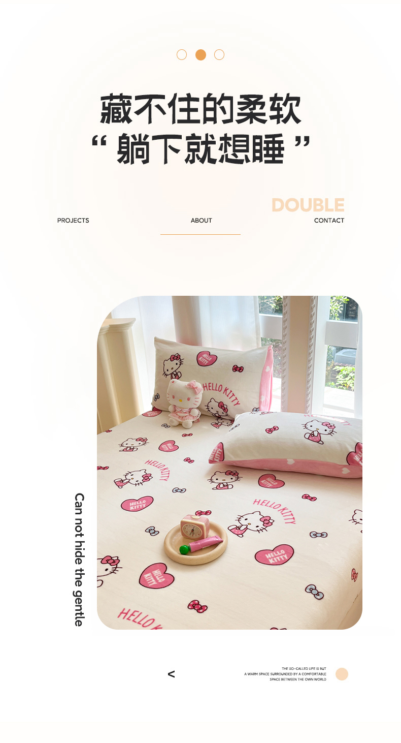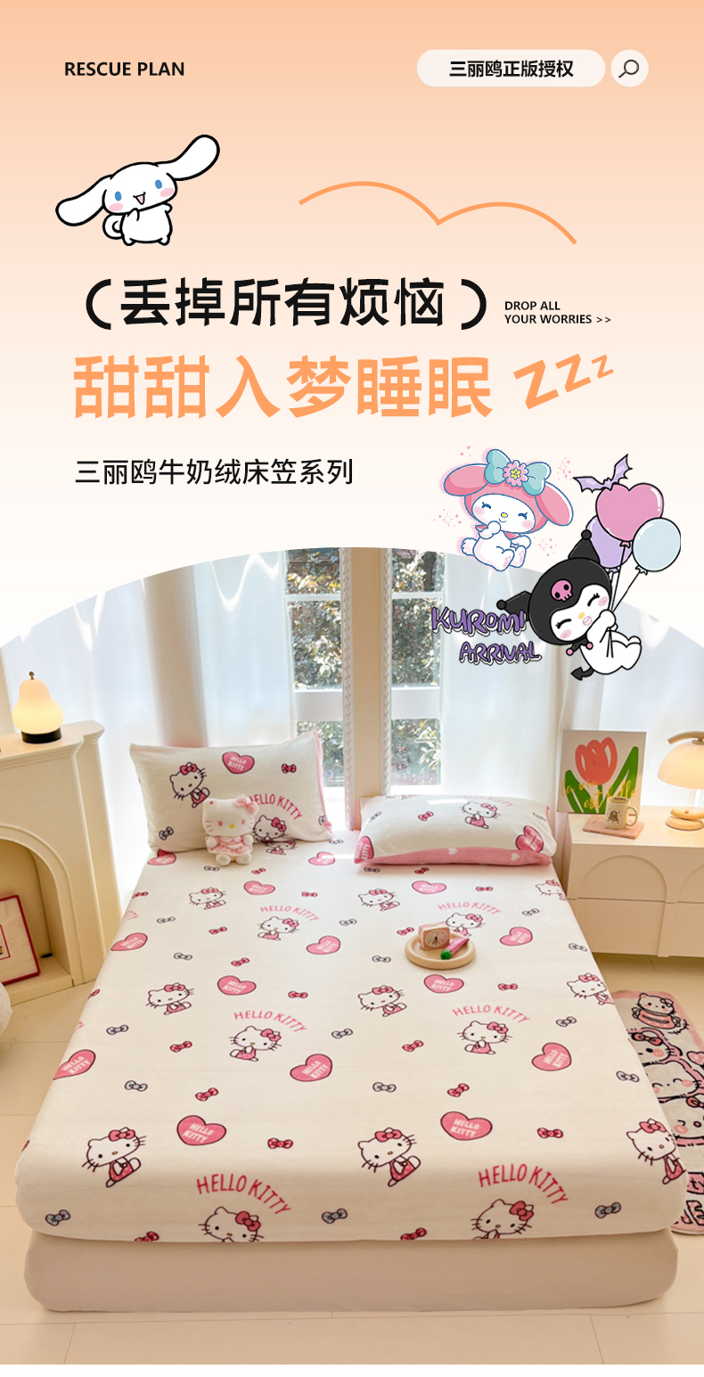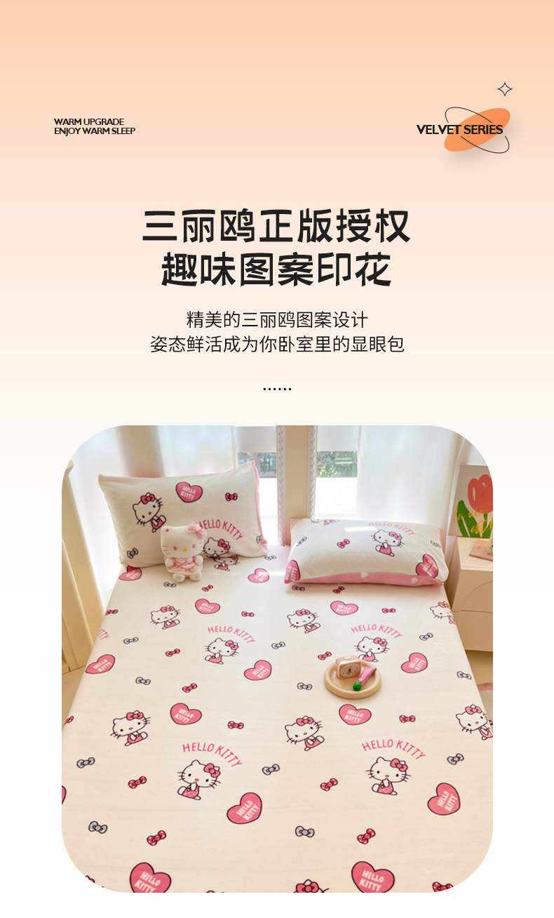 • 91家纺网 家纺一手货源 找家纺 博雅 2024新款三丽鸥牛奶绒小版床笠系列 牛奶绒小版-爱心KT猫