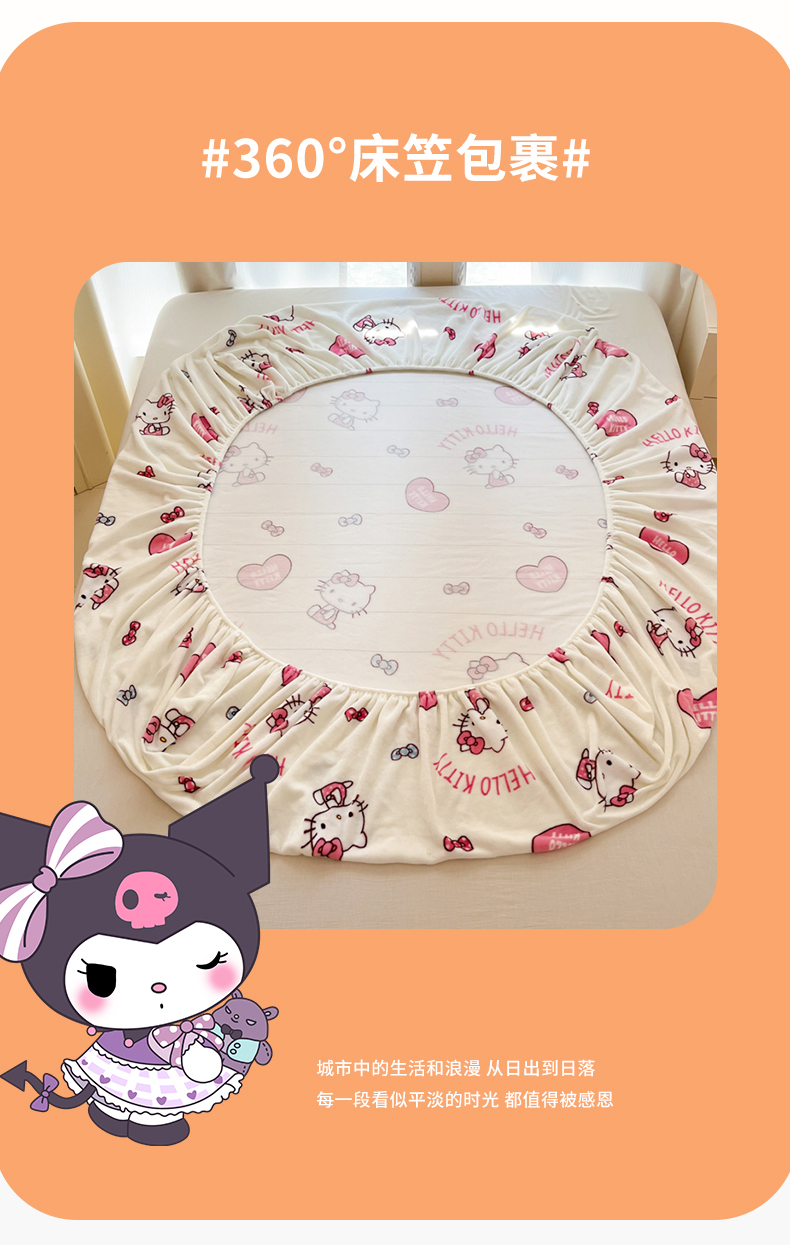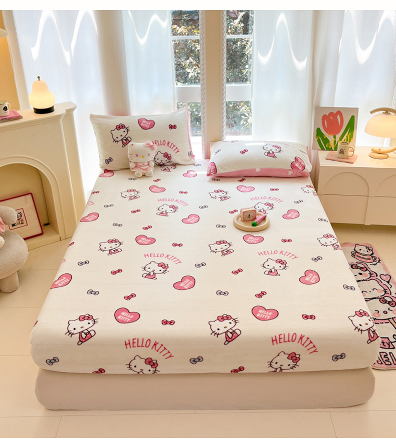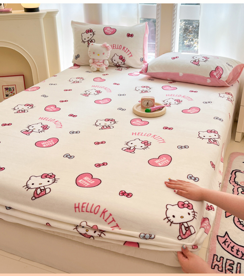 博雅 2024新款三丽鸥牛奶绒小版床笠系列 牛奶绒小版-爱心KT猫
