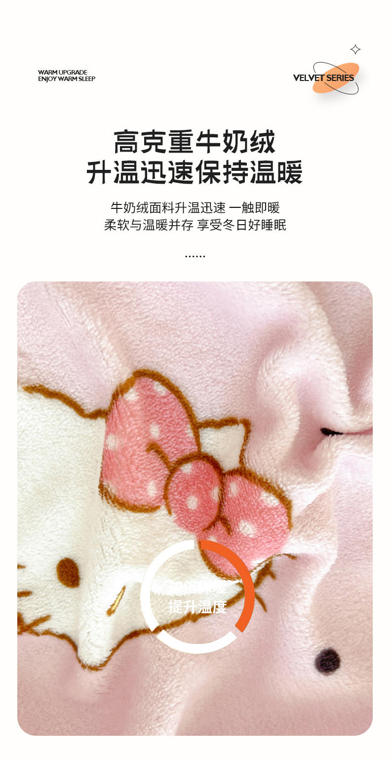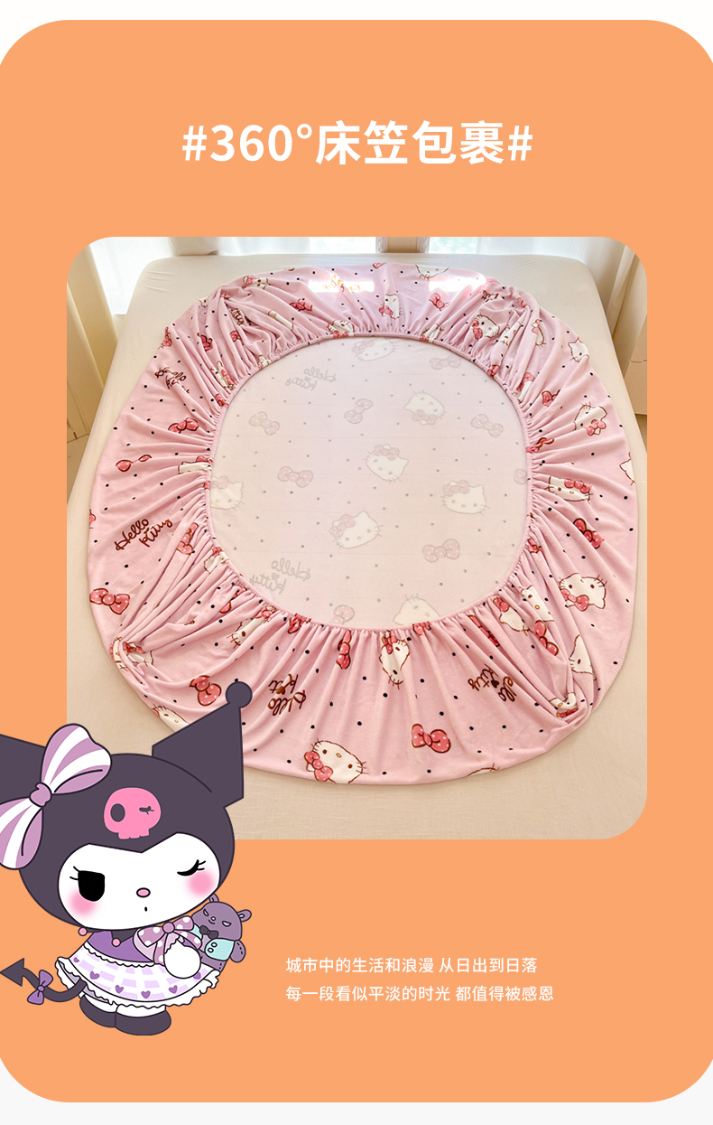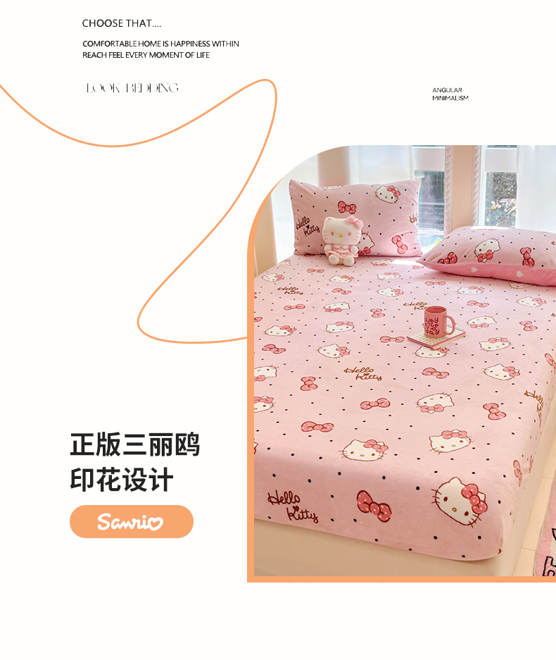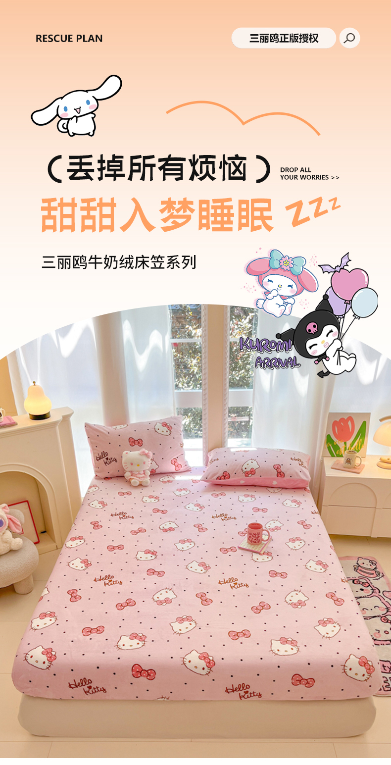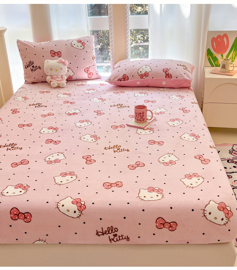 博雅 2024新款三丽鸥牛奶绒小版床笠系列 牛奶绒小版-蝴蝶结KT猫
