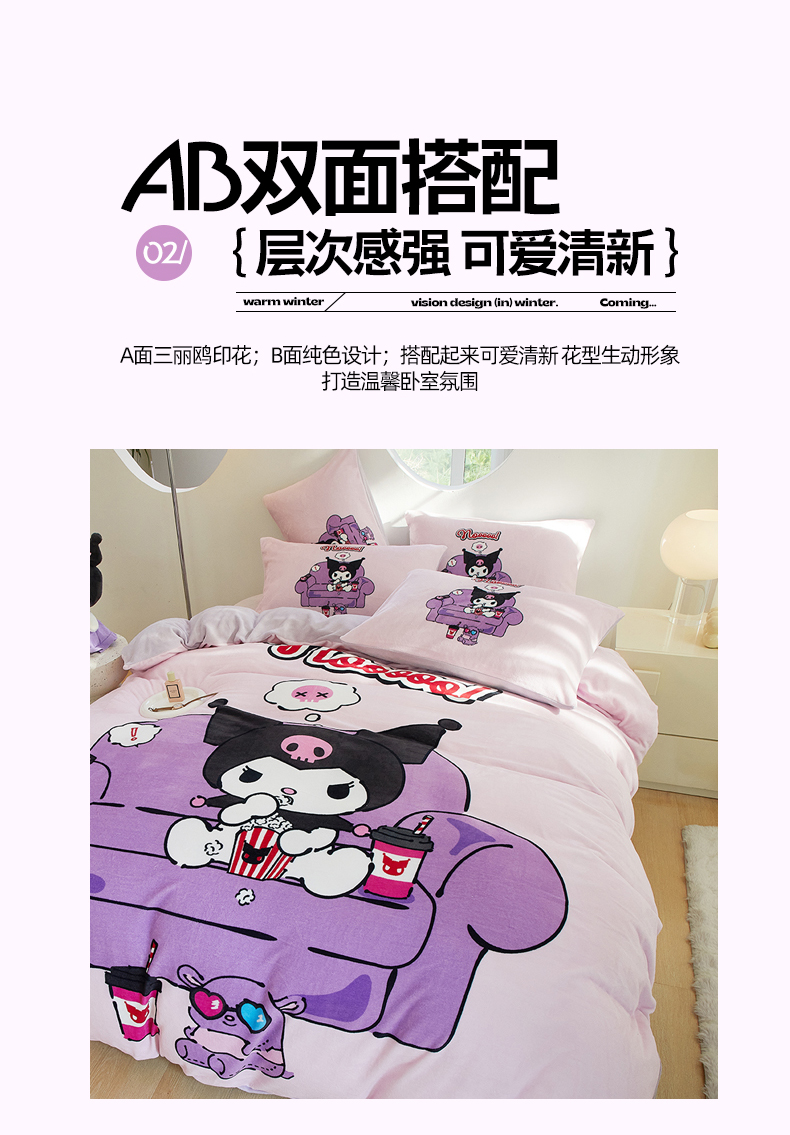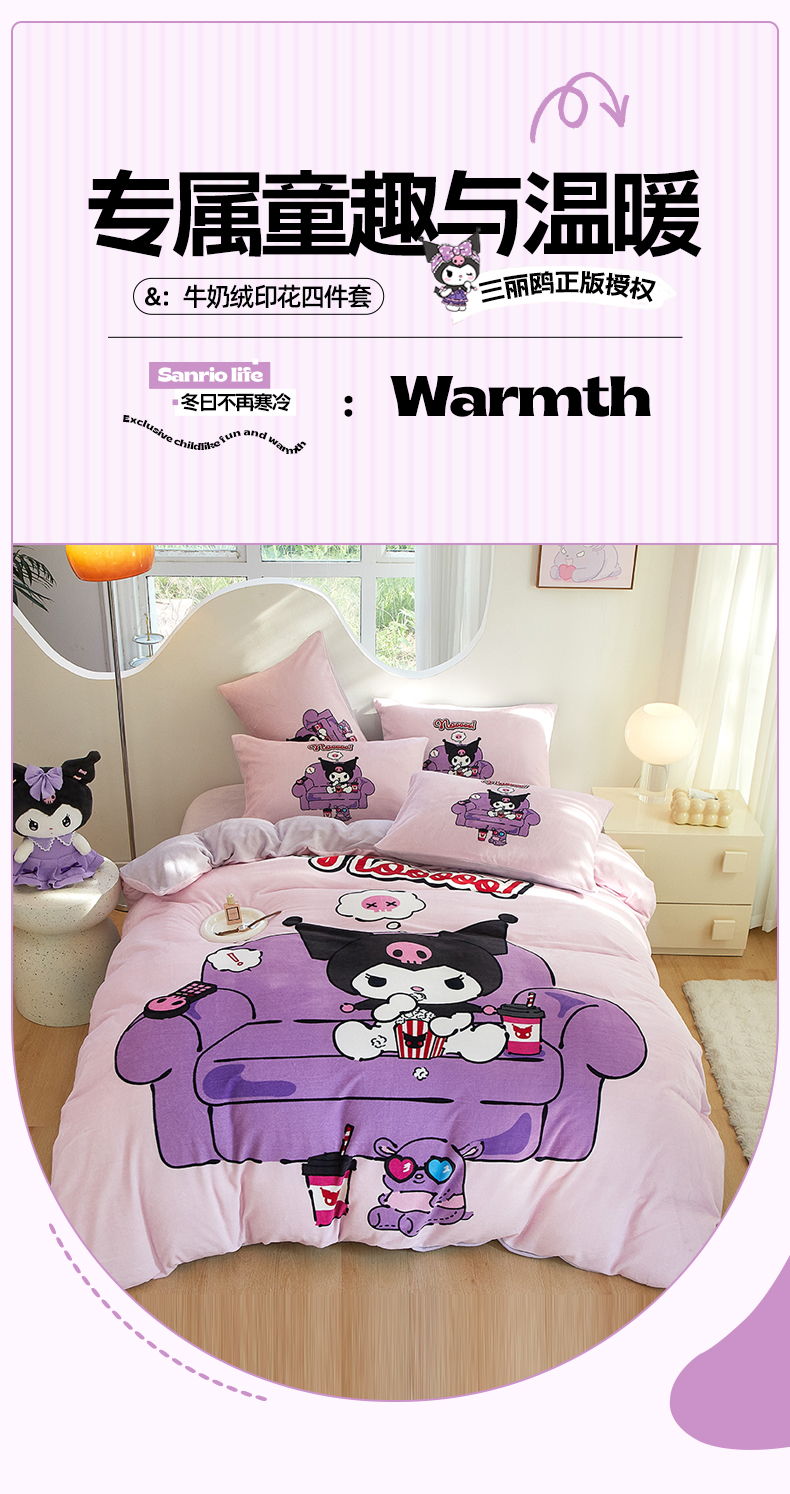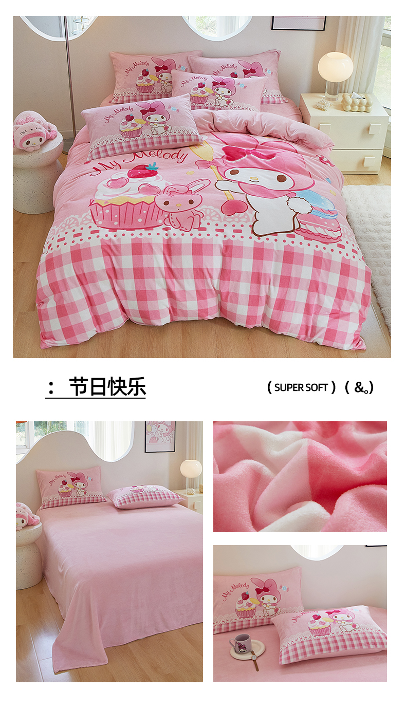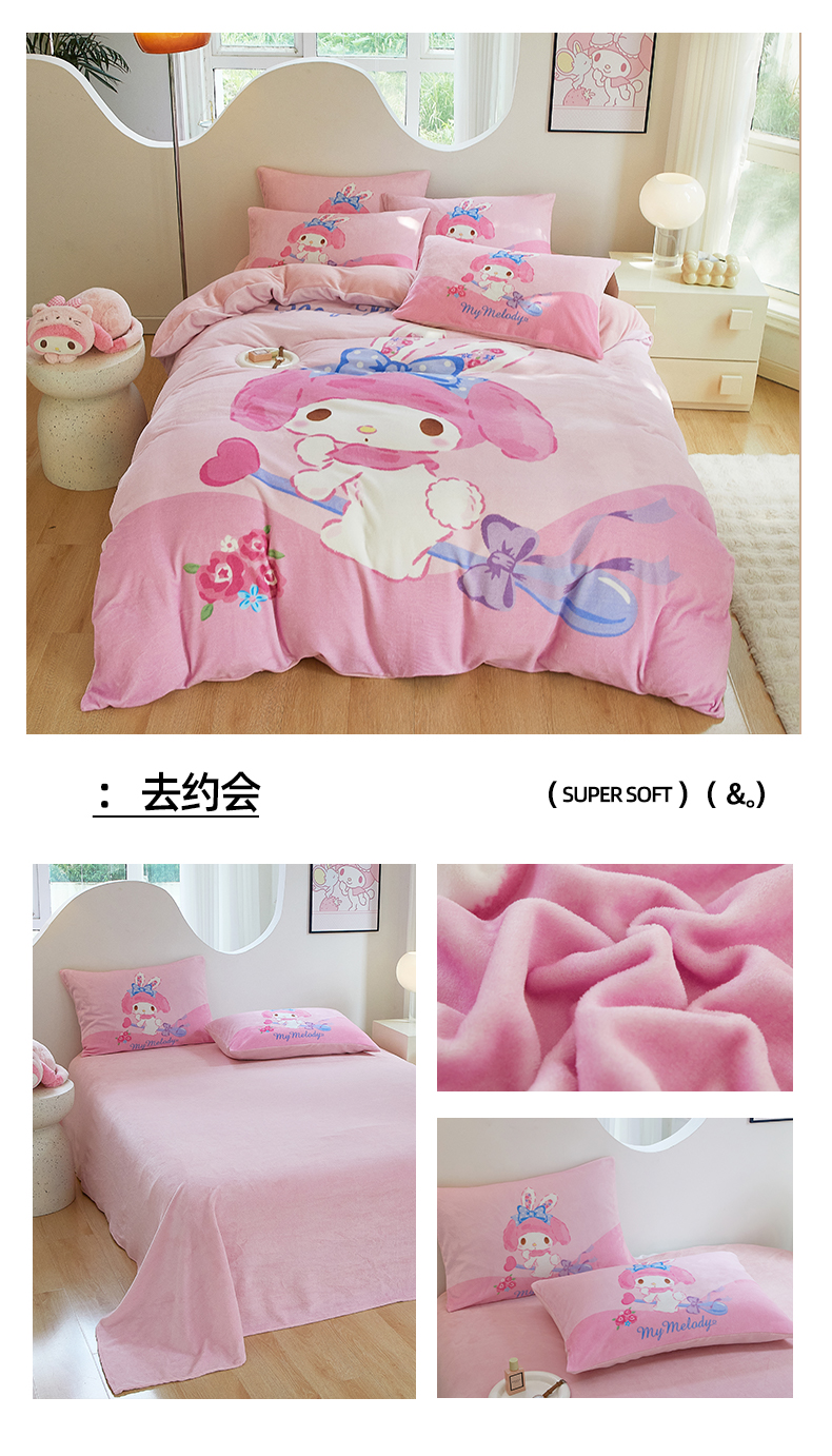 当前位置: 91家纺网 > 商品网购 > 床品套件 > 四件套 > 牛奶绒四件套 > 蘭菲家纺 2024新款牛奶绒卡通三丽鸥四件套 星期天