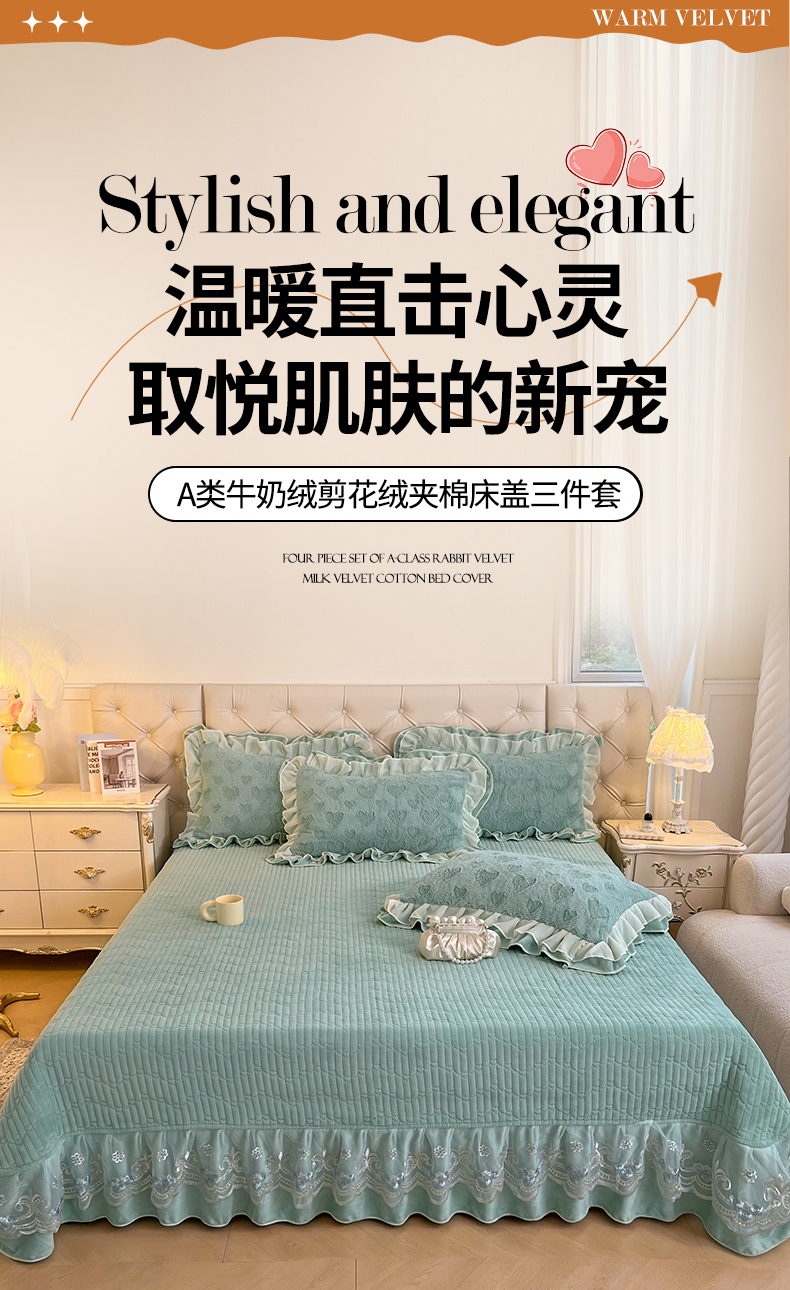 (总)宜凡家纺 2025新款兔绒提花牛奶绒夹棉床盖四件套,爱心 粉紫,爱心 少女粉,爱心 驼色,蝶舞 大红,蝶舞 米色,蝶舞 浅紫,蝶舞 玉色,简爱 苍青,简爱 豆沙紫,简爱 玉色,樱桃 苍青,樱桃 豆沙紫,樱桃 奶油白