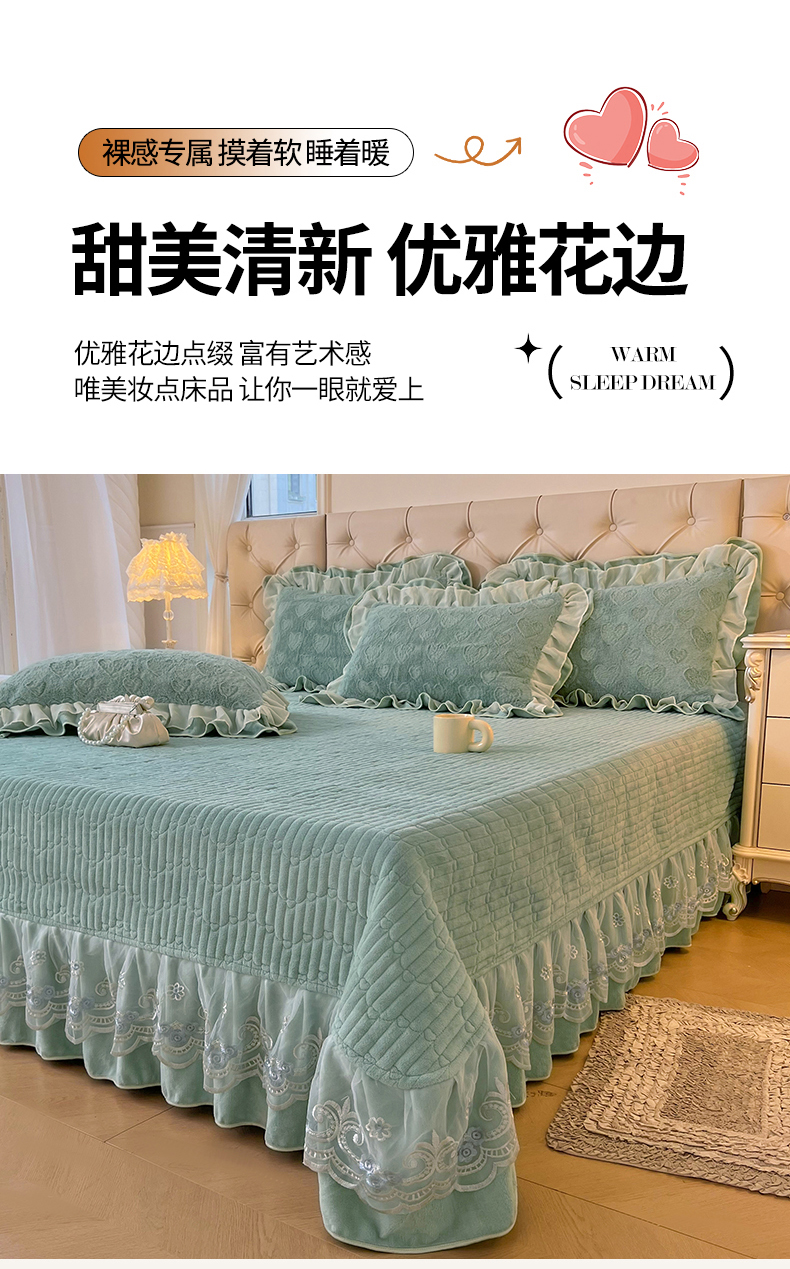 (总)宜凡家纺 2025新款兔绒提花牛奶绒夹棉床裙四件套,爱心 少女粉,爱心 粉紫,爱心 驼色,蝶舞 大红,蝶舞 米色,蝶舞 浅紫,蝶舞 玉色,简爱 苍青,简爱 豆沙紫,简爱 玉色,樱桃 苍青,樱桃 豆沙紫,樱桃 奶油白
