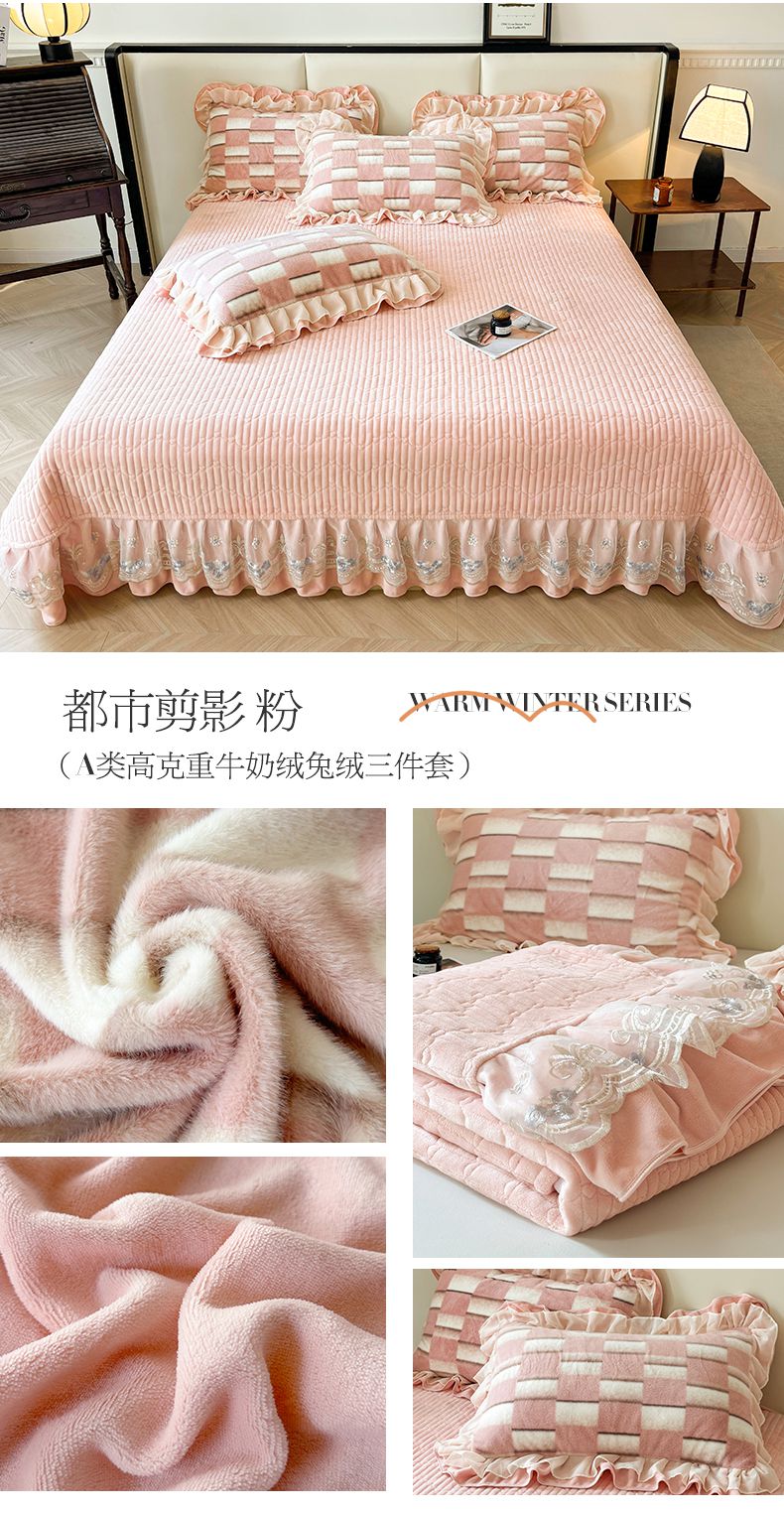 (总)宜凡家纺 2025新款兔绒提花牛奶绒夹棉床裙四件套,爱心 少女粉,爱心 粉紫,爱心 驼色,蝶舞 大红,蝶舞 米色,蝶舞 浅紫,蝶舞 玉色,简爱 苍青,简爱 豆沙紫,简爱 玉色,樱桃 苍青,樱桃 豆沙紫,樱桃 奶油白