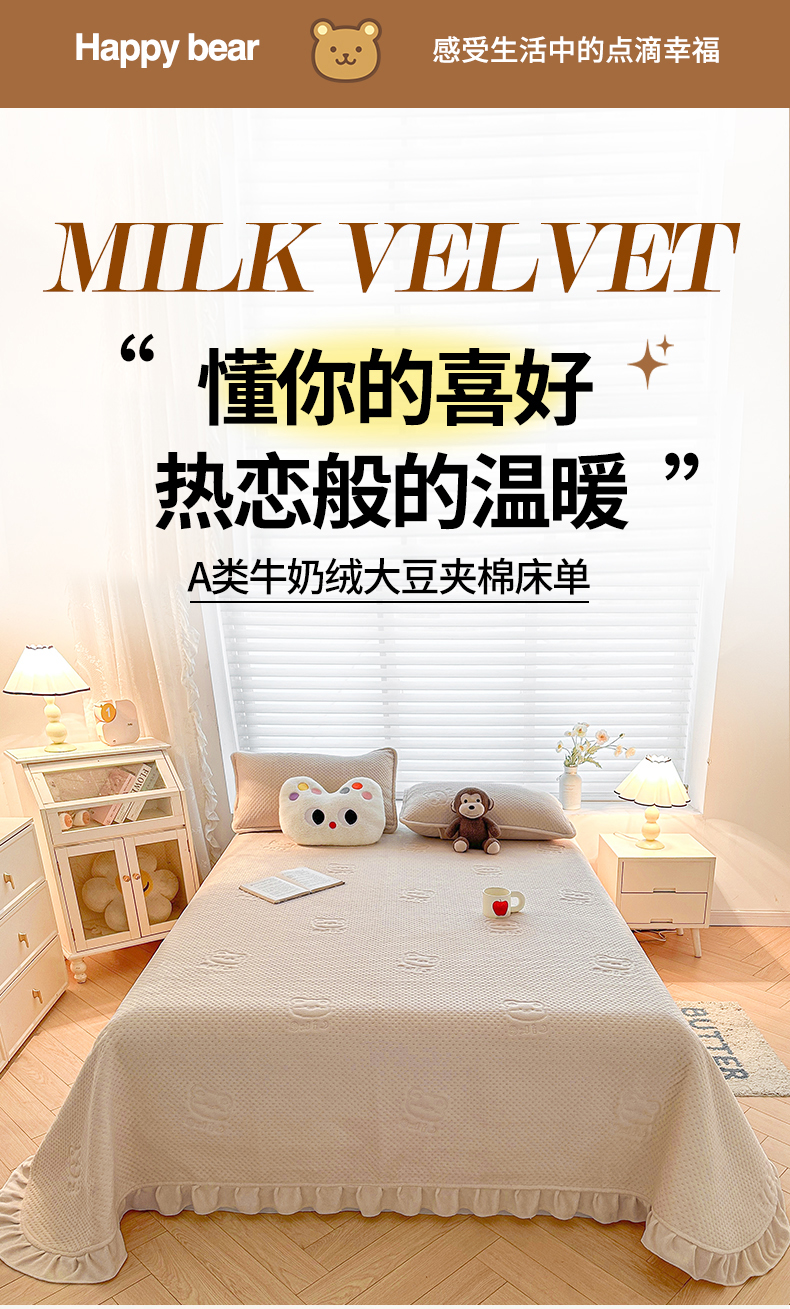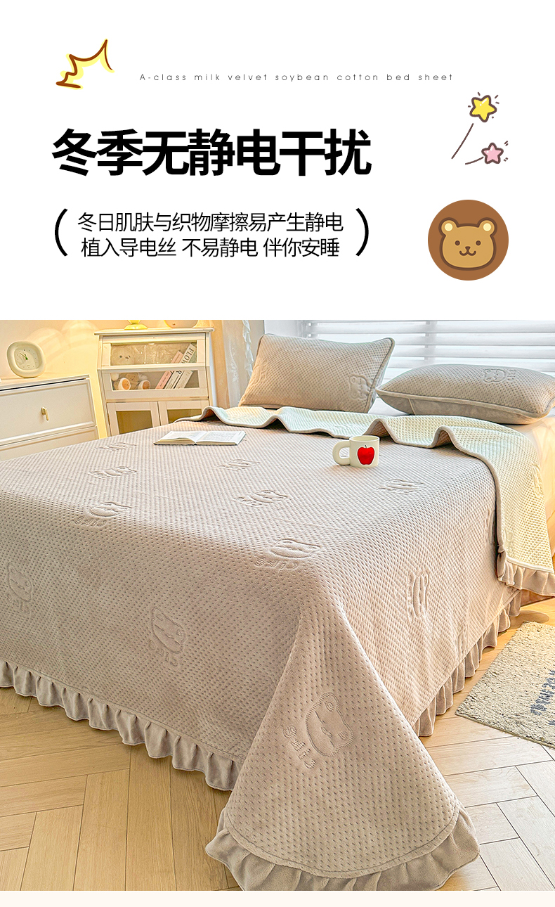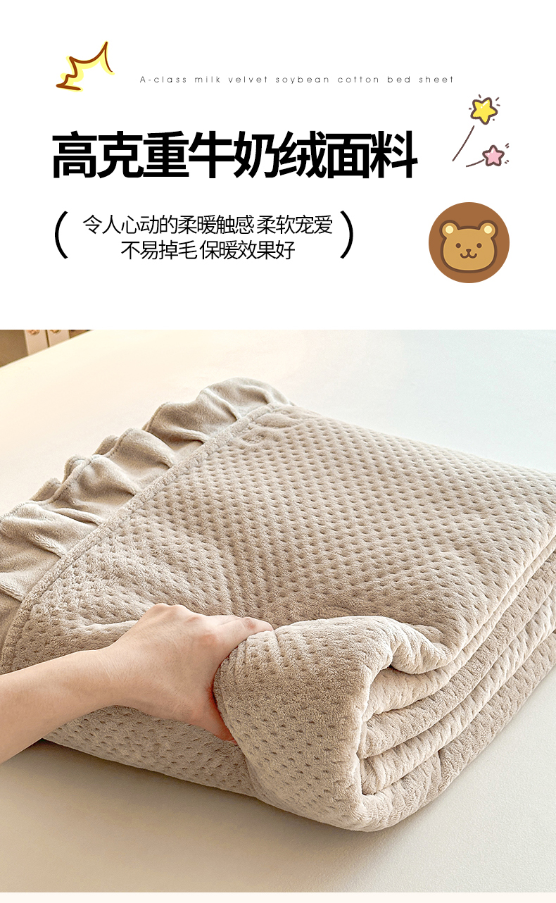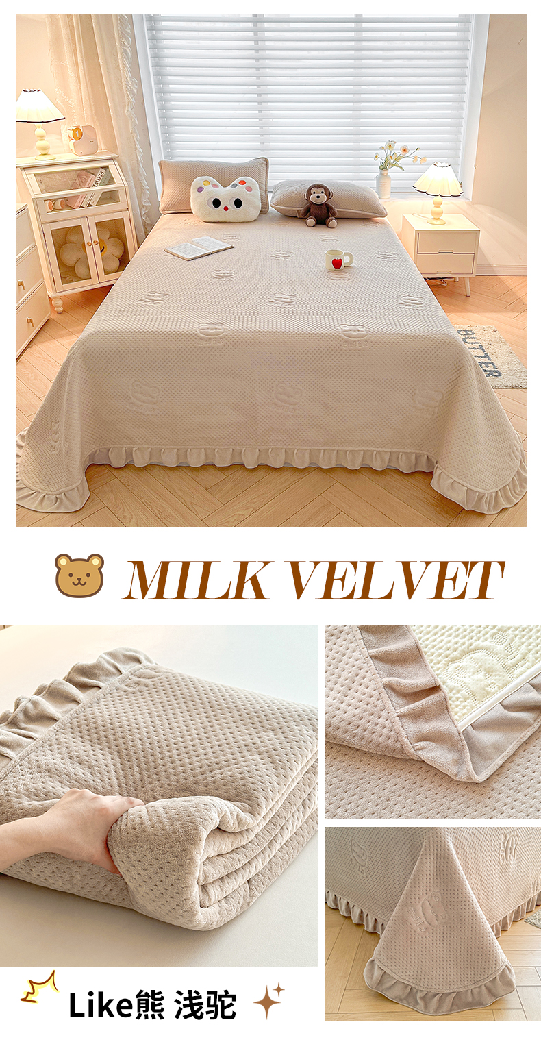 商品名称:居眠 2024新款A类牛奶绒like小熊系列大豆夹棉床单 Like熊 浅驼