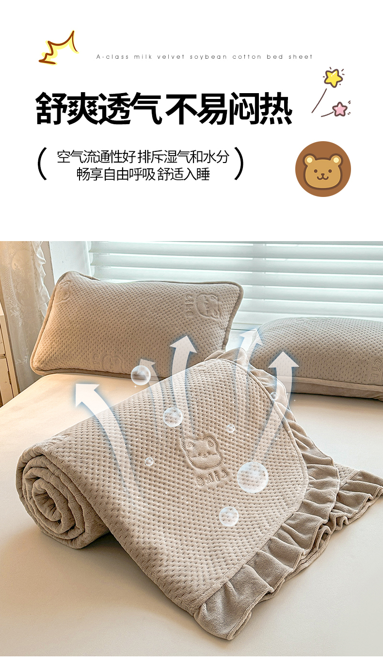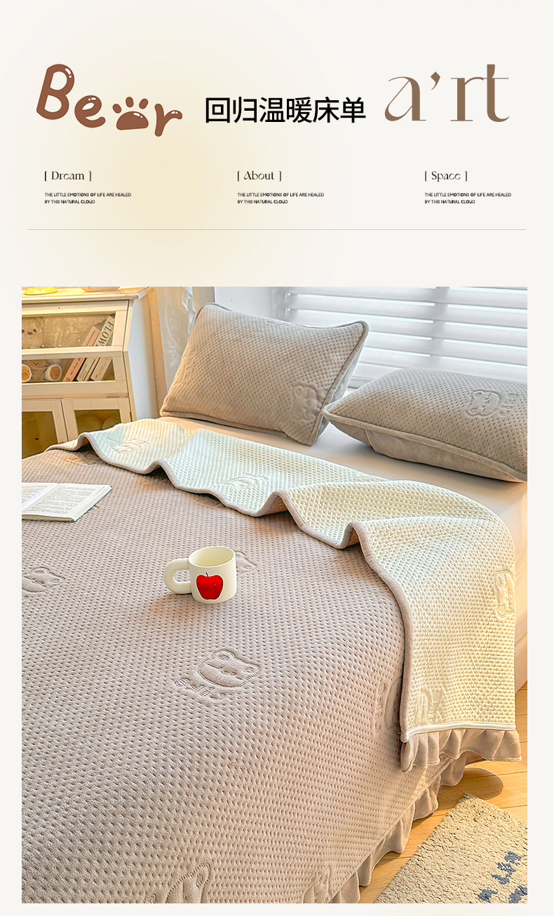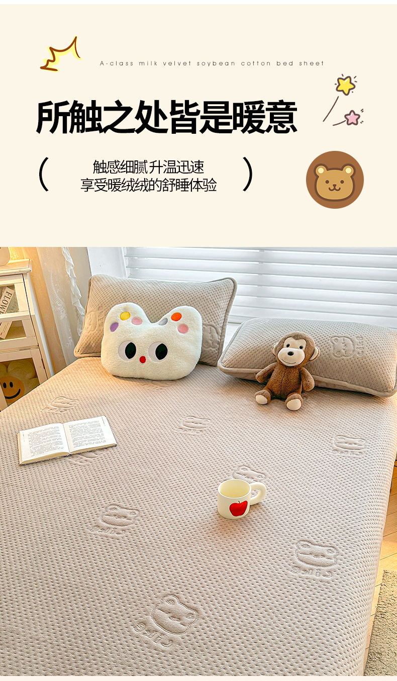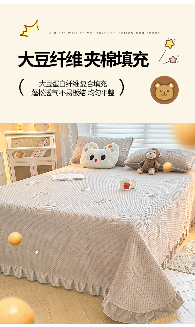 商品名称:居眠 2024新款A类牛奶绒like小熊系列大豆夹棉床单 Like熊 浅驼