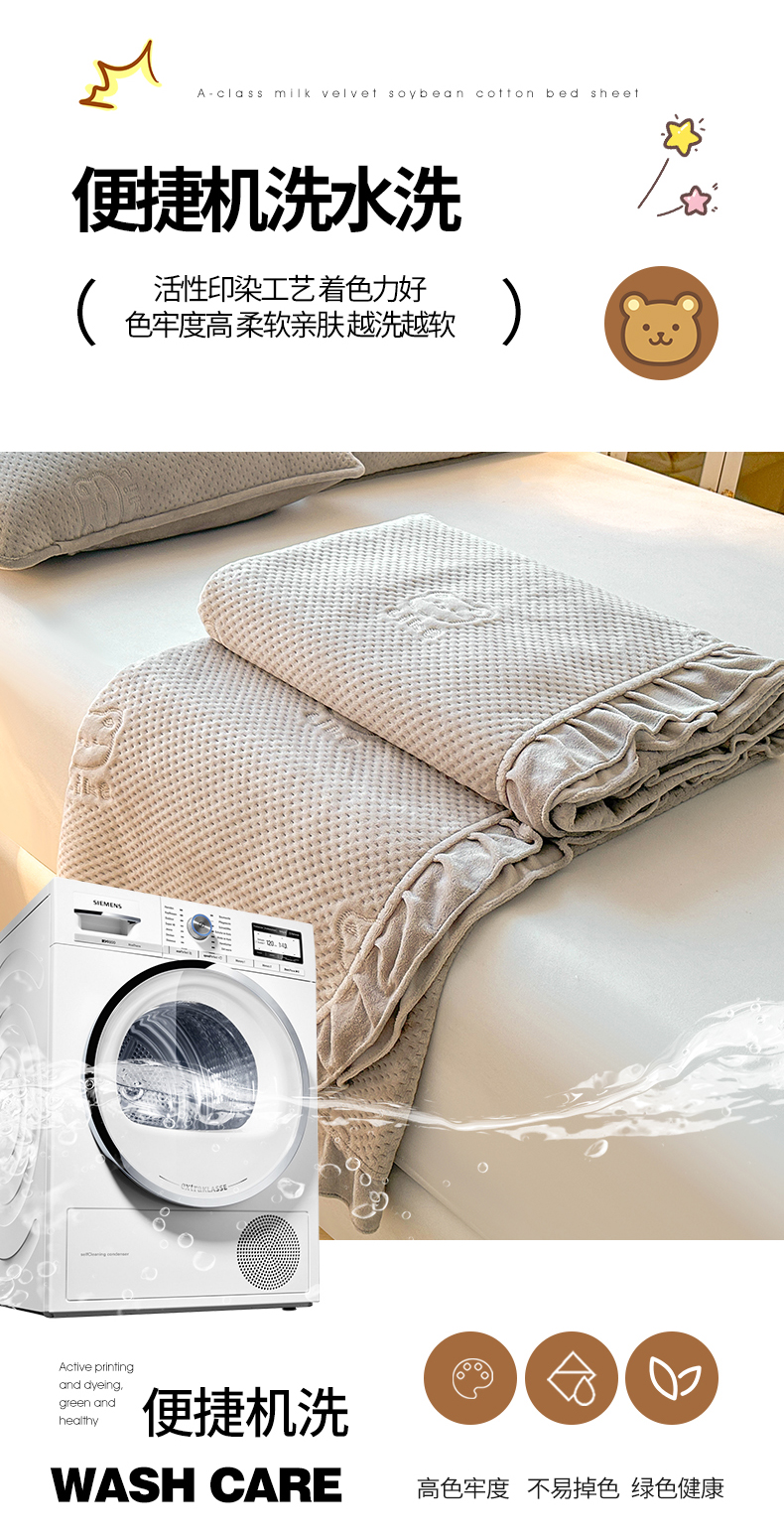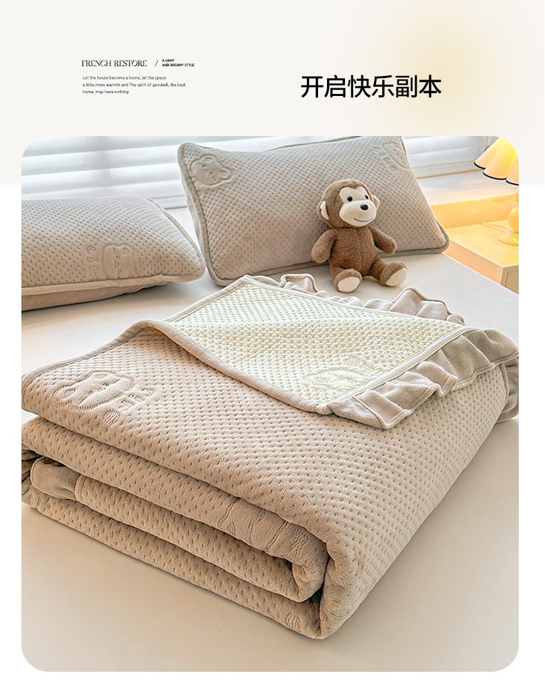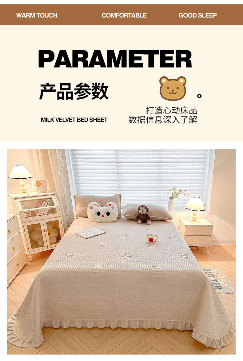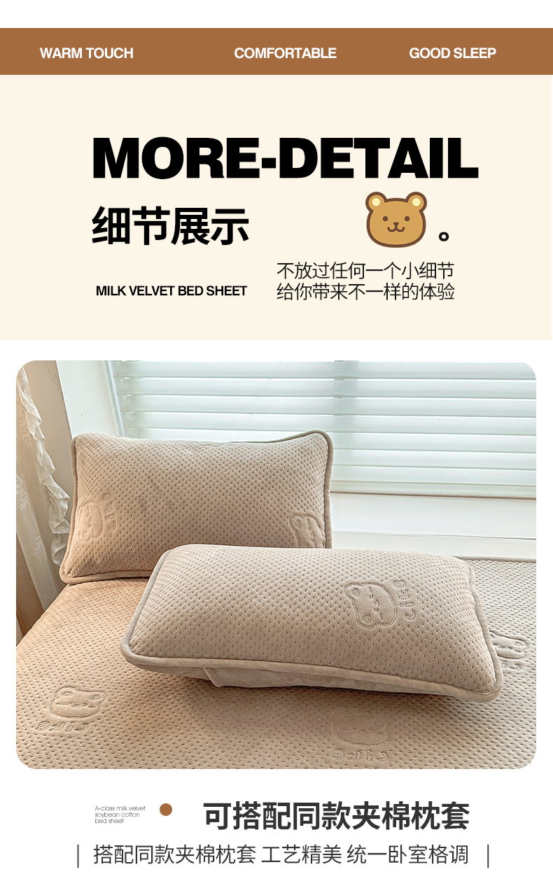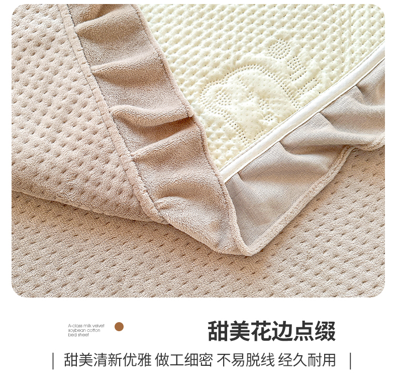 商品名称:居眠 2024新款A类牛奶绒like小熊系列大豆夹棉床单 Like熊 浅驼
