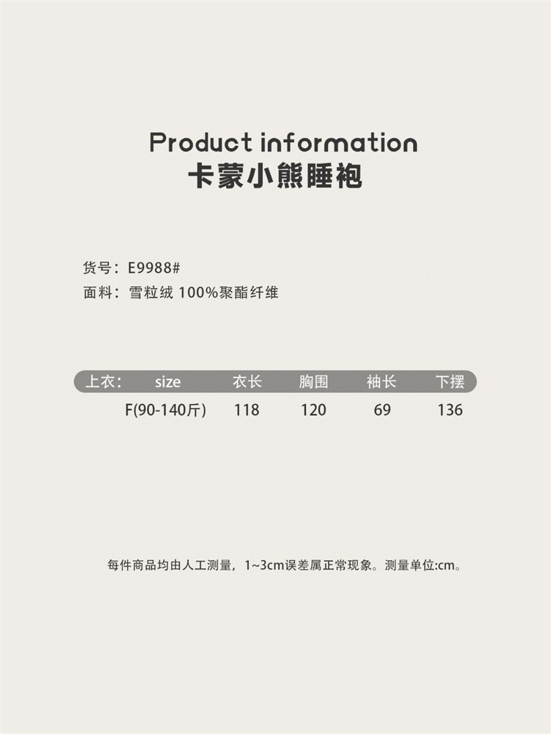 商品名称:(总)妍景家居生活馆 2024新款卡蒙小熊睡袍家居服