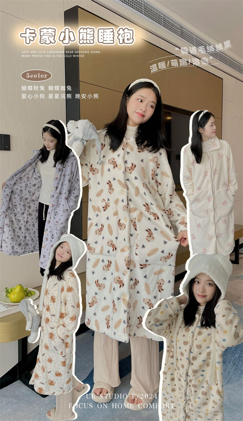 (总)妍景家居生活馆 2024新款卡蒙小熊睡袍家居服