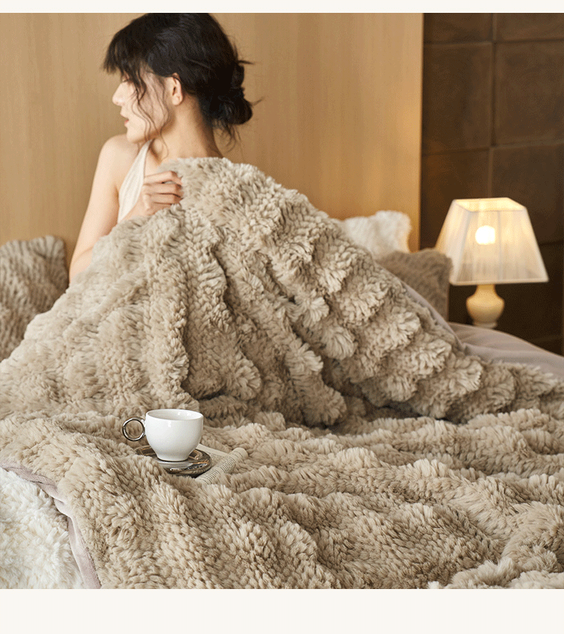 安哆啦家纺 2024新款高克重10斤轻奢托斯卡纳兔毛绒喷花泡泡牛奶绒四件套 喷花-卡其
