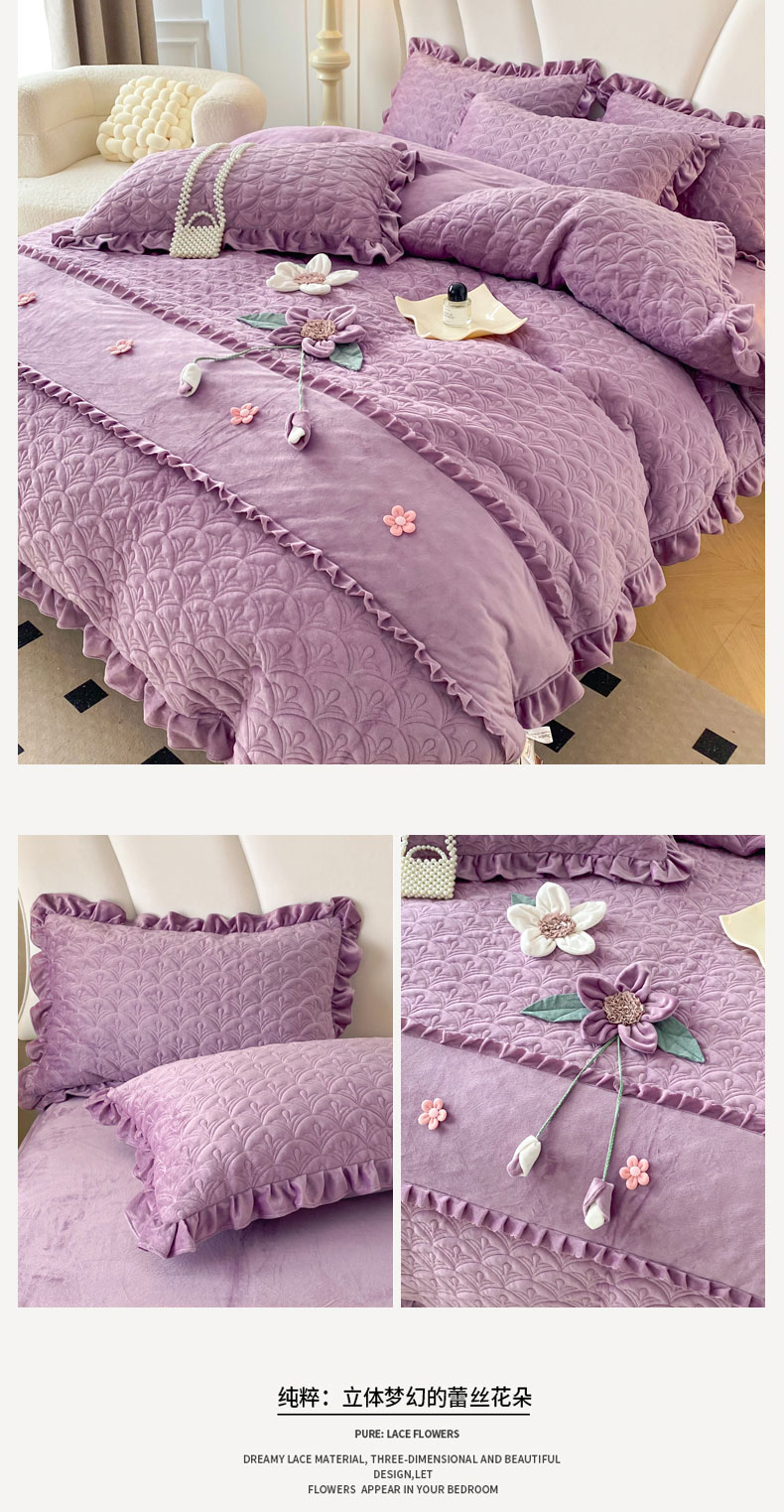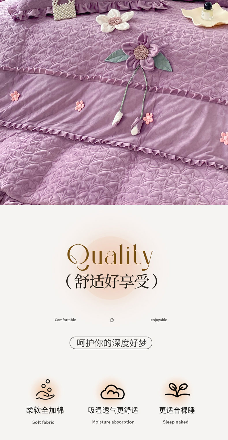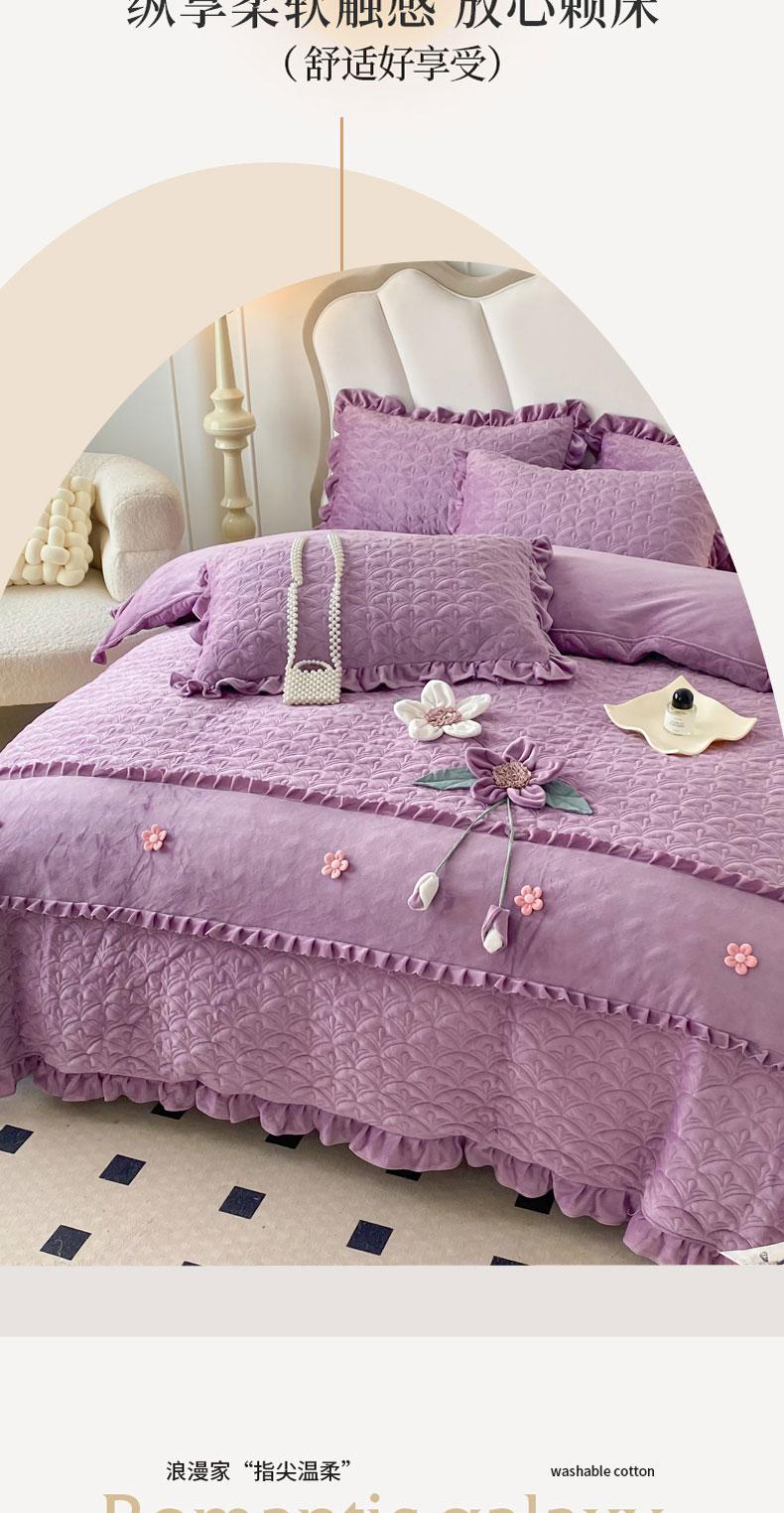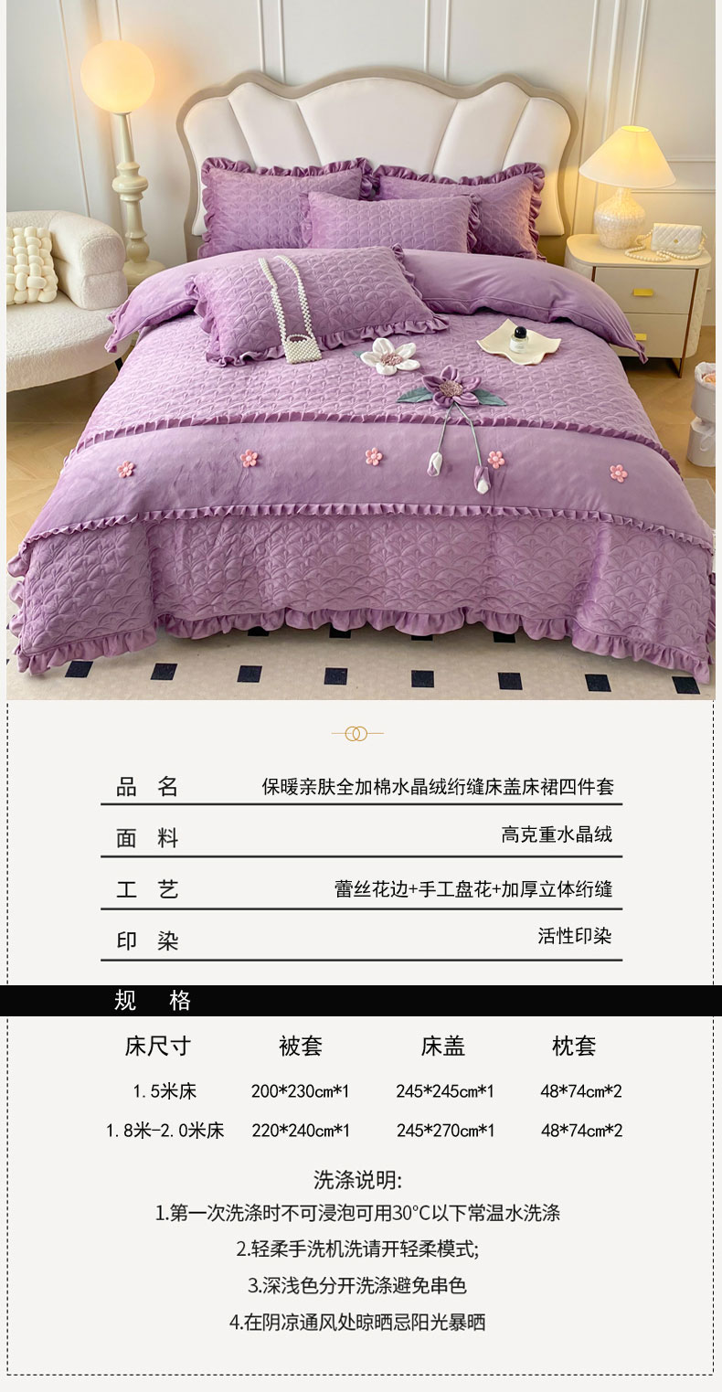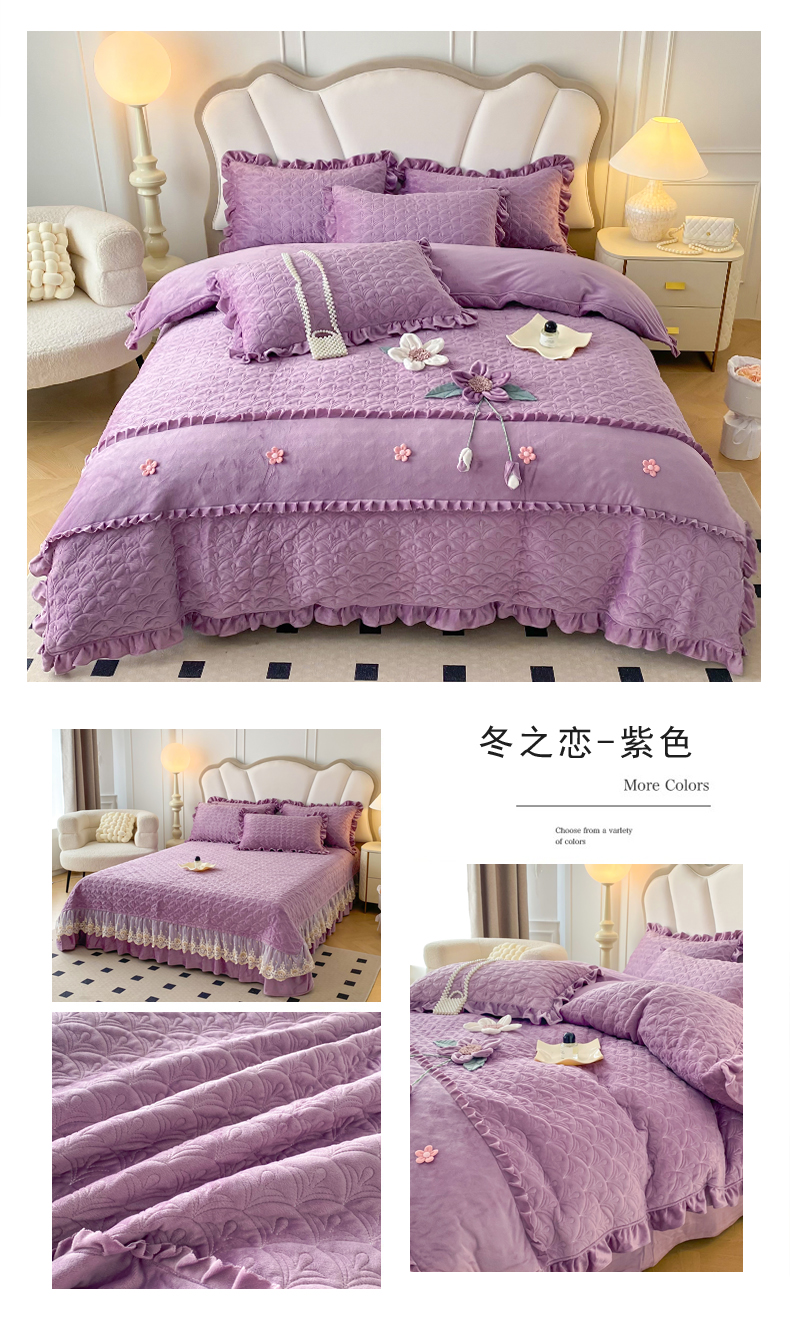 商品名称:兴美佳家纺 2024新款水晶绒全加棉床盖四件套-冬之恋 冬之恋-紫色