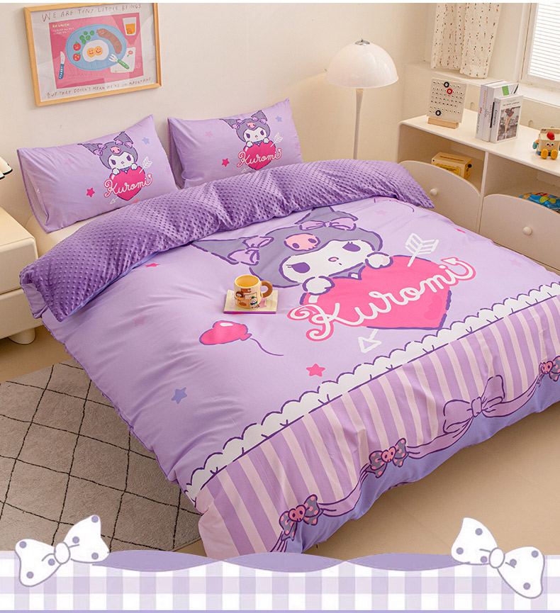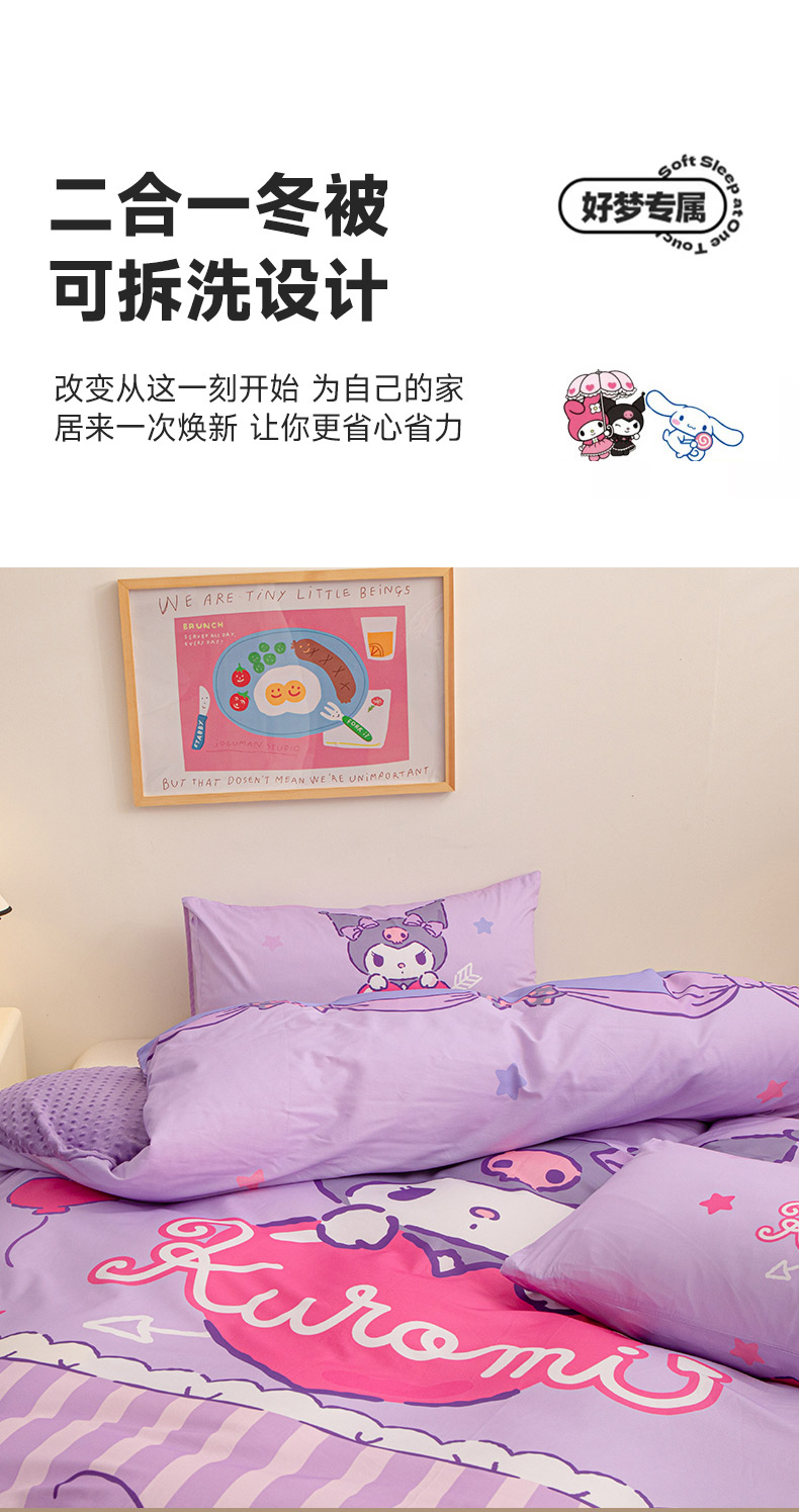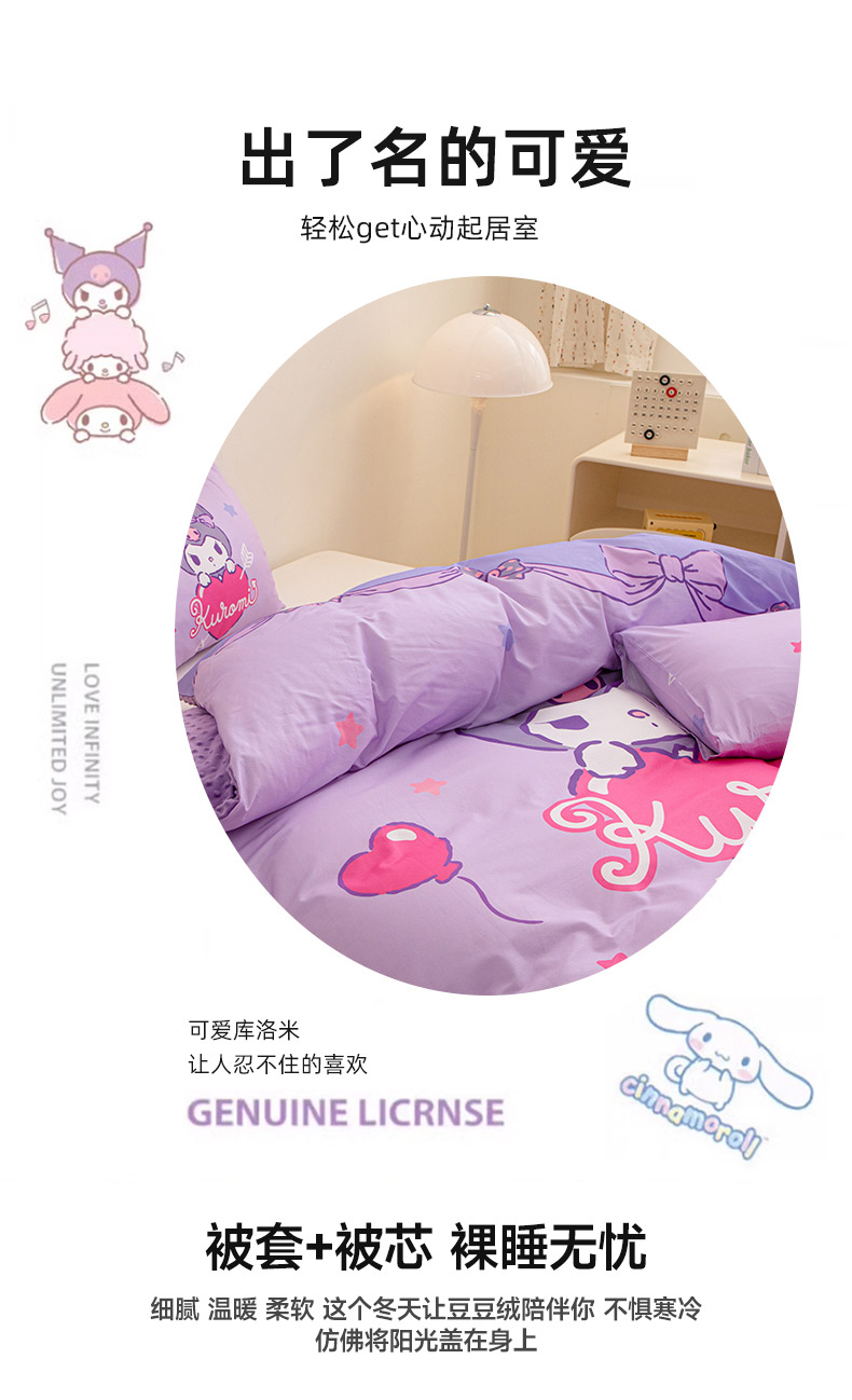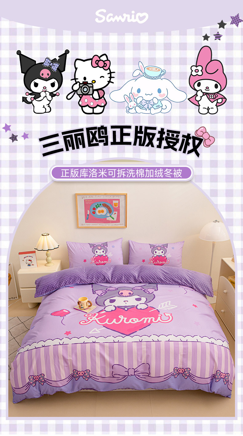 • 91家纺网 家纺一手货源 找家纺 睡棉坊 2024新款库洛米正版带标可拆洗冬被A版全棉13070B版豆豆绒单被套绒被子 甜心库洛米