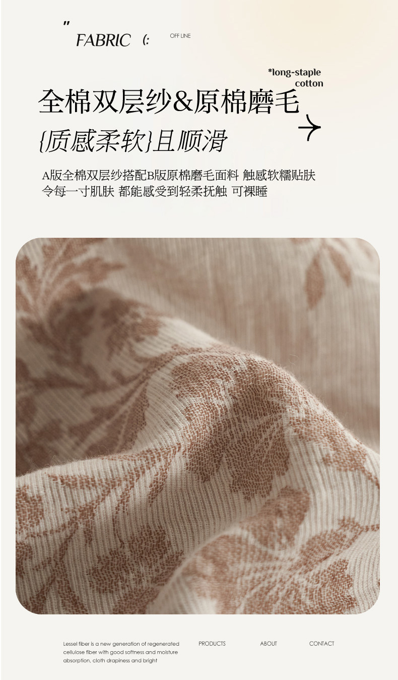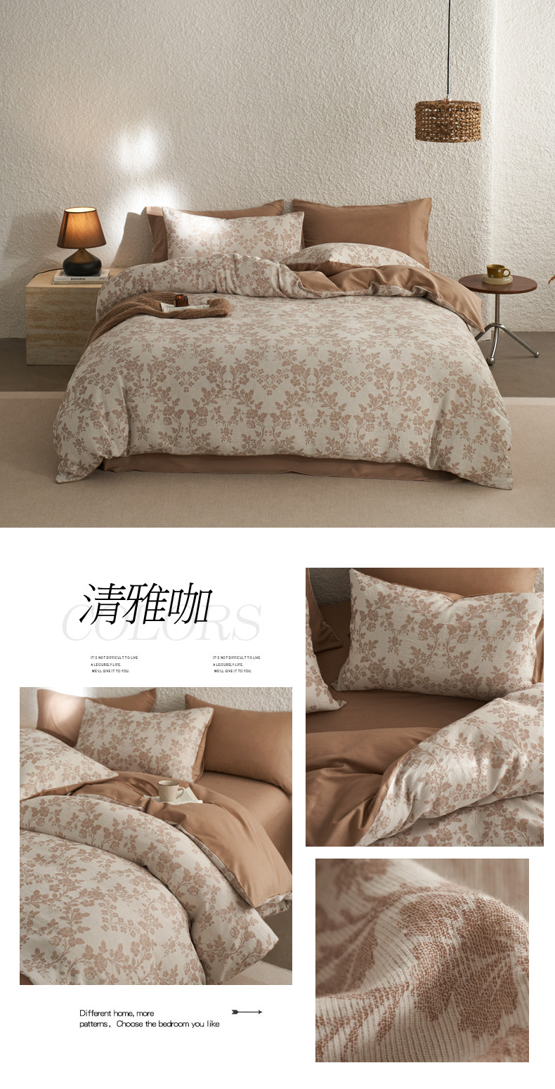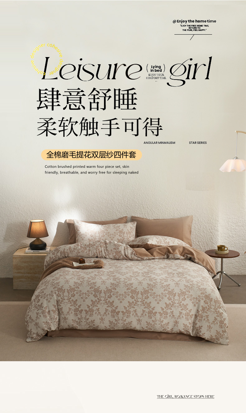 当前位置: 91家纺网 > 商品网购 > 床品套件 > 四件套 > 普通磨毛四件套 > 慕尚家纺 2025新款磨毛提花双层纱四件套 清雅咖